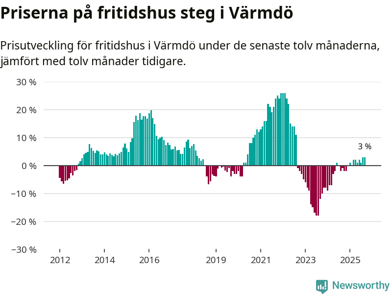 Värmdö | +1 % ▲ | 130 | 3,7 miljoner |