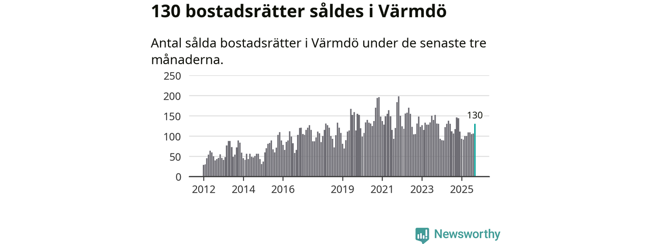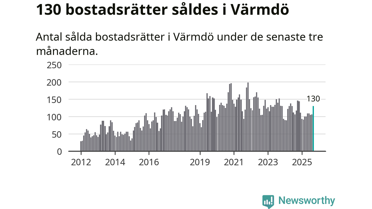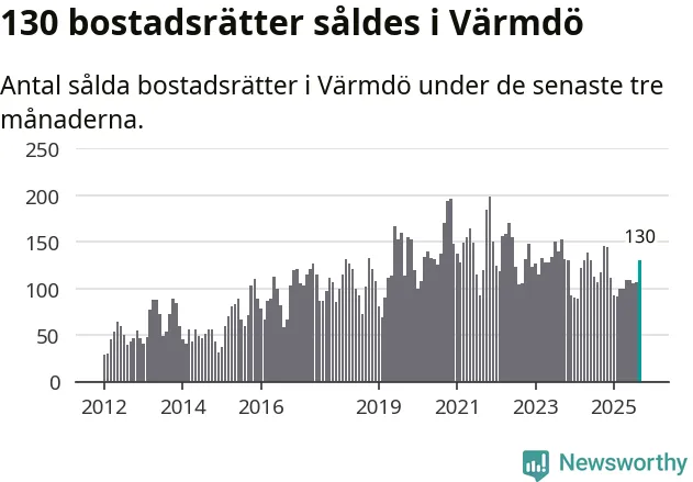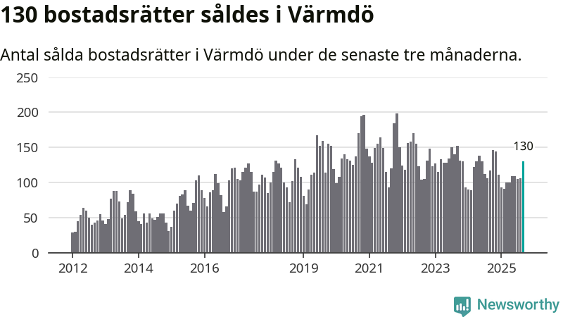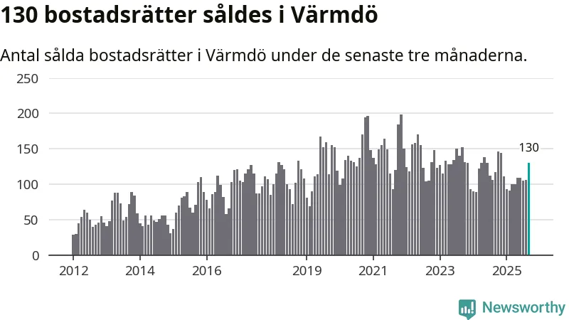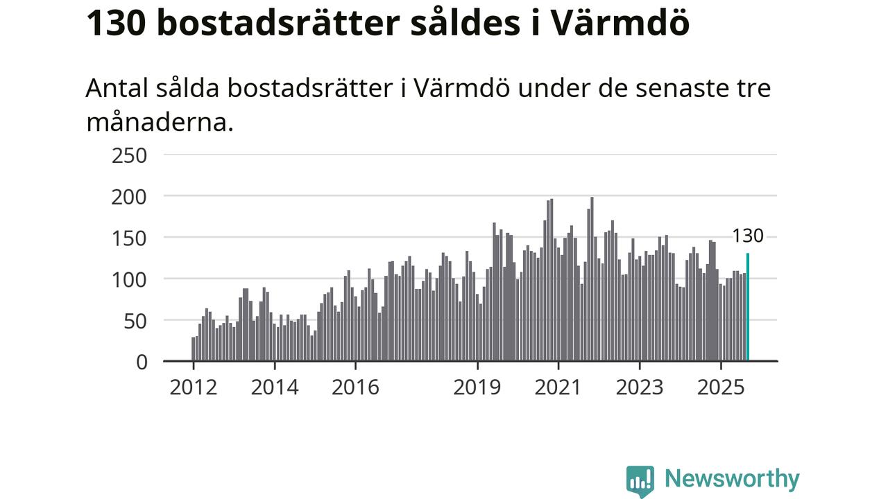 Sammanlagt såldes 130 bostadsrätter i Värmdö kommun mellan juli och september till ett genomsnittligt pris på 3,7 miljoner kronor. I fjol gjordes 117 affärer vid den här tiden på året.