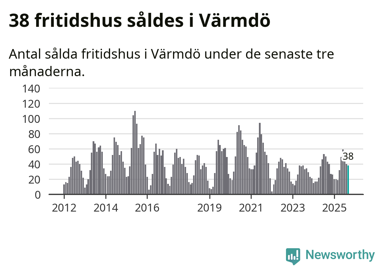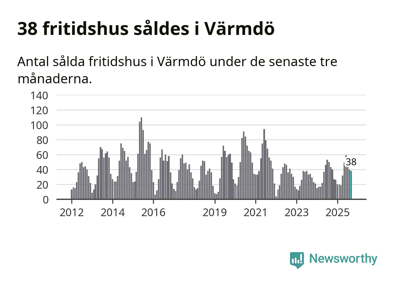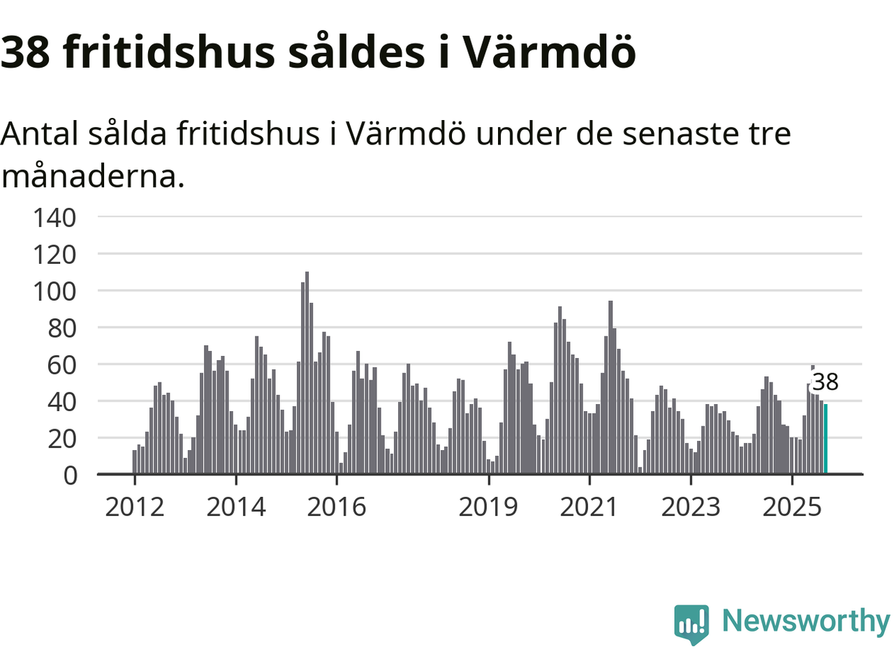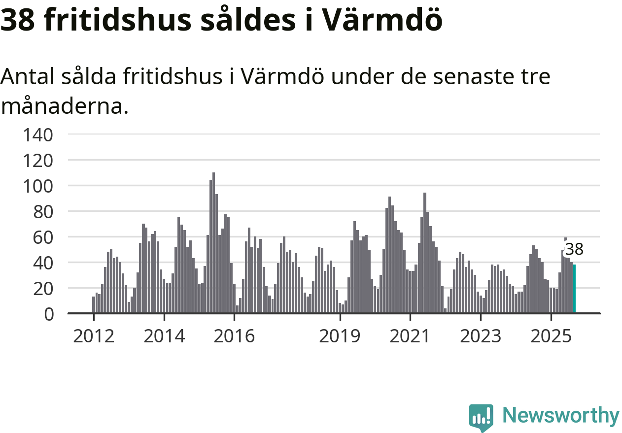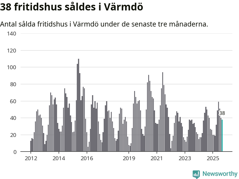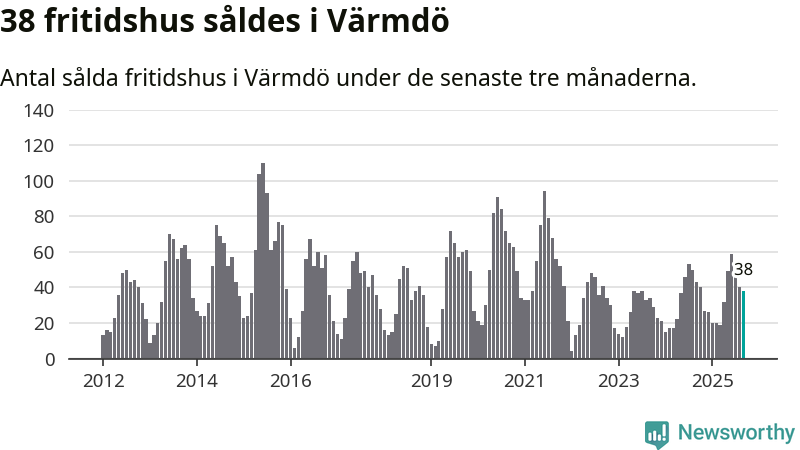 Sammanlagt såldes 38 fritidshus i Värmdö kommun mellan juli och september till ett genomsnittligt pris på 5,9 miljoner kronor. I fjol gjordes 43 affärer vid den här tiden på året.