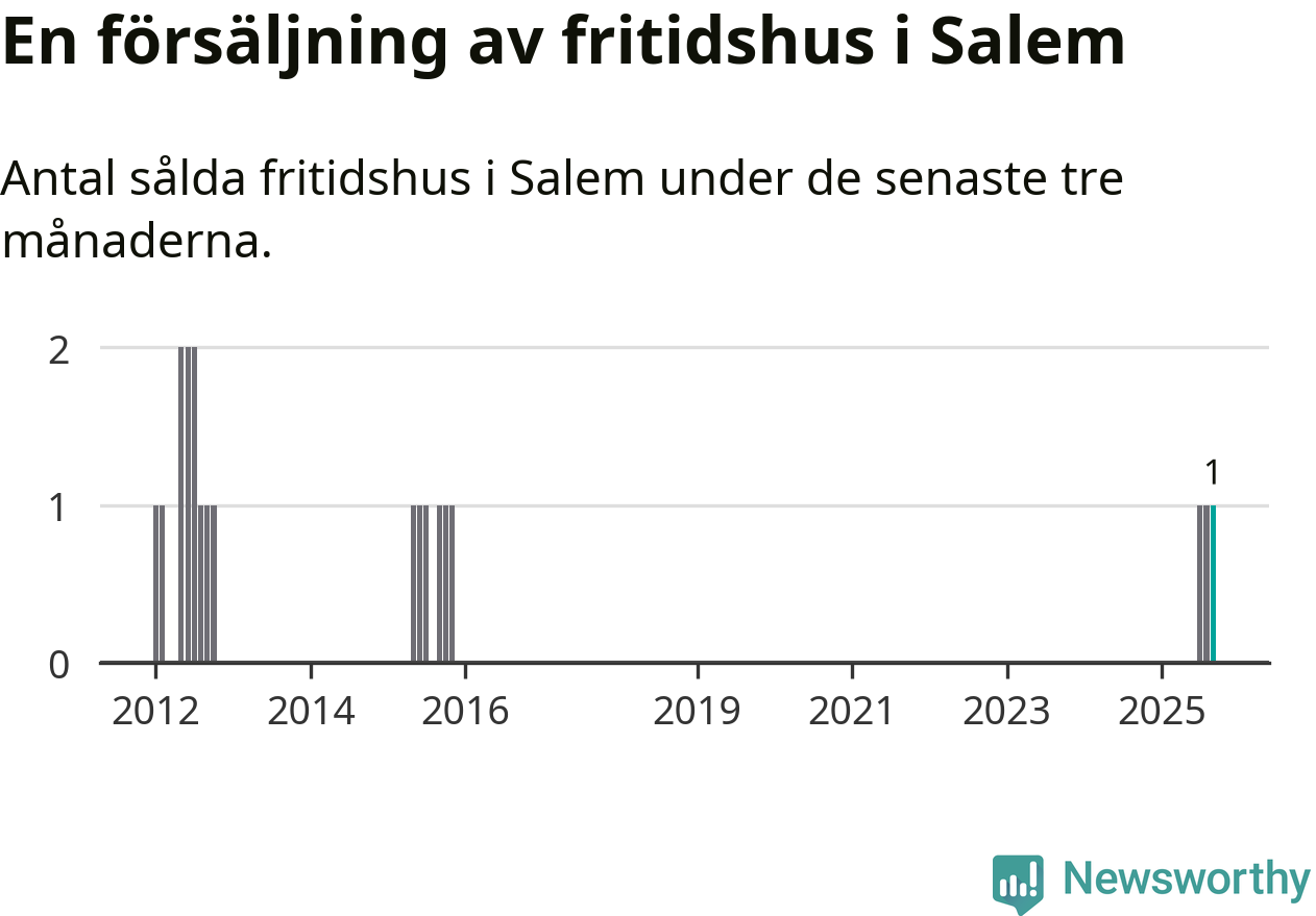Mellan juli och september gjordes sammanlagt en affär med fritidshus i Salems kommun.