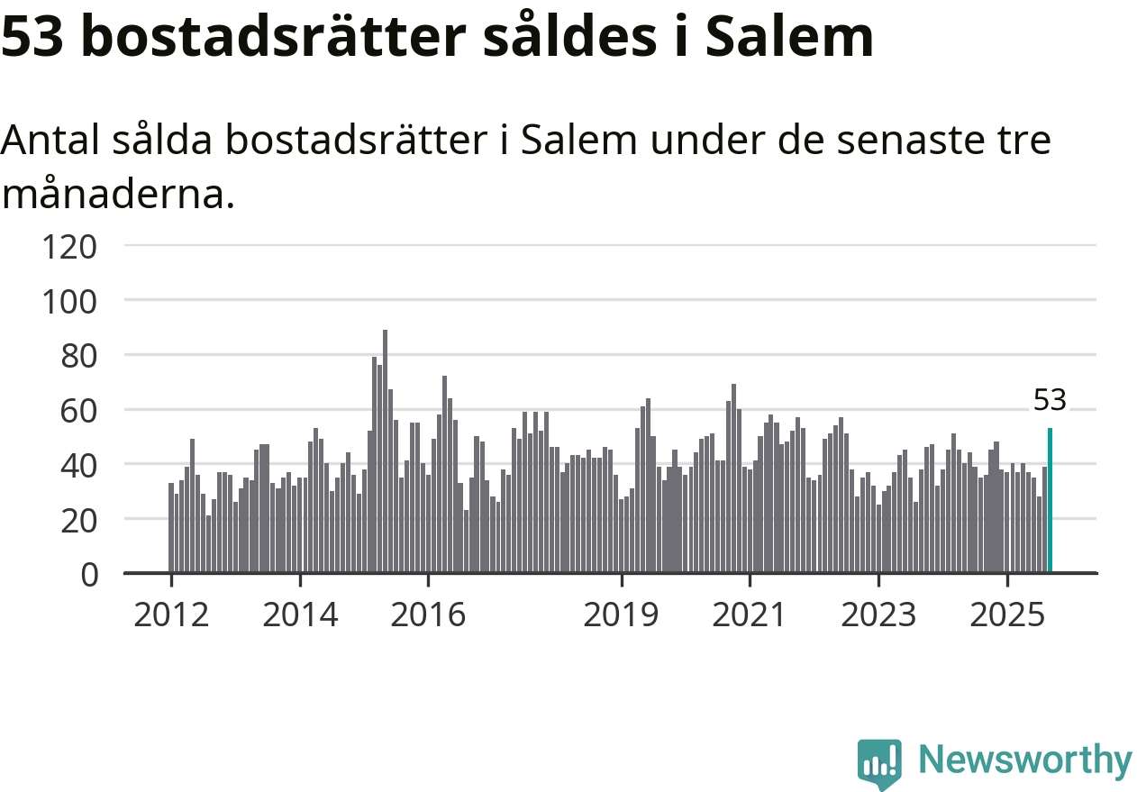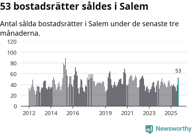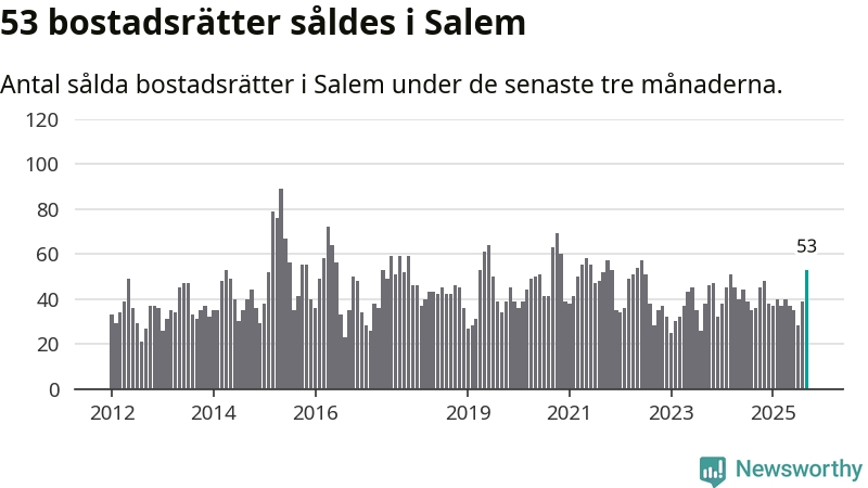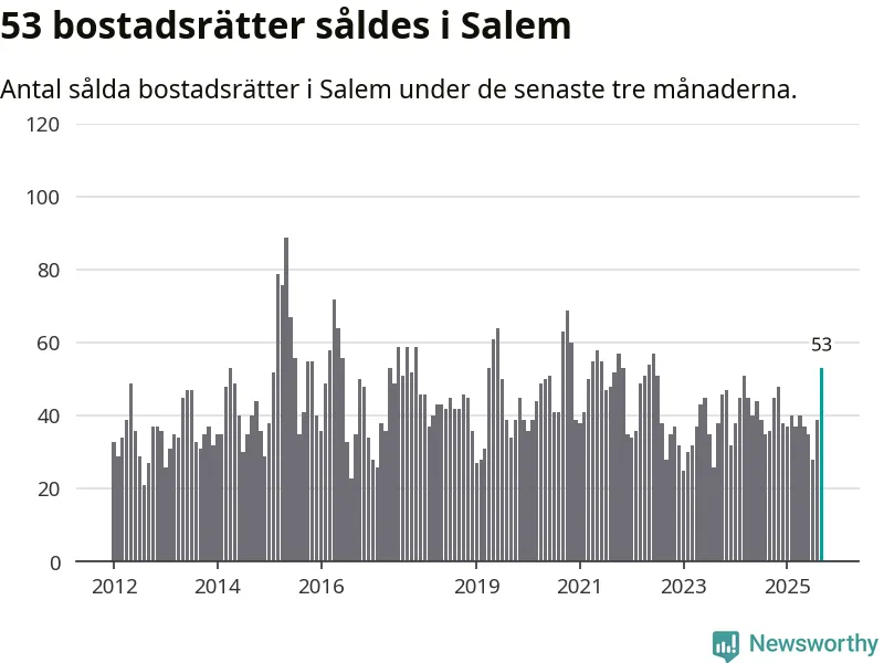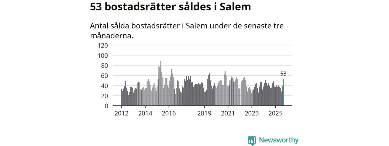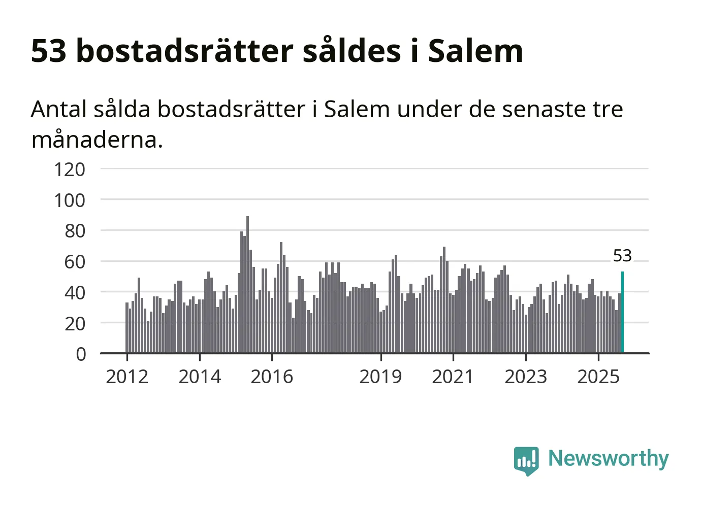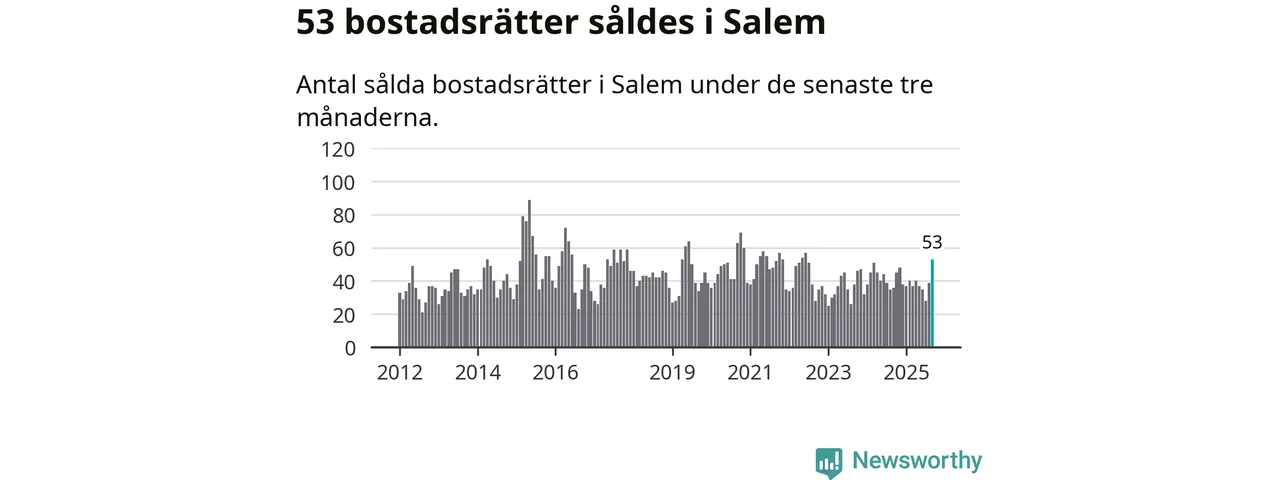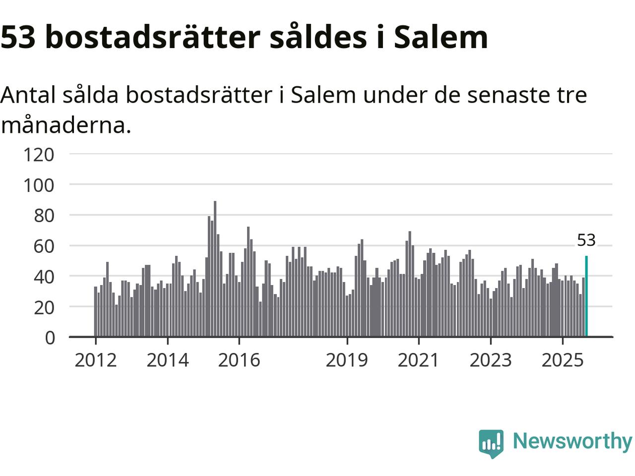 Mellan juli och september såldes 53 bostadsrätter i Salems kommun. Det är fler än någon tremånadersperiod sedan 2022.