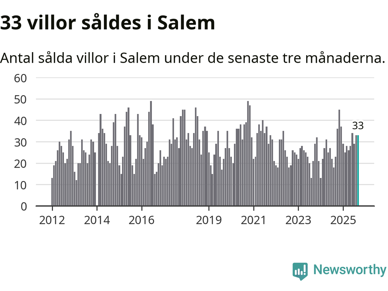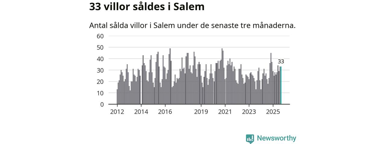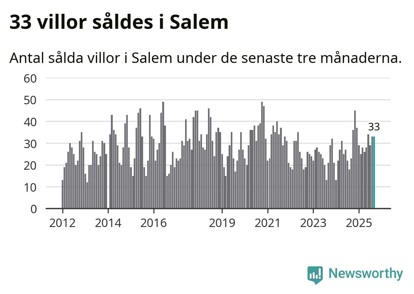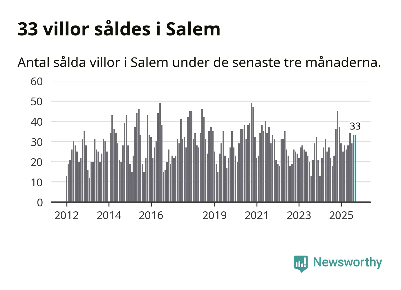 Mellan juli och september gjordes sammanlagt 33 affärer med villor i Salems kommun. Det kan jämföras med 23 vid motsvarande tid i fjol.