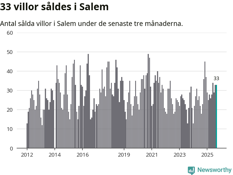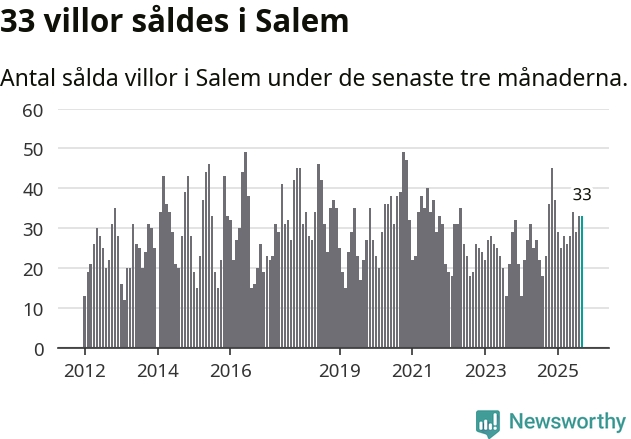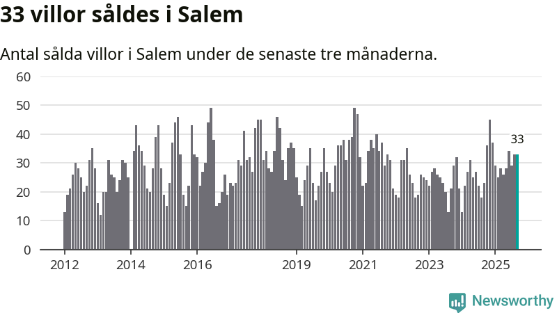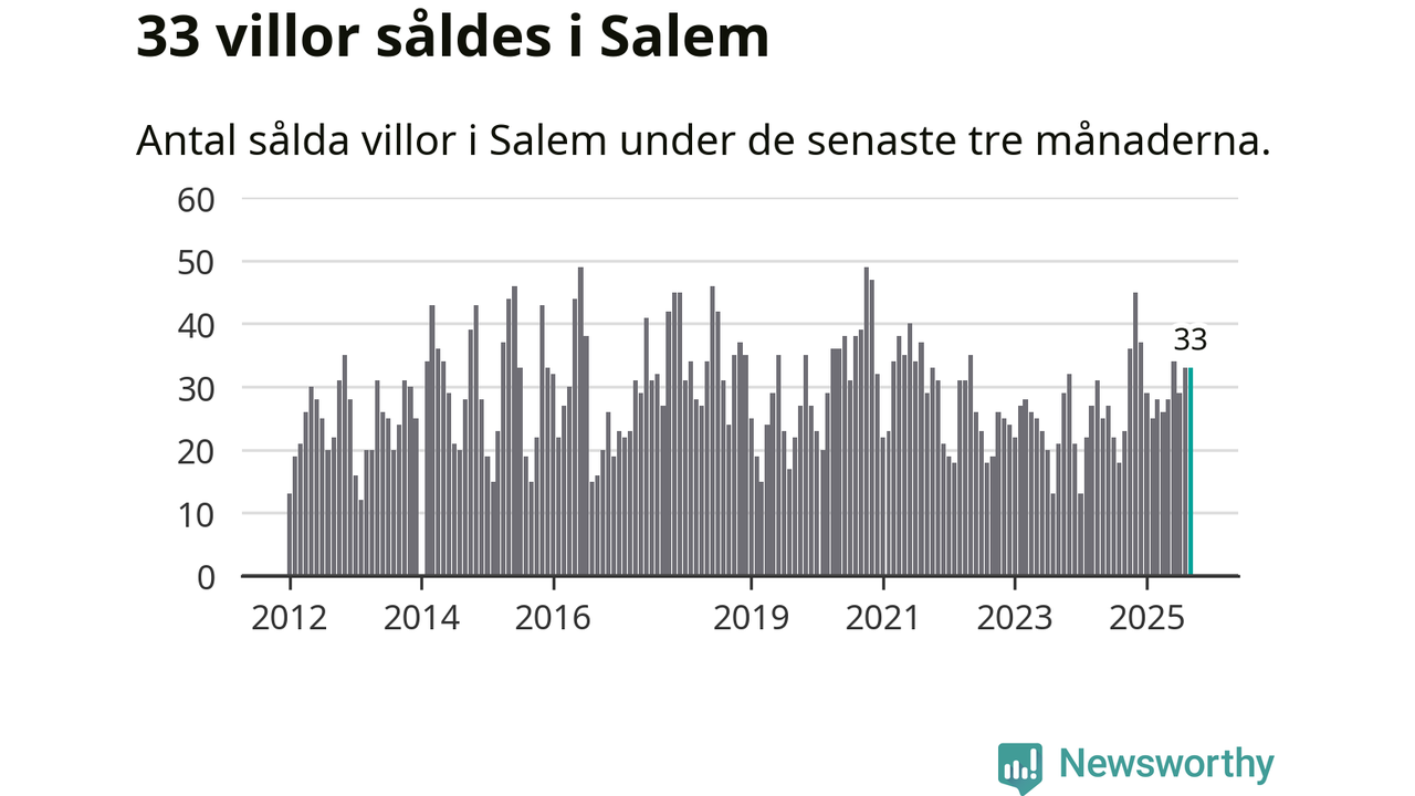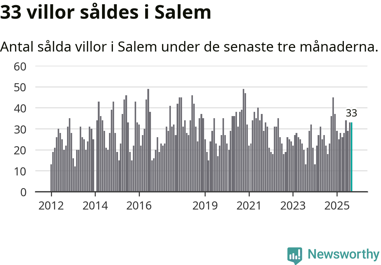 Mellan juli och september gjordes sammanlagt 33 affärer med villor i Salems kommun. Det kan jämföras med 23 vid motsvarande tid i fjol.