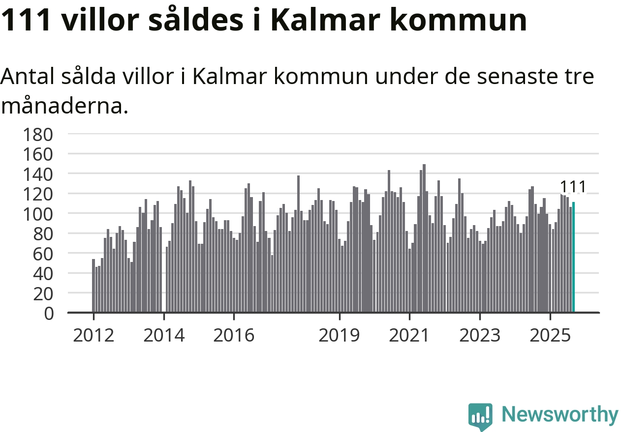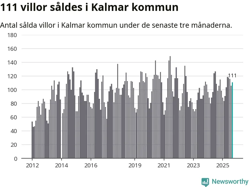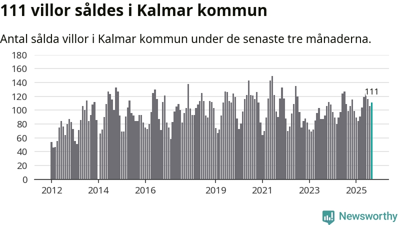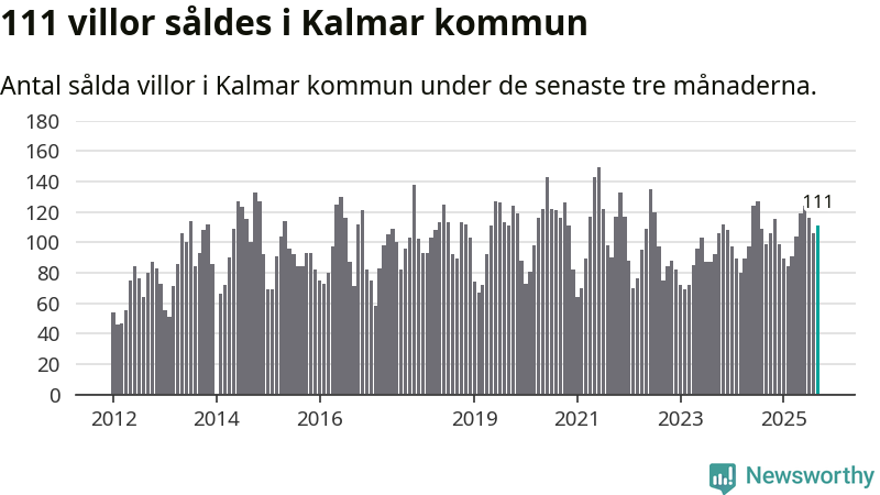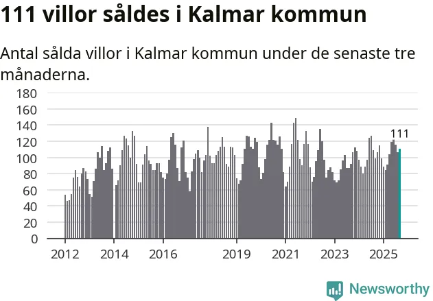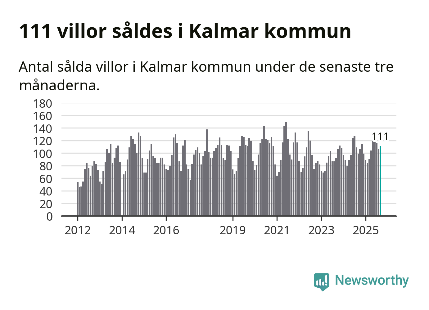 Sammanlagt såldes 111 villor i Kalmar kommun mellan juli och september till ett genomsnittligt pris på 3,1 miljoner kronor. I fjol gjordes 99 affärer vid den här tiden på året.