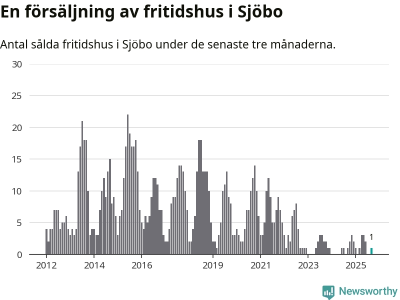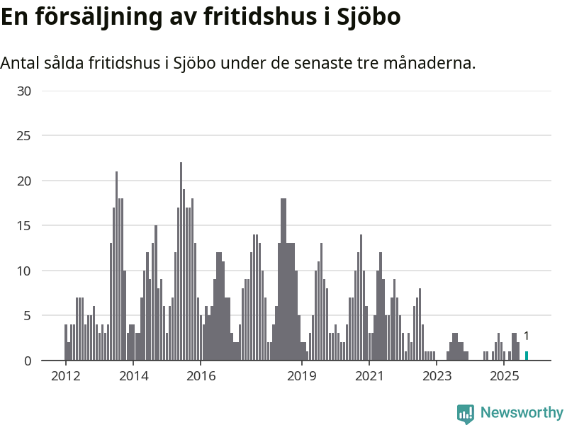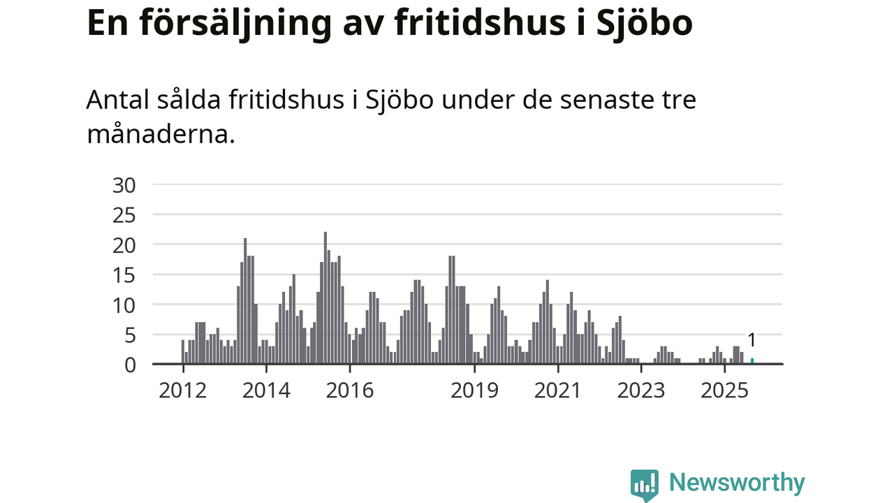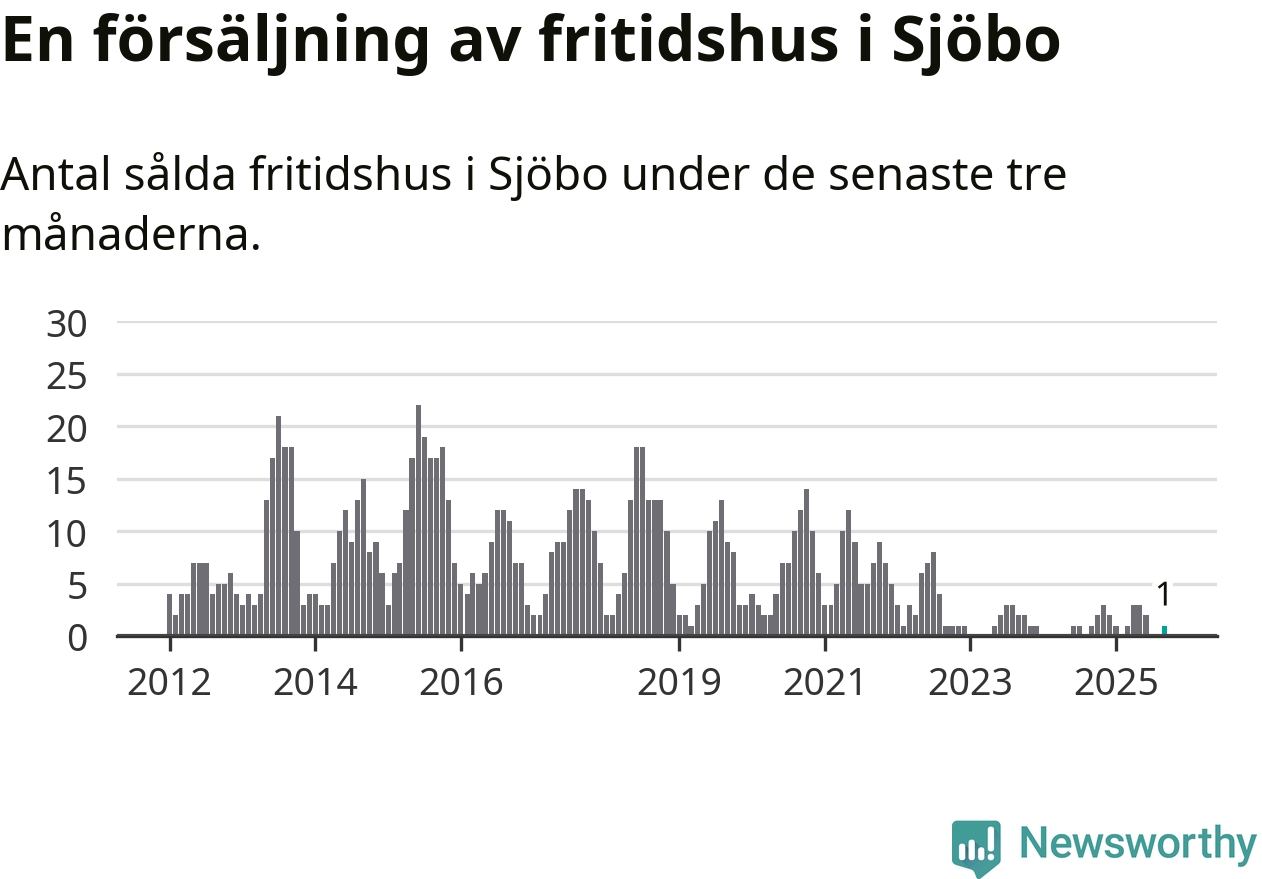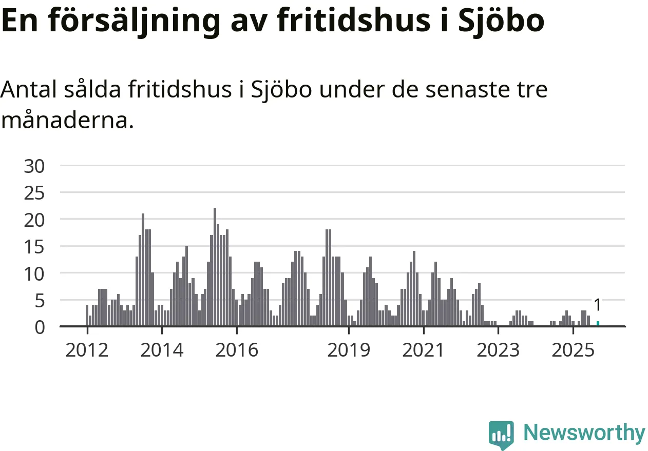 Mellan juli och september gjordes sammanlagt en affär med fritidshus i Sjöbo kommun. Det är lika många affärer som vid motsvarande tid i fjol.