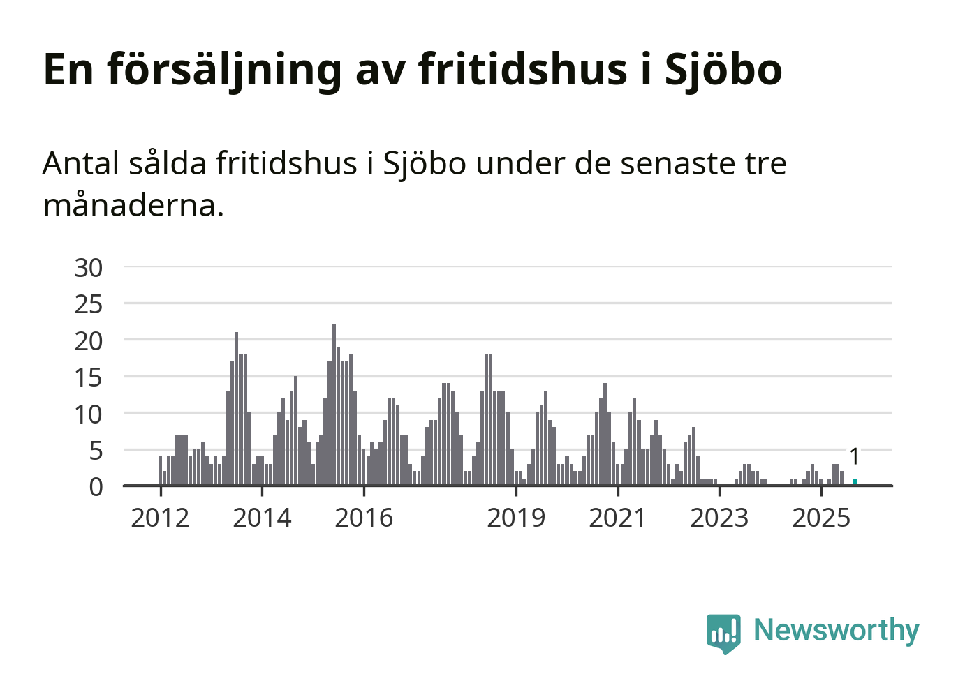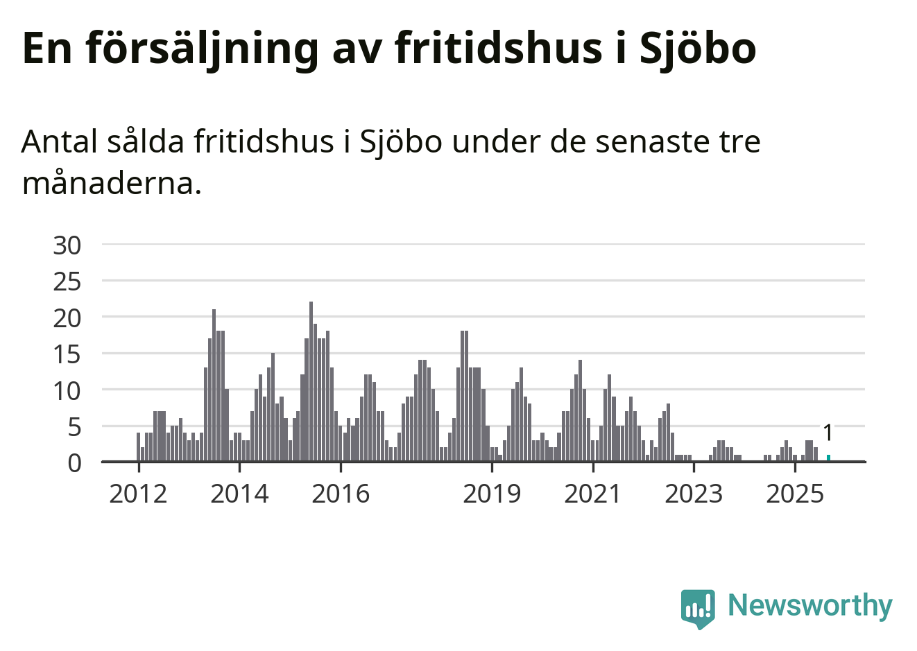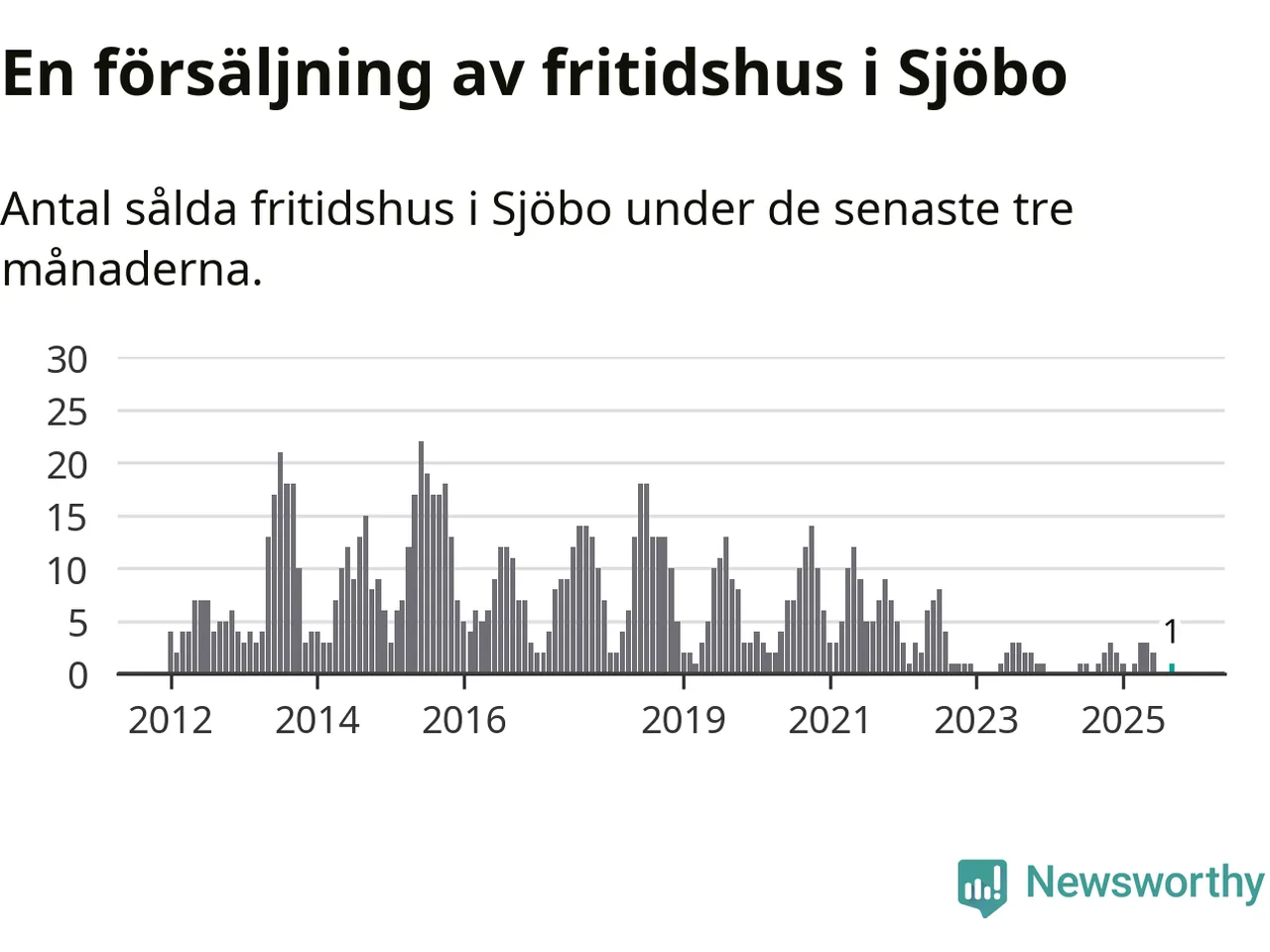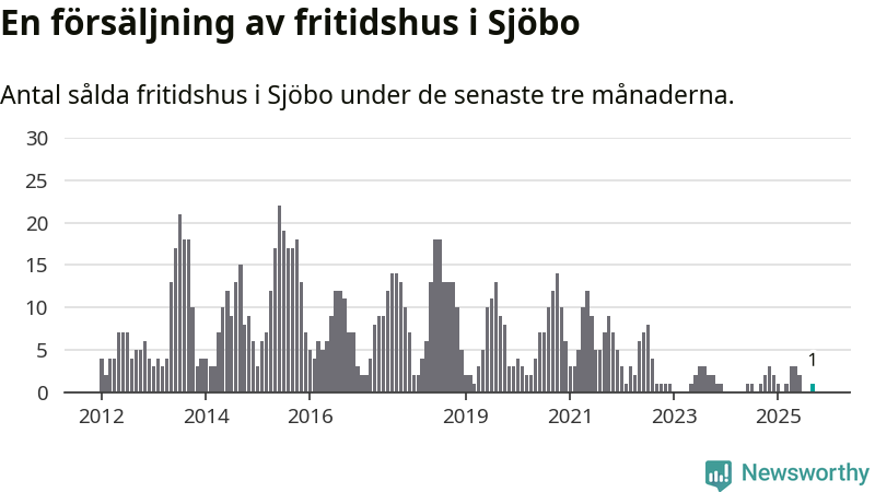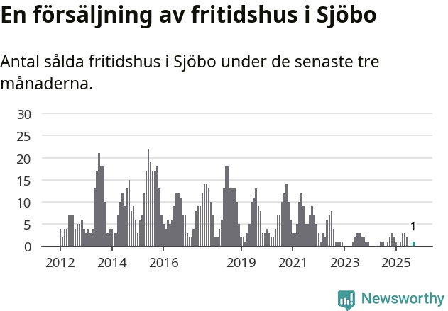 Mellan juli och september gjordes sammanlagt en affär med fritidshus i Sjöbo kommun. Det är lika många affärer som vid motsvarande tid i fjol.