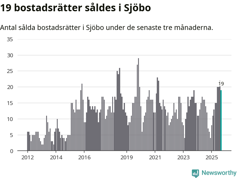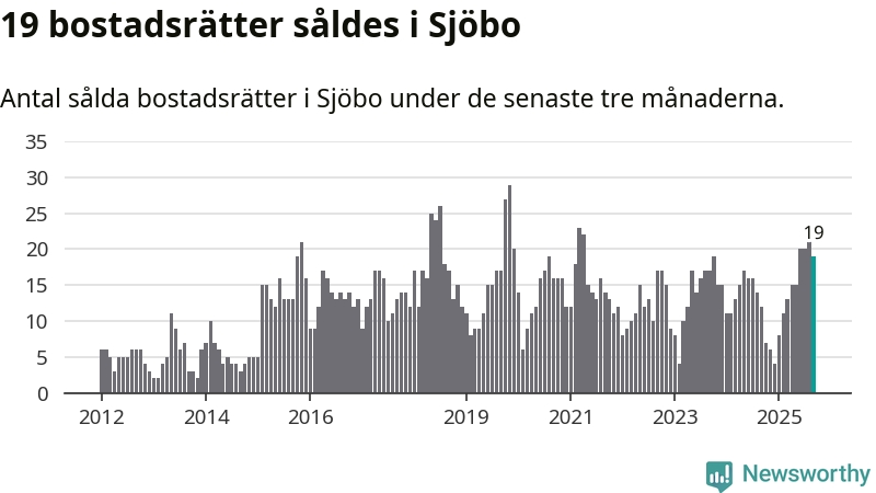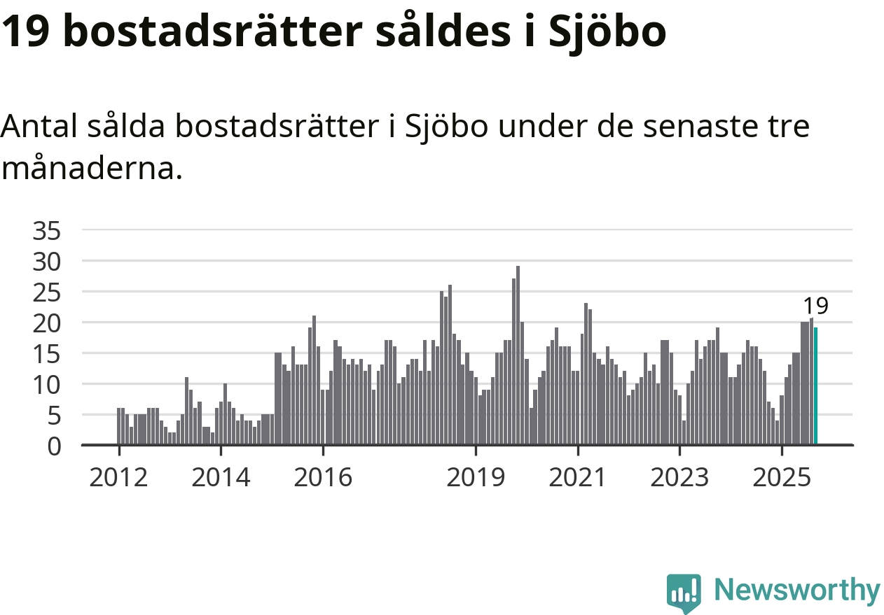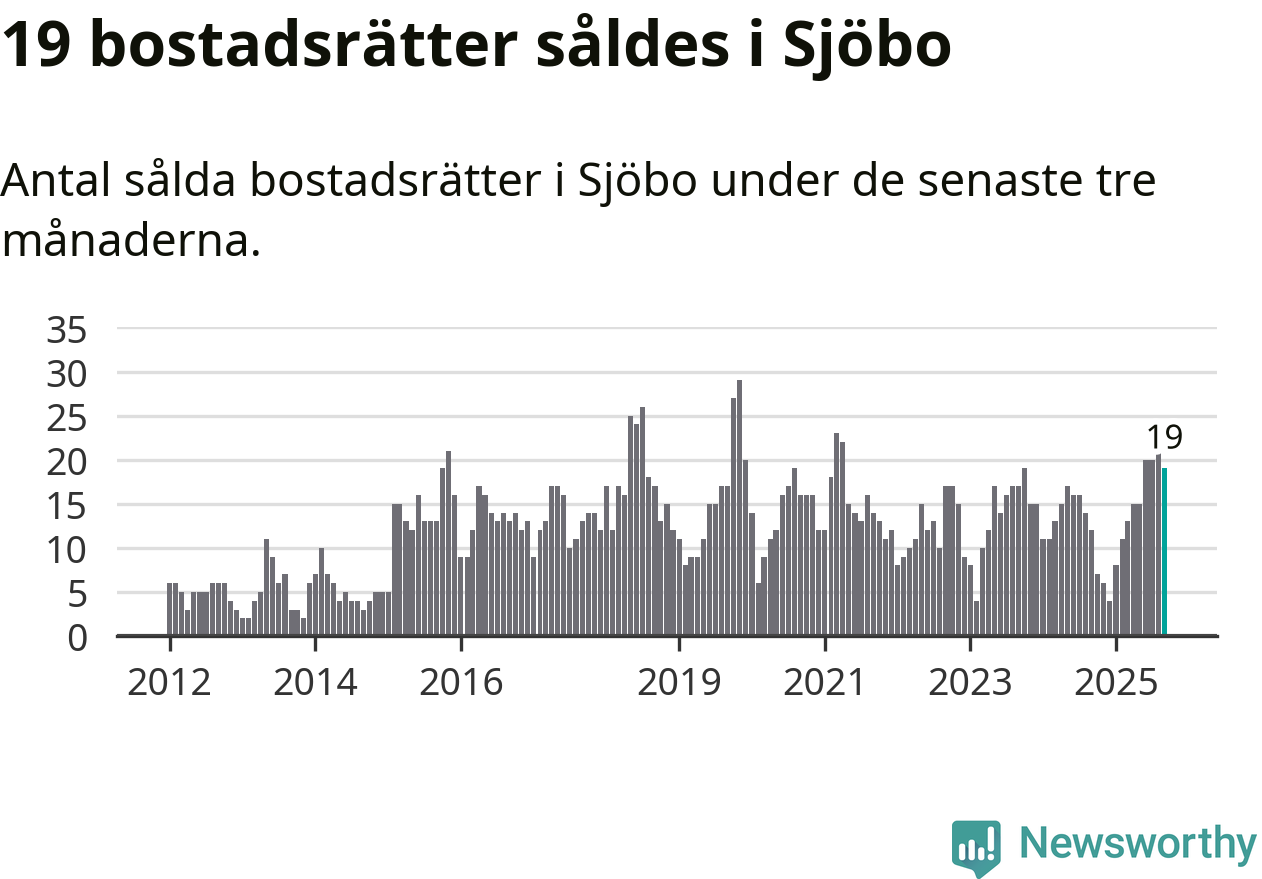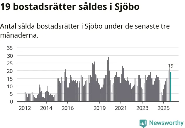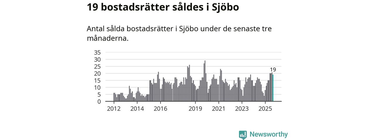 Mellan juli och september gjordes sammanlagt 19 affärer med bostadsrätter i Sjöbo kommun. Det kan jämföras med tolv vid motsvarande tid i fjol.