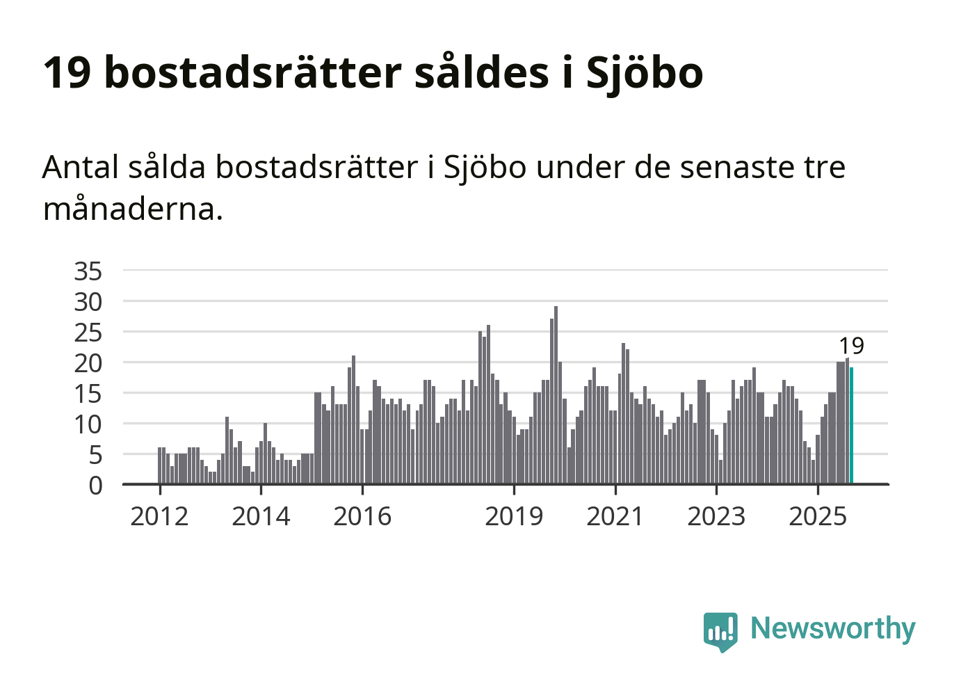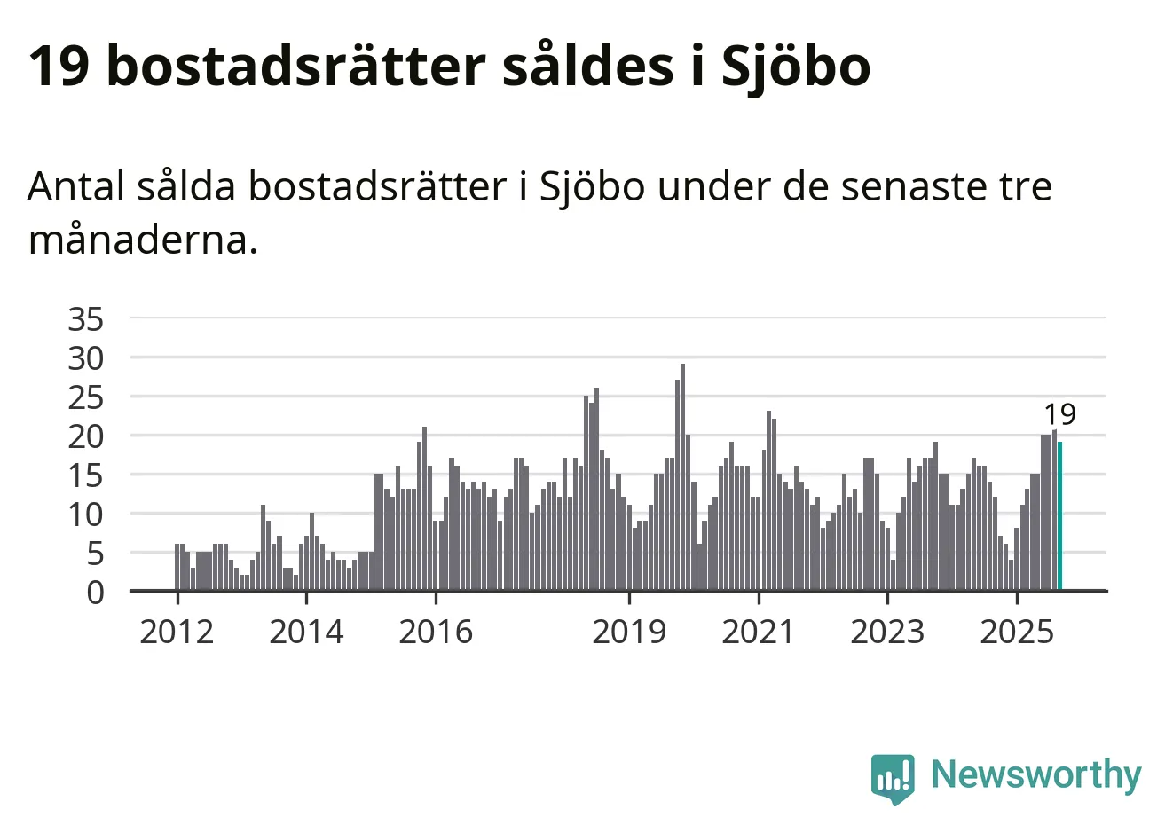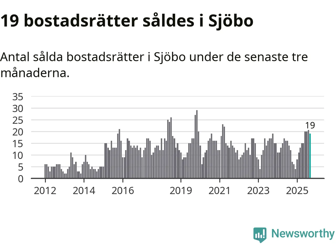 Mellan juli och september gjordes sammanlagt 19 affärer med bostadsrätter i Sjöbo kommun. Det kan jämföras med tolv vid motsvarande tid i fjol.