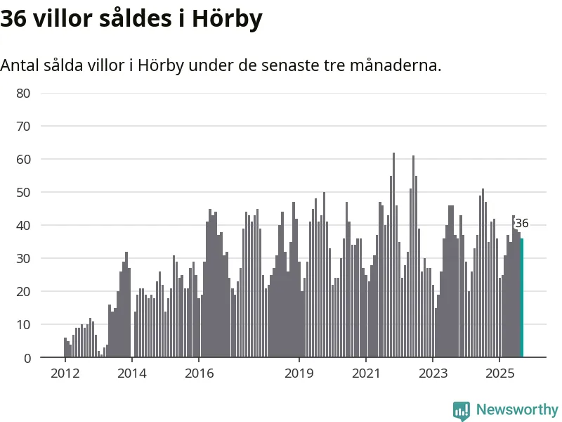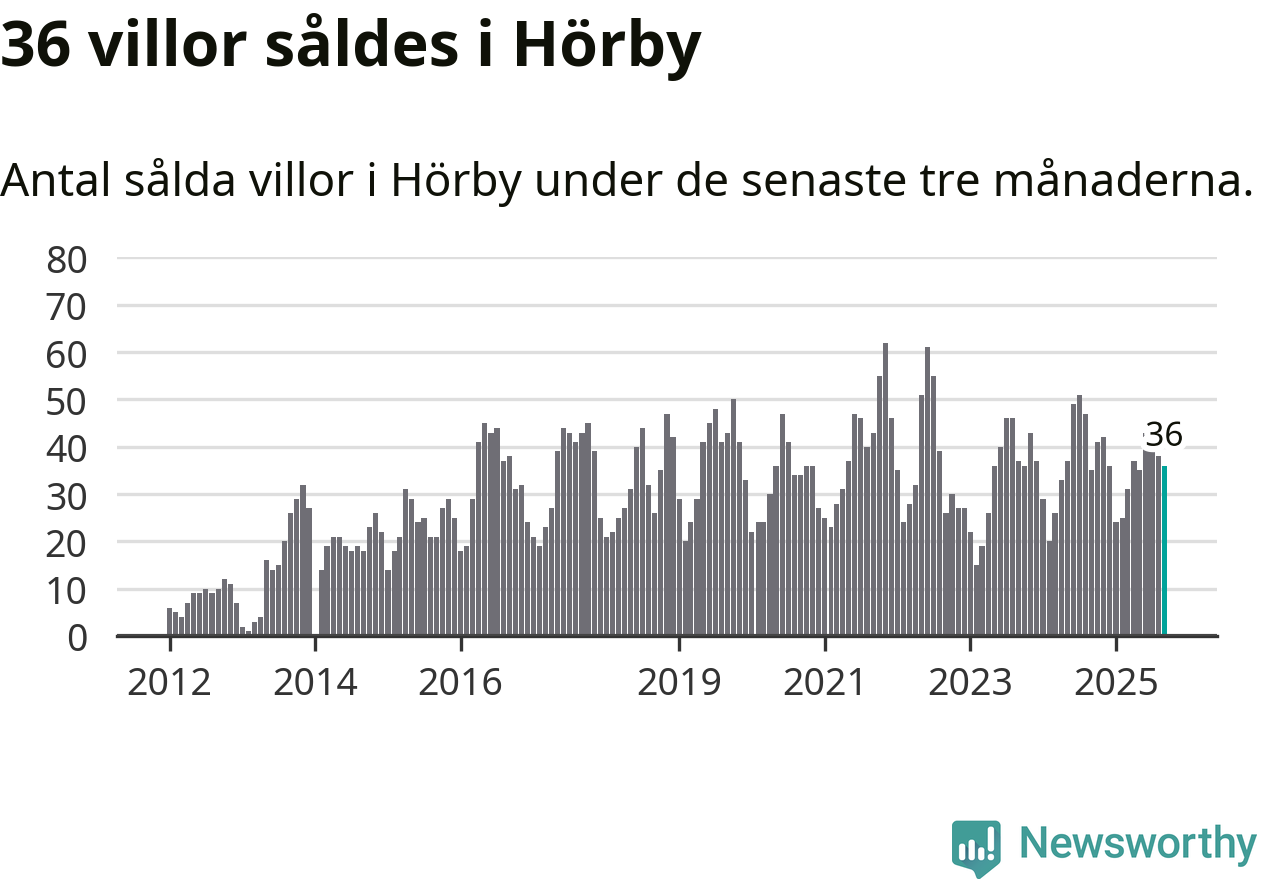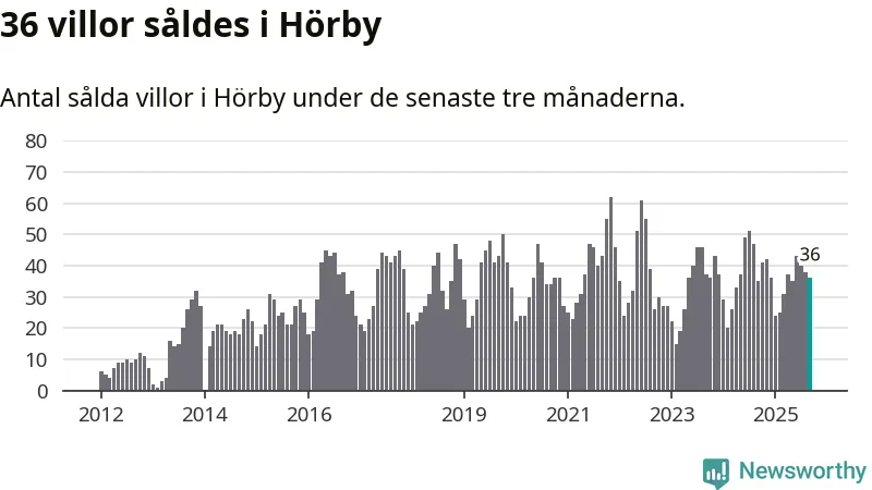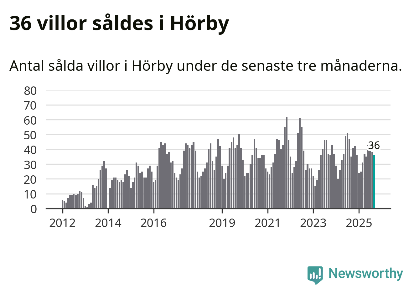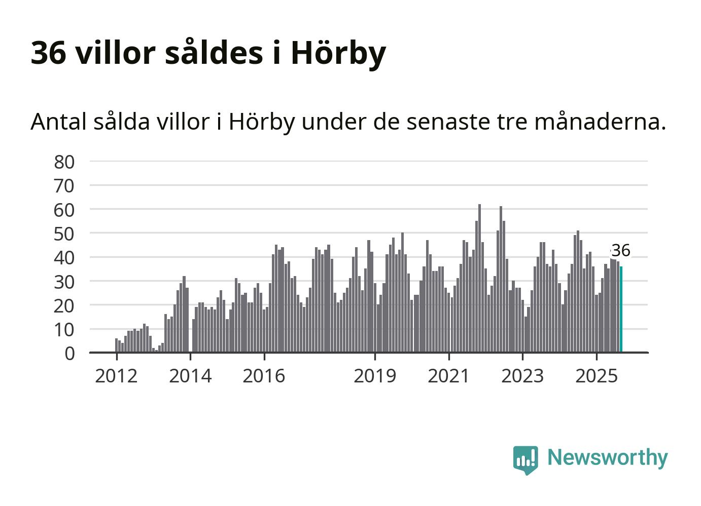 Mellan juli och september gjordes sammanlagt 36 affärer med villor i Hörby kommun. Det kan jämföras med 35 vid motsvarande tid i fjol.