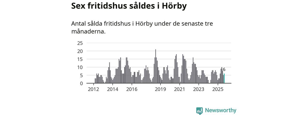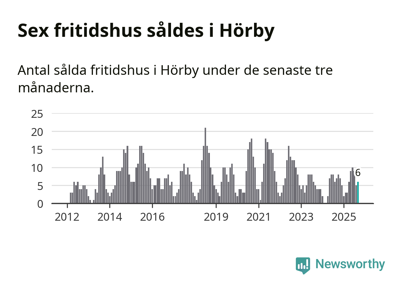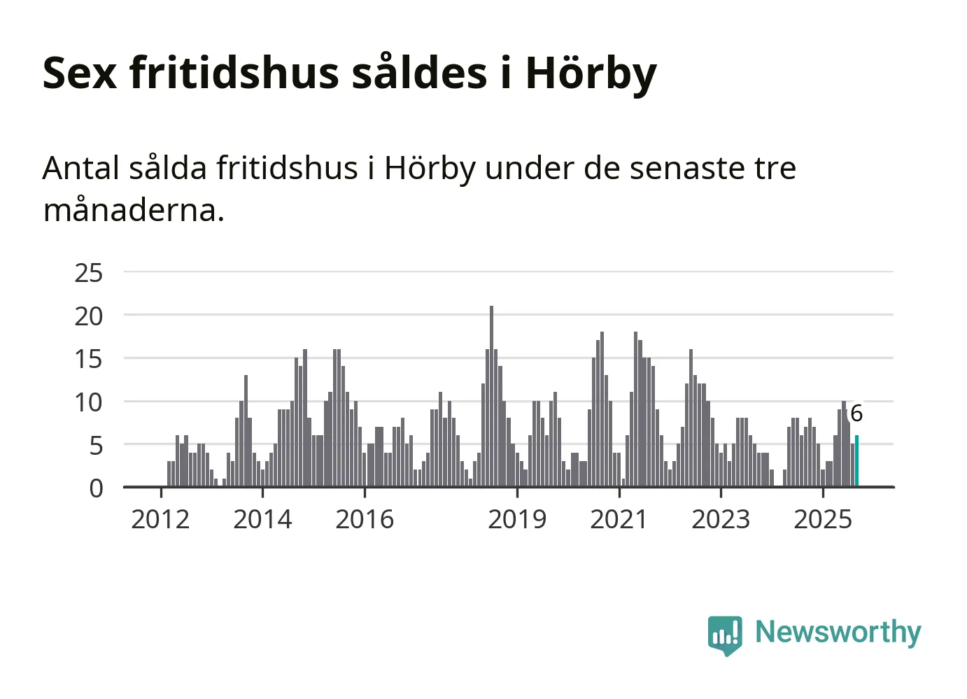 Mellan juli och september gjordes sammanlagt sex affärer med fritidshus i Hörby kommun. Det kan jämföras med sju vid motsvarande tid i fjol.