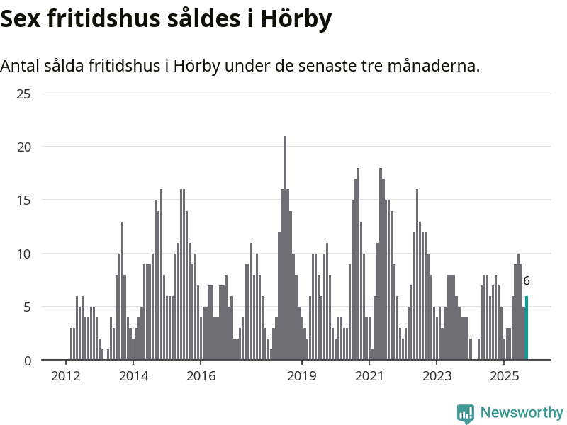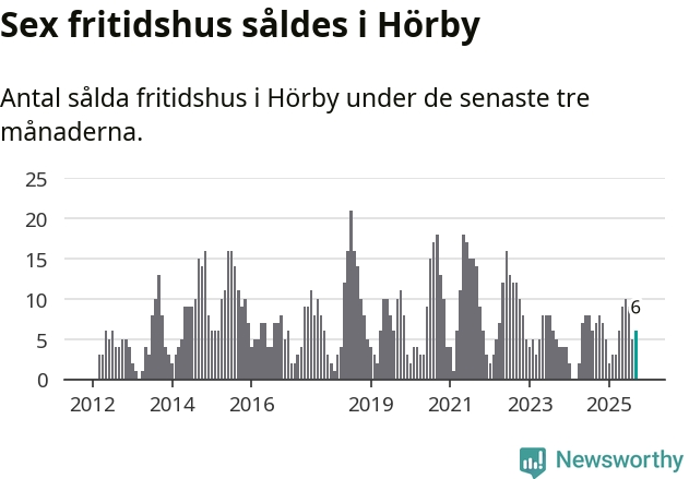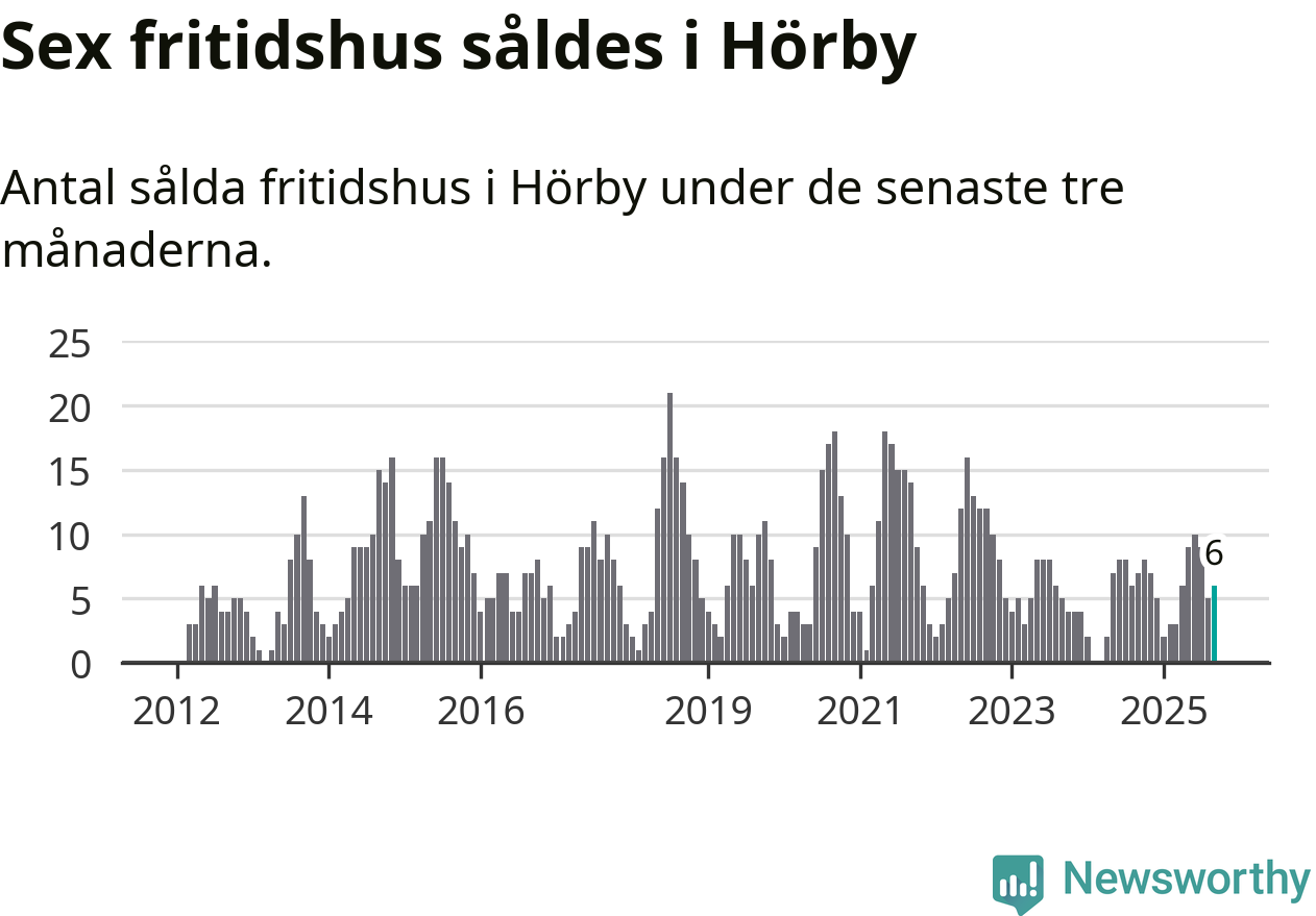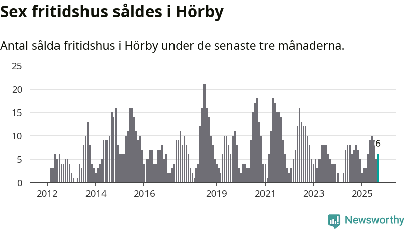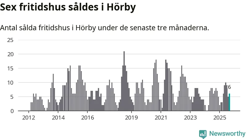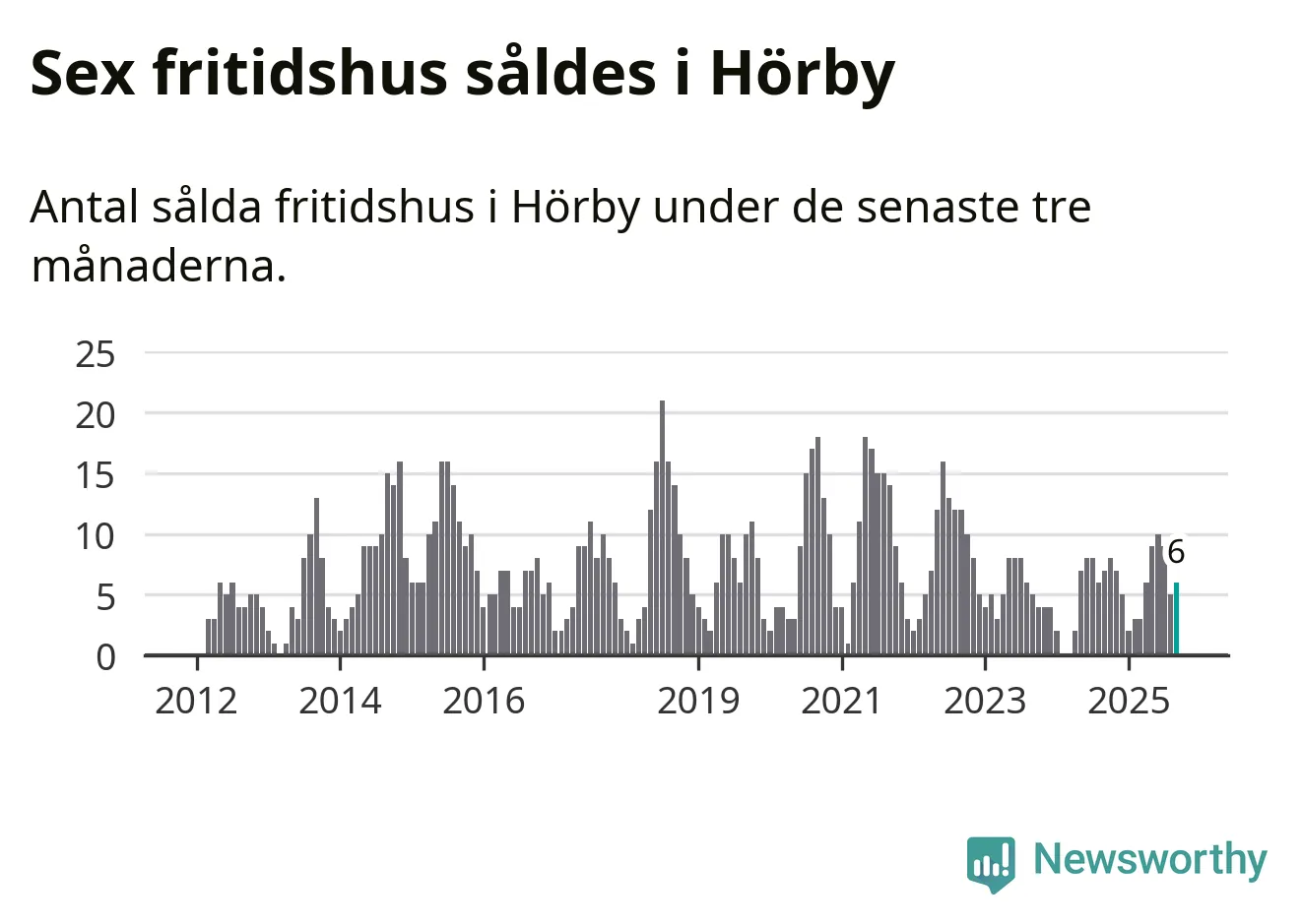 Mellan juli och september gjordes sammanlagt sex affärer med fritidshus i Hörby kommun. Det kan jämföras med sju vid motsvarande tid i fjol.