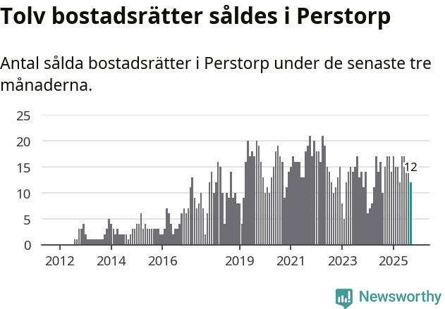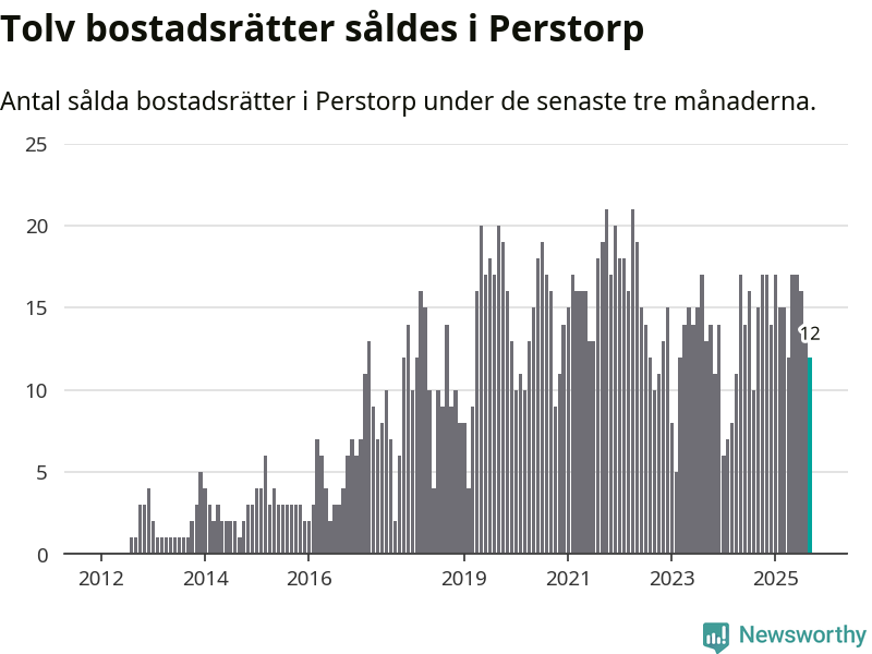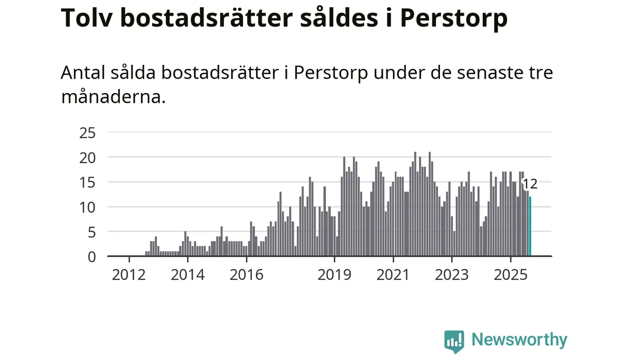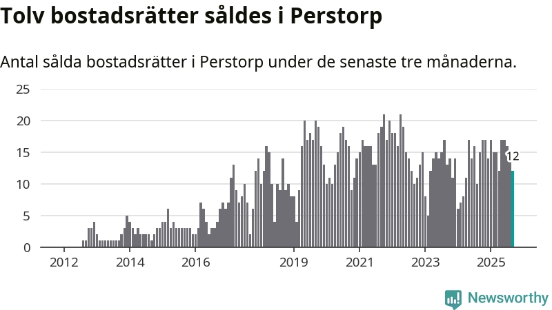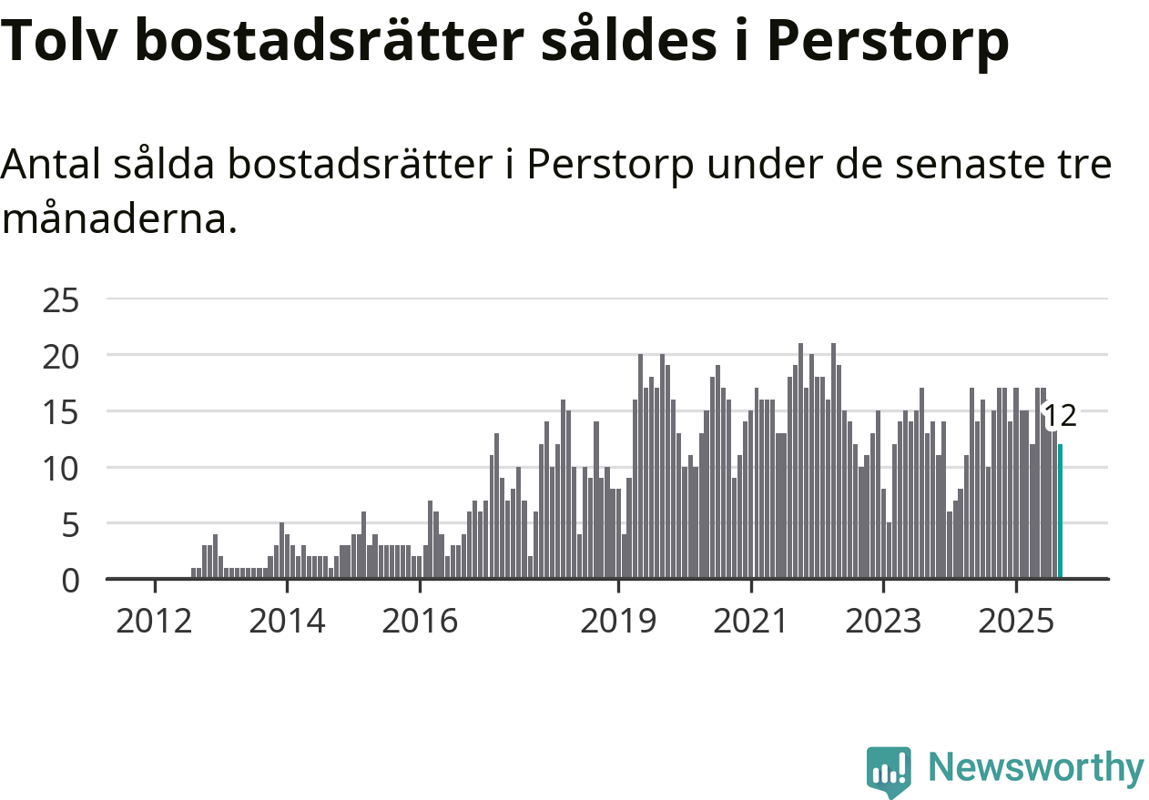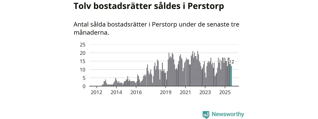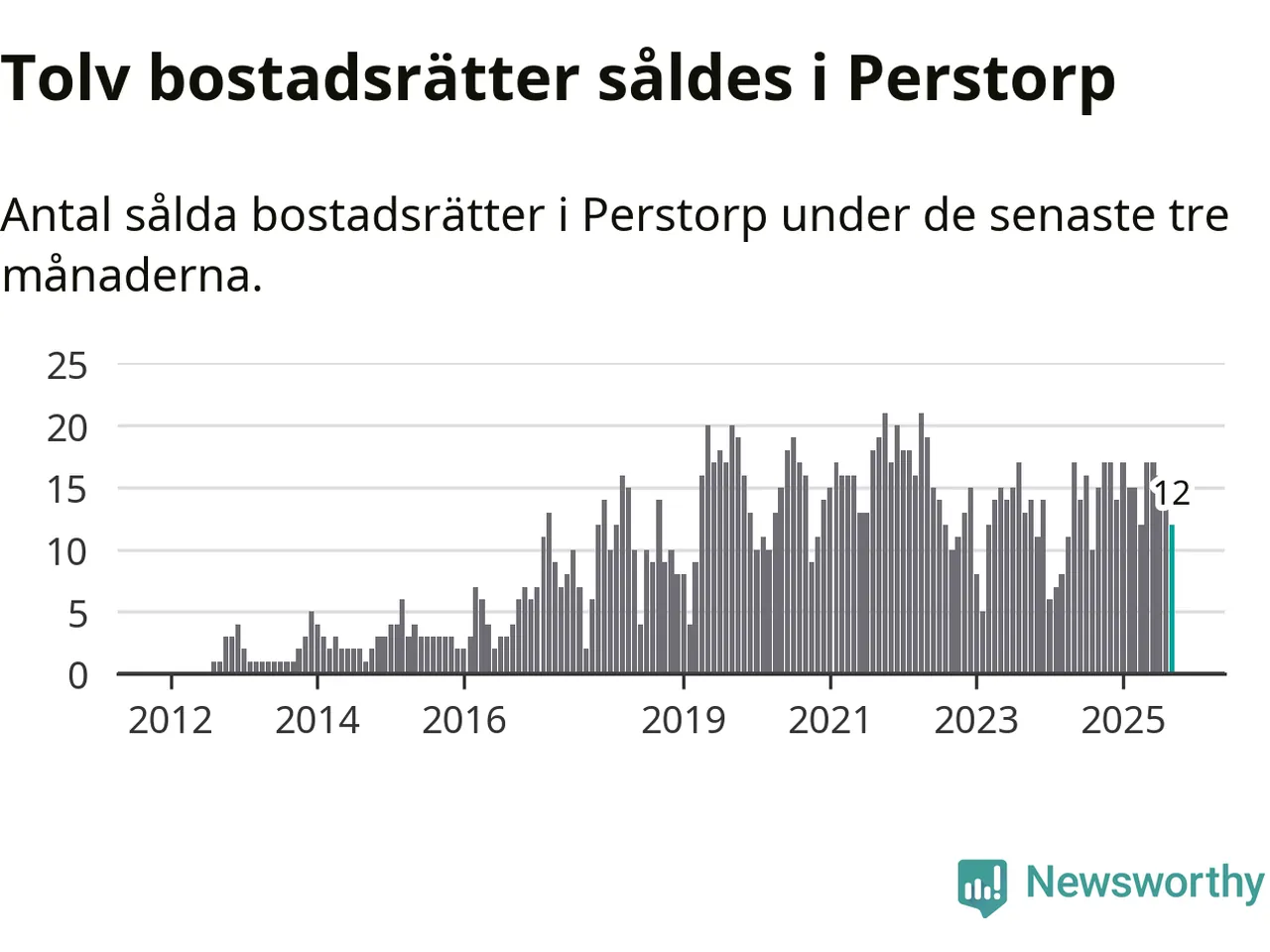 Mellan juli och september gjordes sammanlagt tolv affärer med bostadsrätter i Perstorps kommun. Det kan jämföras med 15 vid motsvarande tid i fjol.