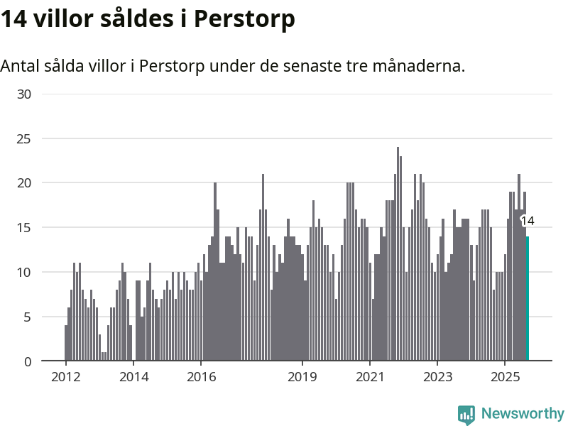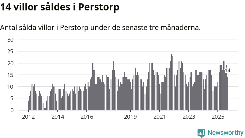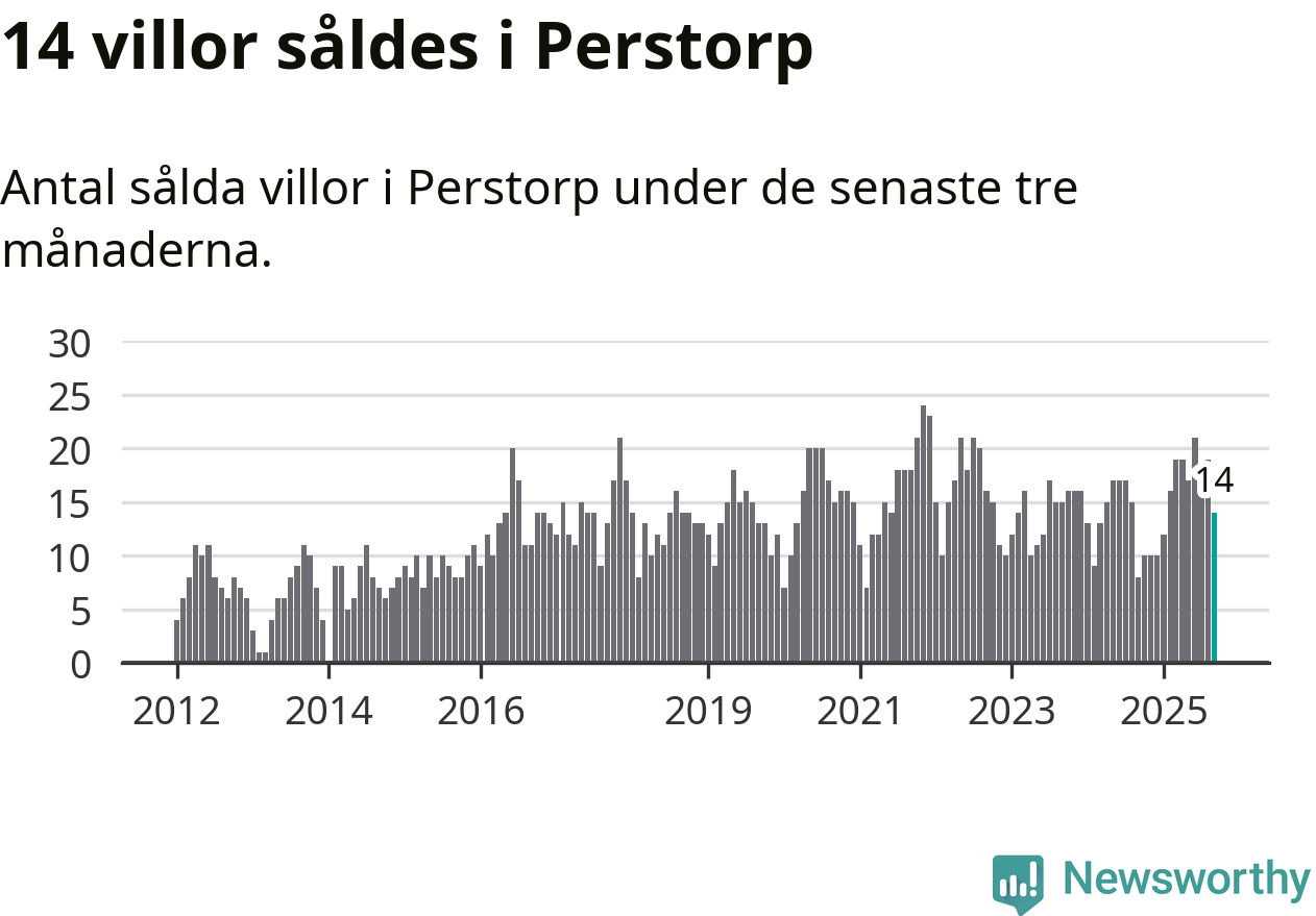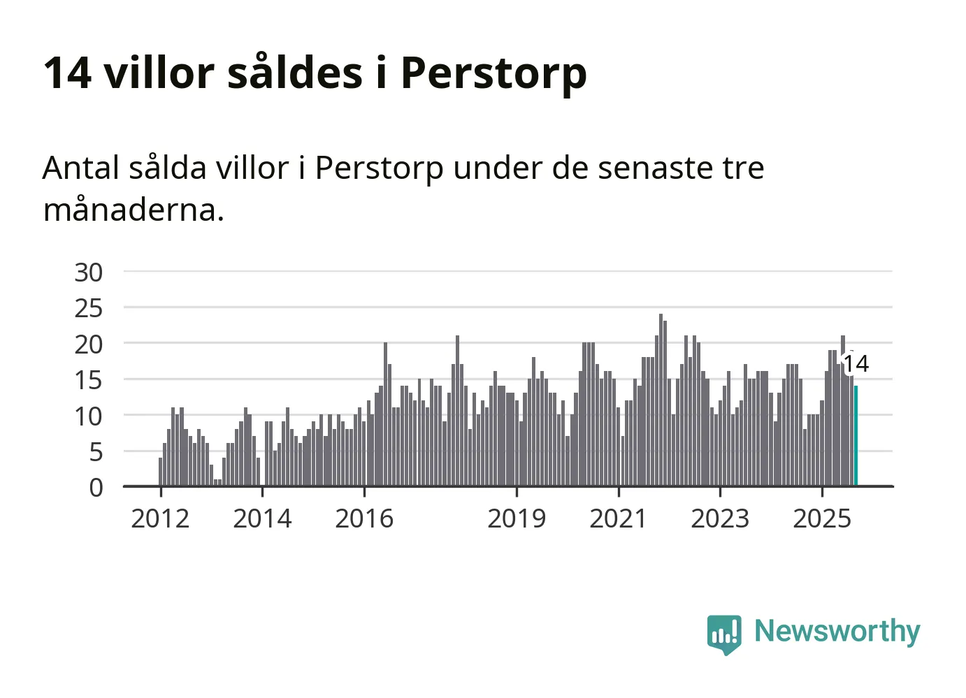 Mellan juli och september gjordes sammanlagt 14 affärer med villor i Perstorps kommun. Det kan jämföras med åtta vid motsvarande tid i fjol.