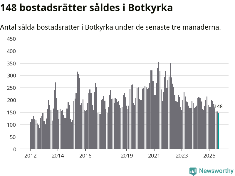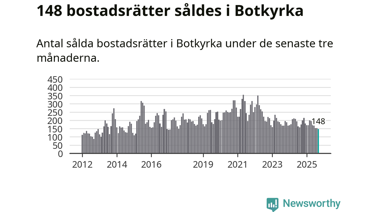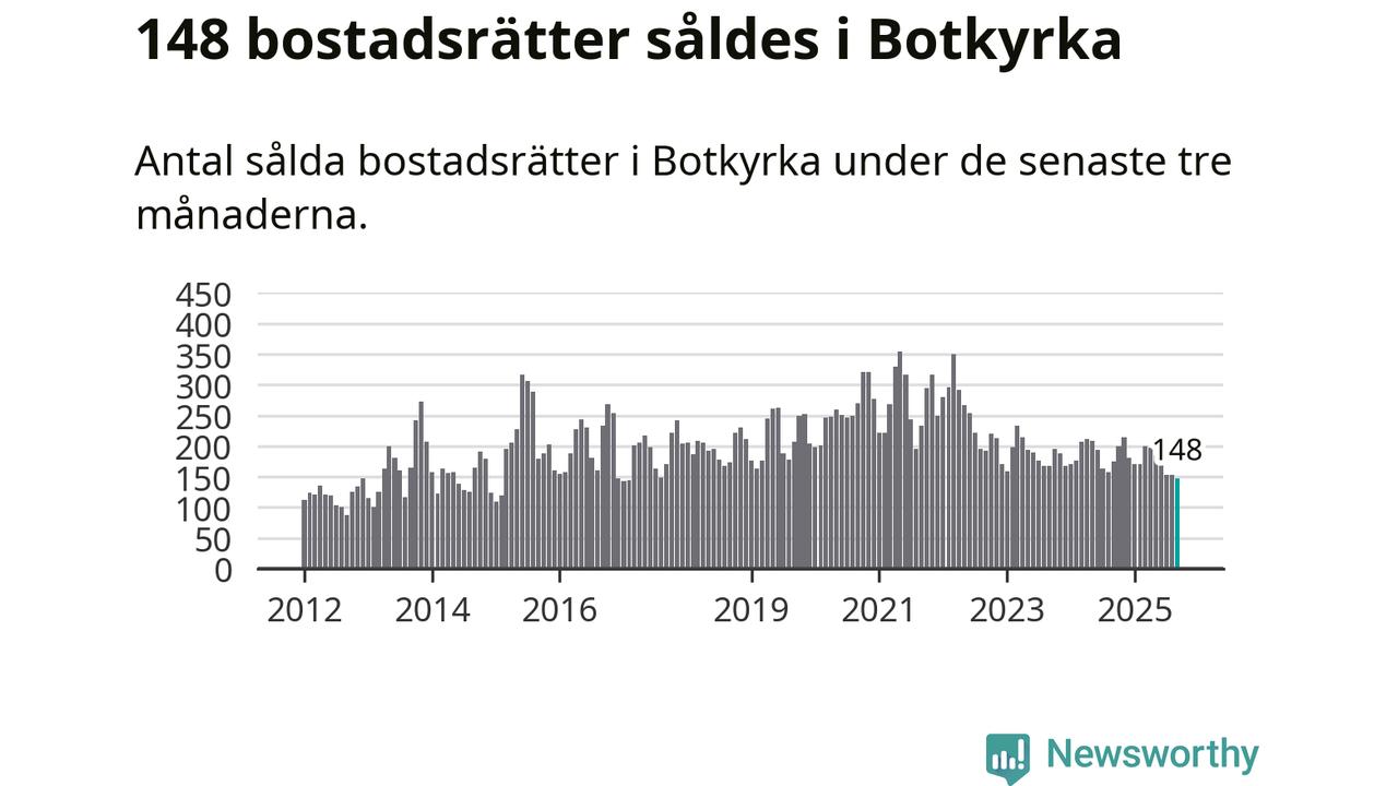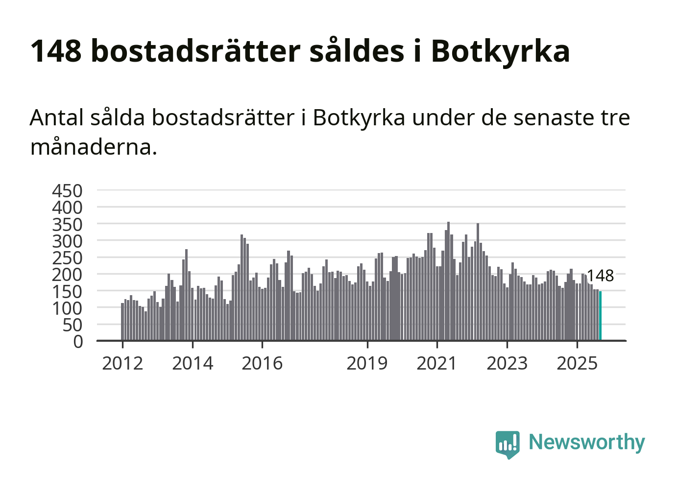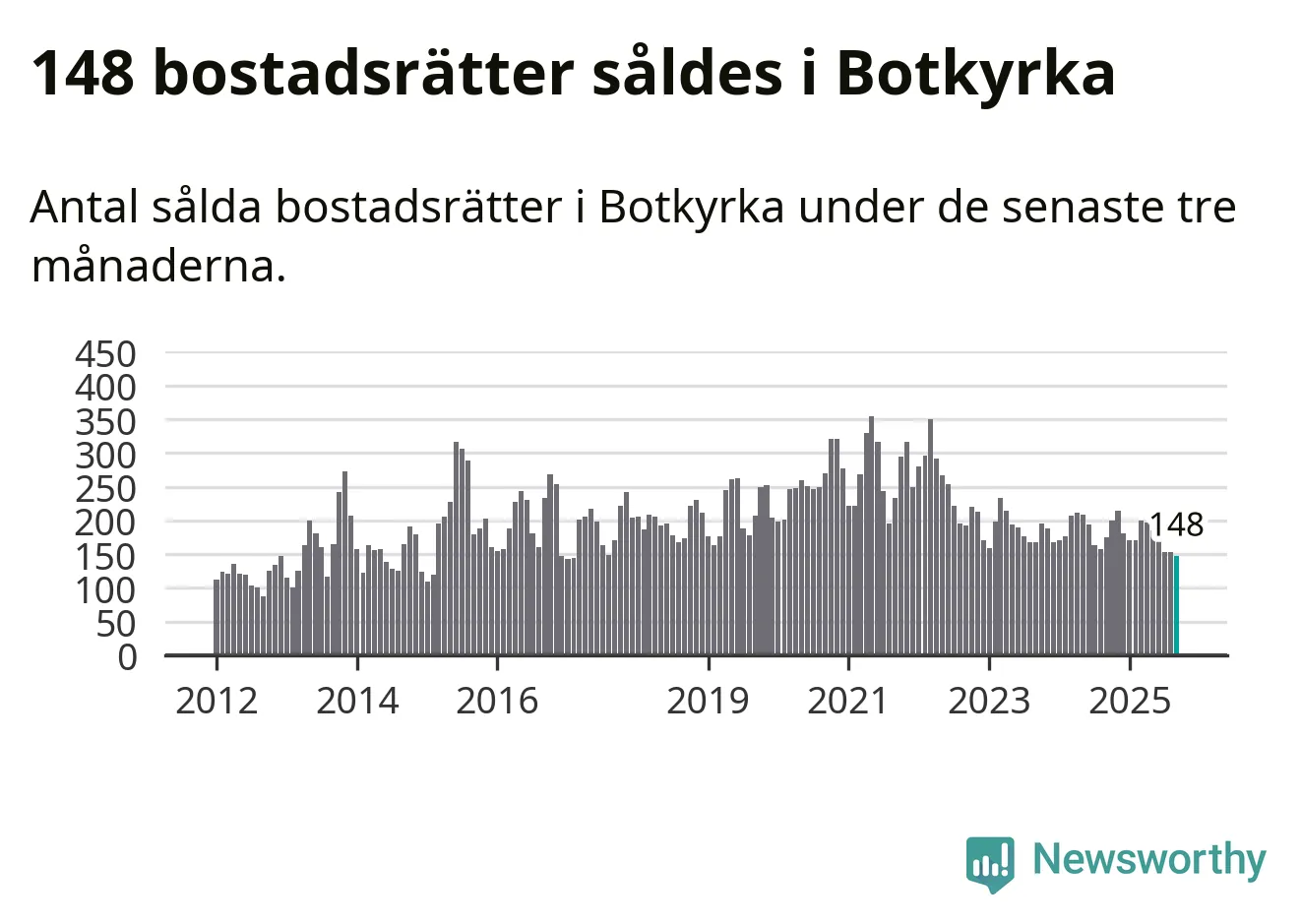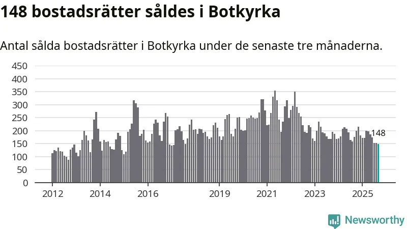 Mellan juli och september såldes 148 bostadsrätter i Botkyrka kommun. Det är färre än någon tremånadersperiod sedan 2017.
