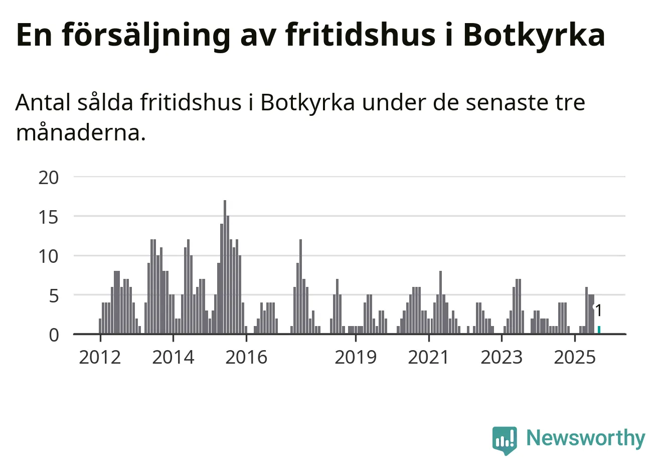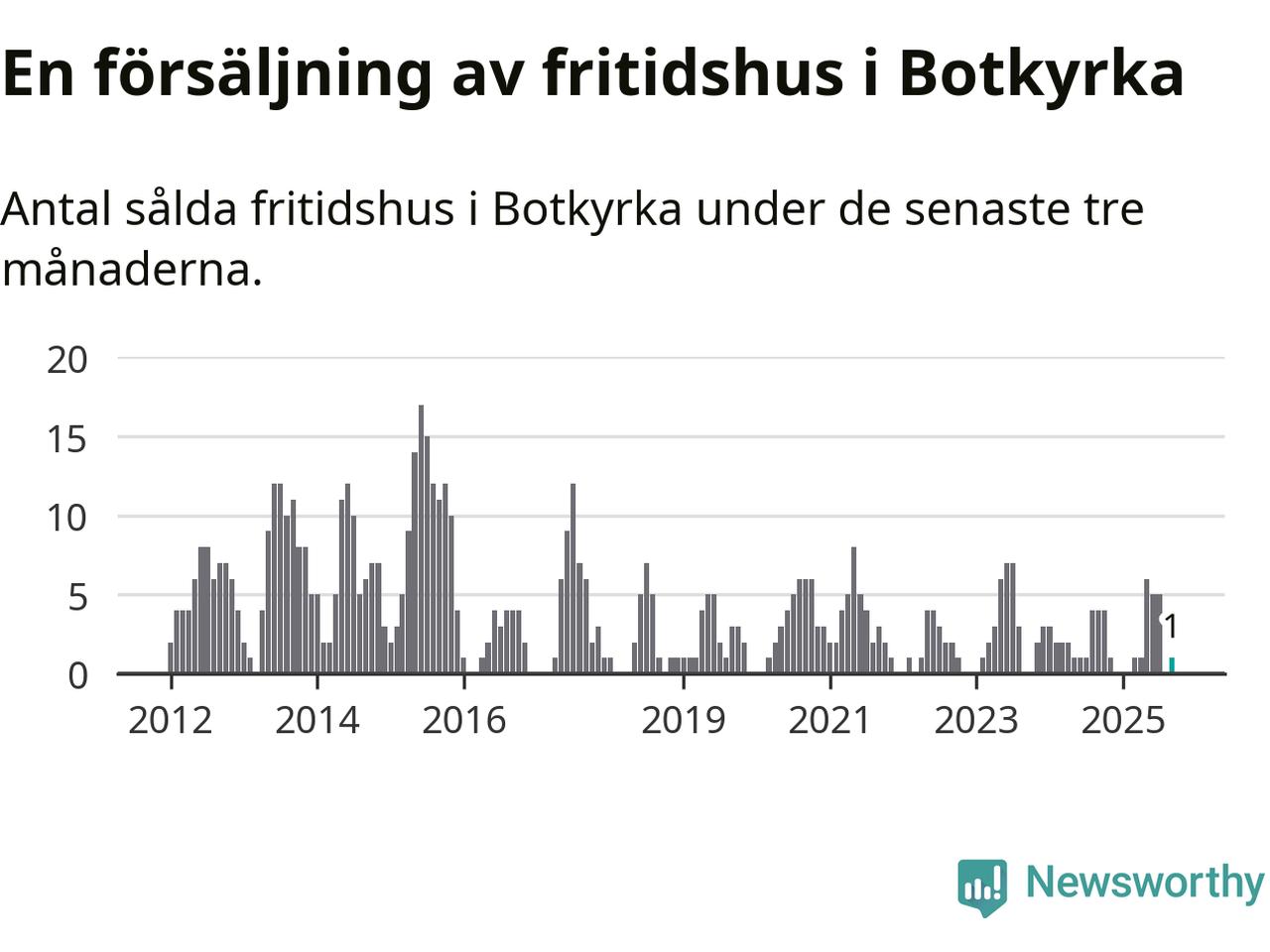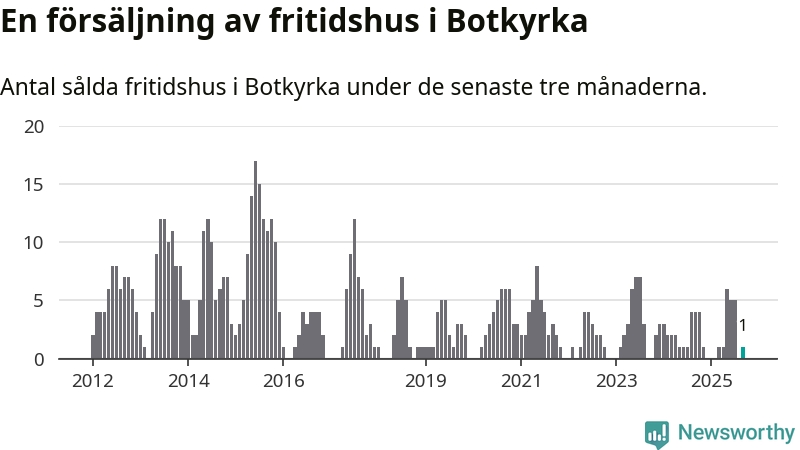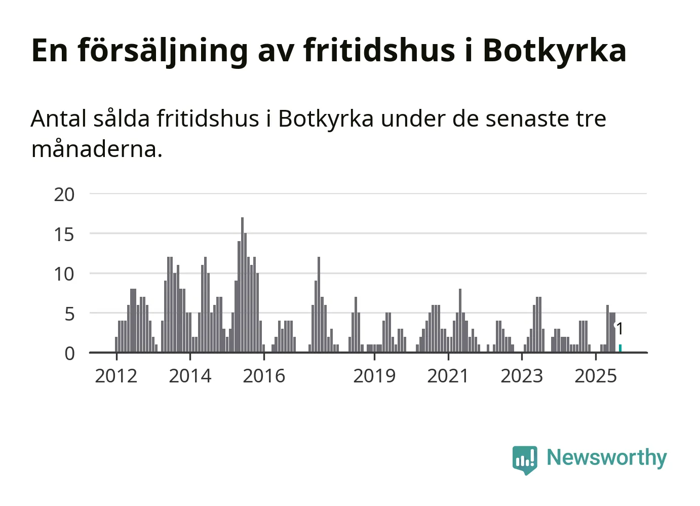 Mellan juli och september gjordes sammanlagt en affär med fritidshus i Botkyrka kommun. Det kan jämföras med fyra vid motsvarande tid i fjol.