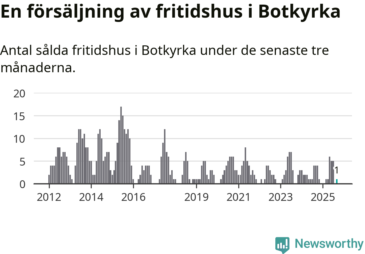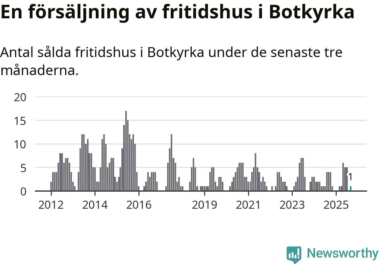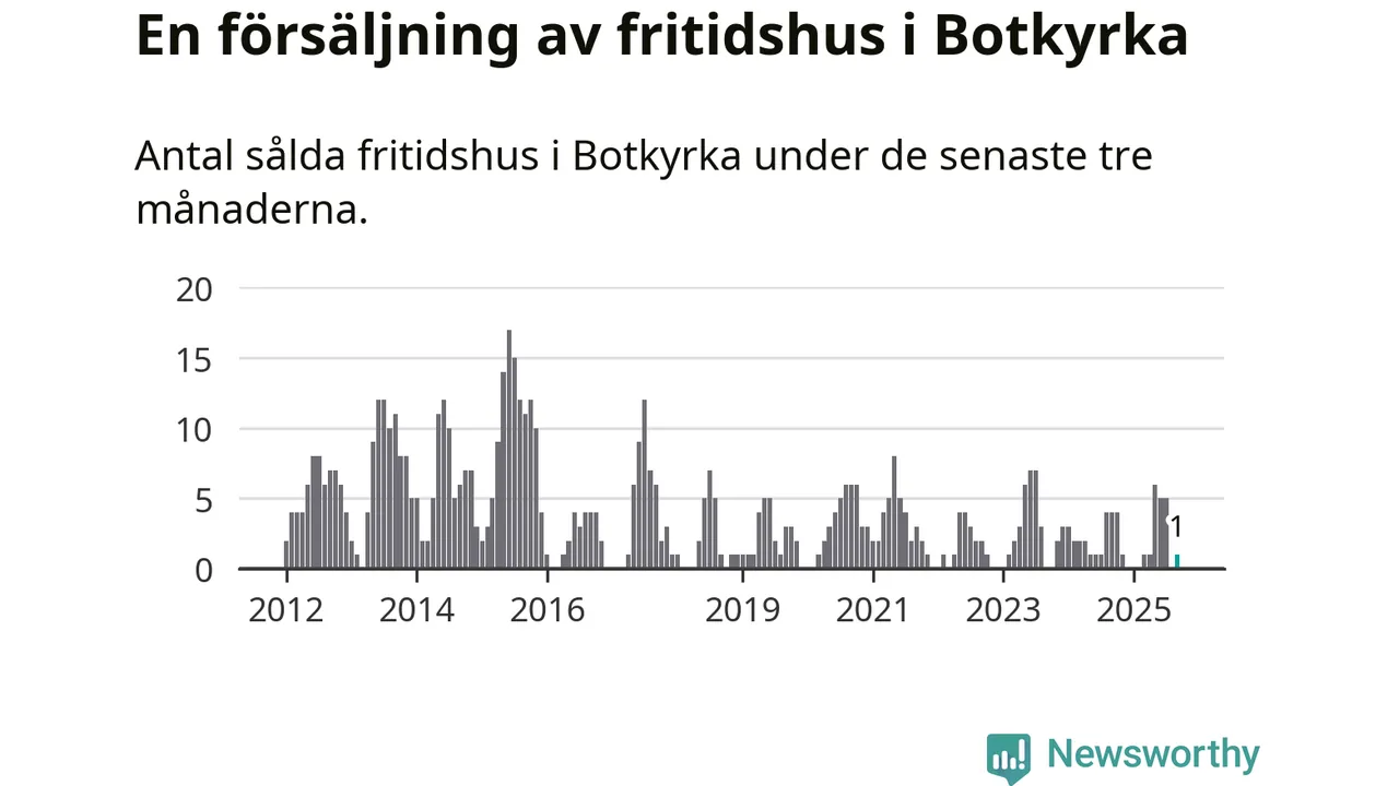 Mellan juli och september gjordes sammanlagt en affär med fritidshus i Botkyrka kommun. Det kan jämföras med fyra vid motsvarande tid i fjol.