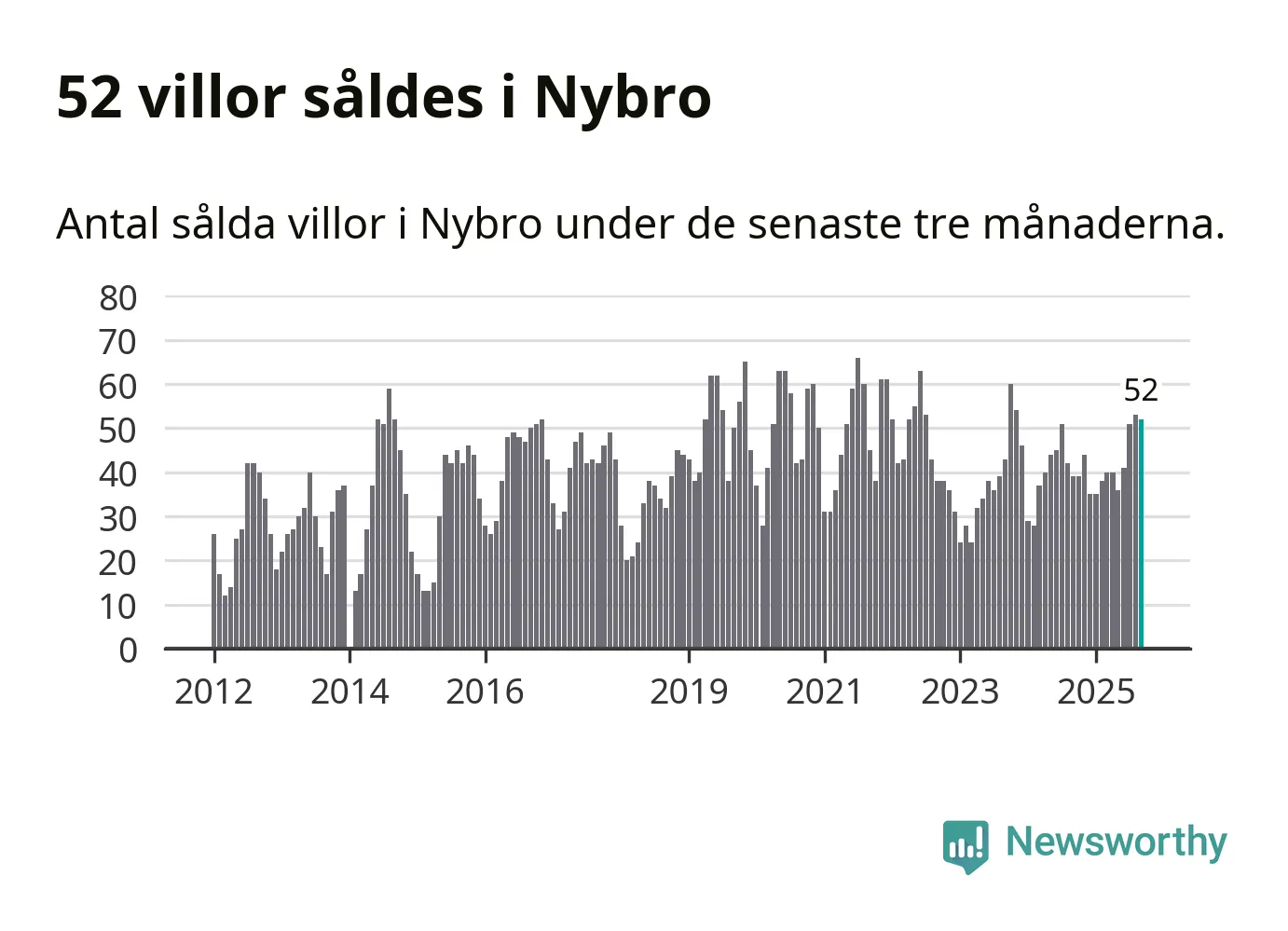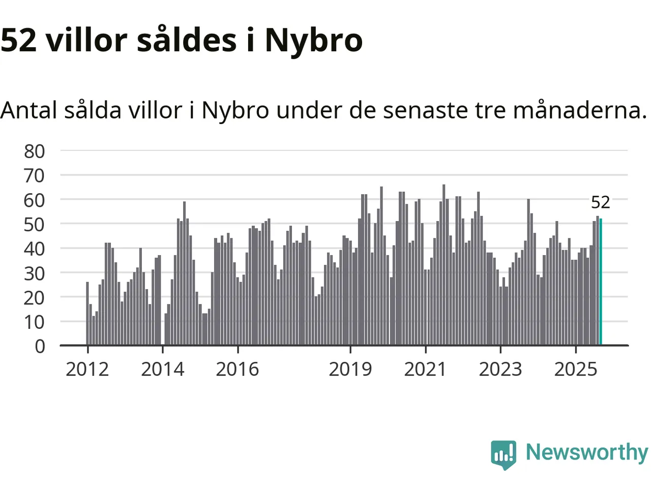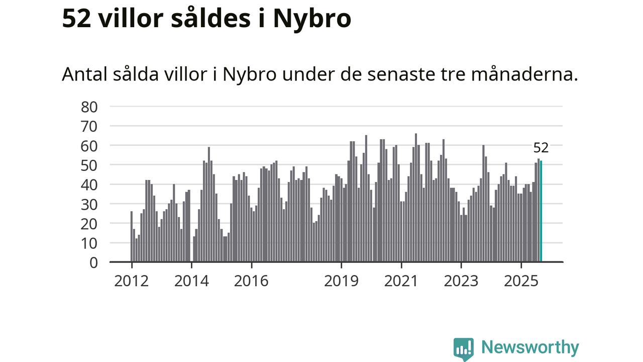 Sammanlagt såldes 52 villor i Nybro kommun mellan juli och september till ett genomsnittligt pris på 1,5 miljoner kronor. I fjol gjordes 39 affärer vid den här tiden på året.