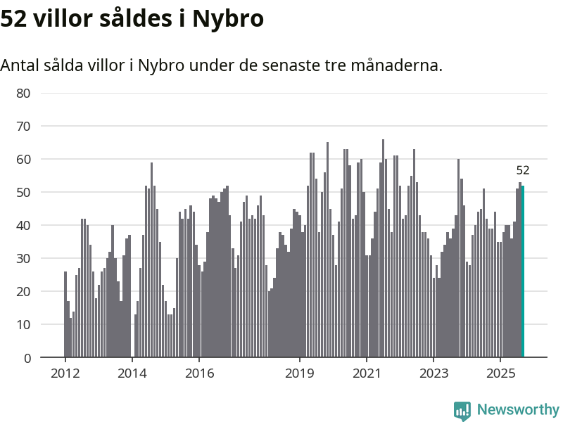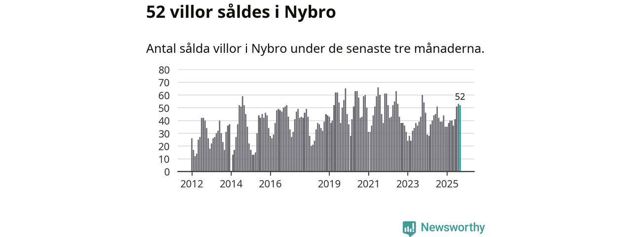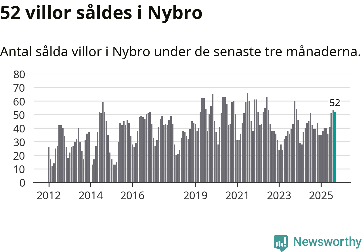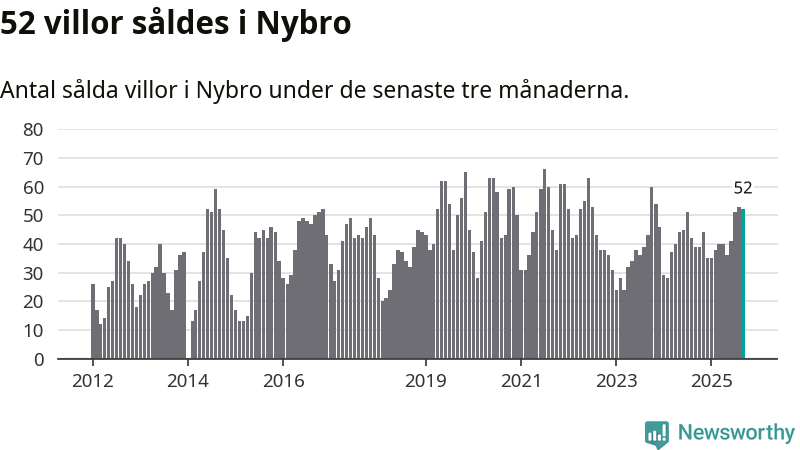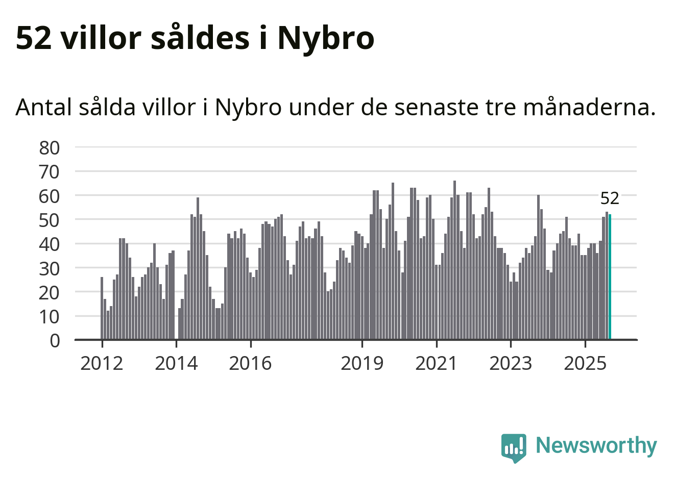 Sammanlagt såldes 52 villor i Nybro kommun mellan juli och september till ett genomsnittligt pris på 1,5 miljoner kronor. I fjol gjordes 39 affärer vid den här tiden på året.