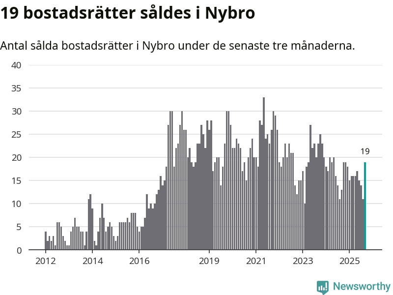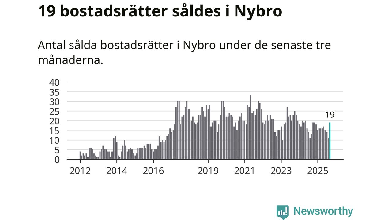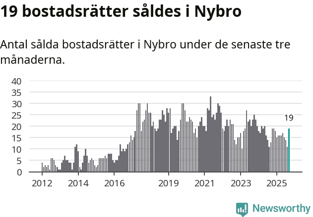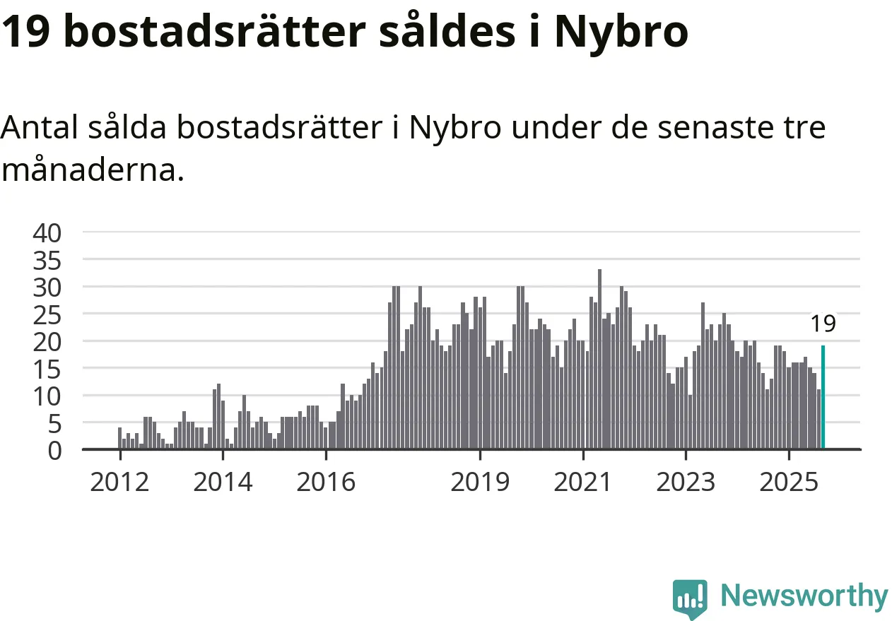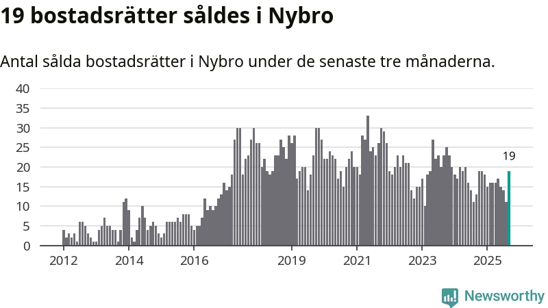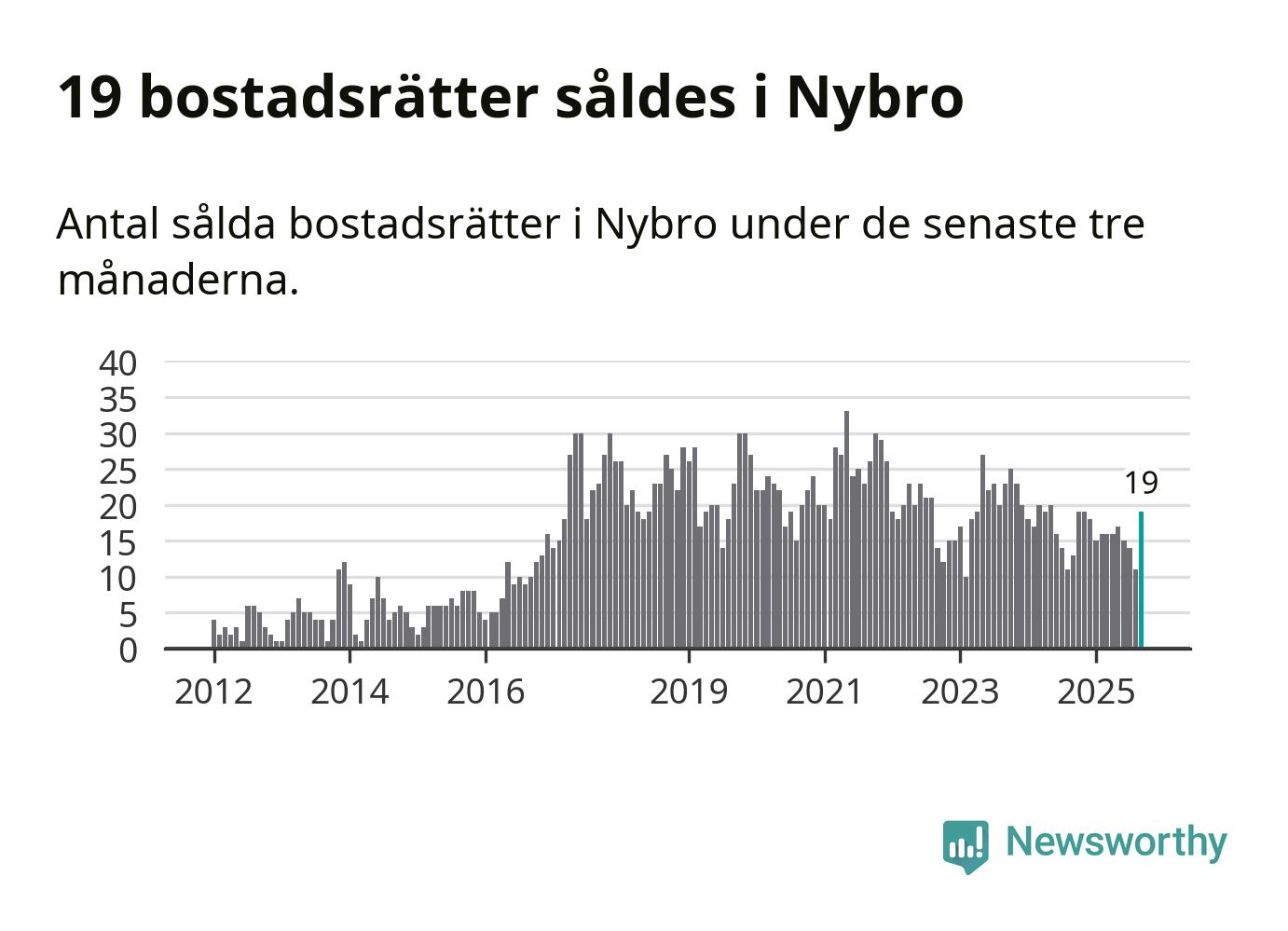Mellan juli och september gjordes sammanlagt 19 affärer med bostadsrätter i Nybro kommun. Det kan jämföras med 13 vid motsvarande tid i fjol.