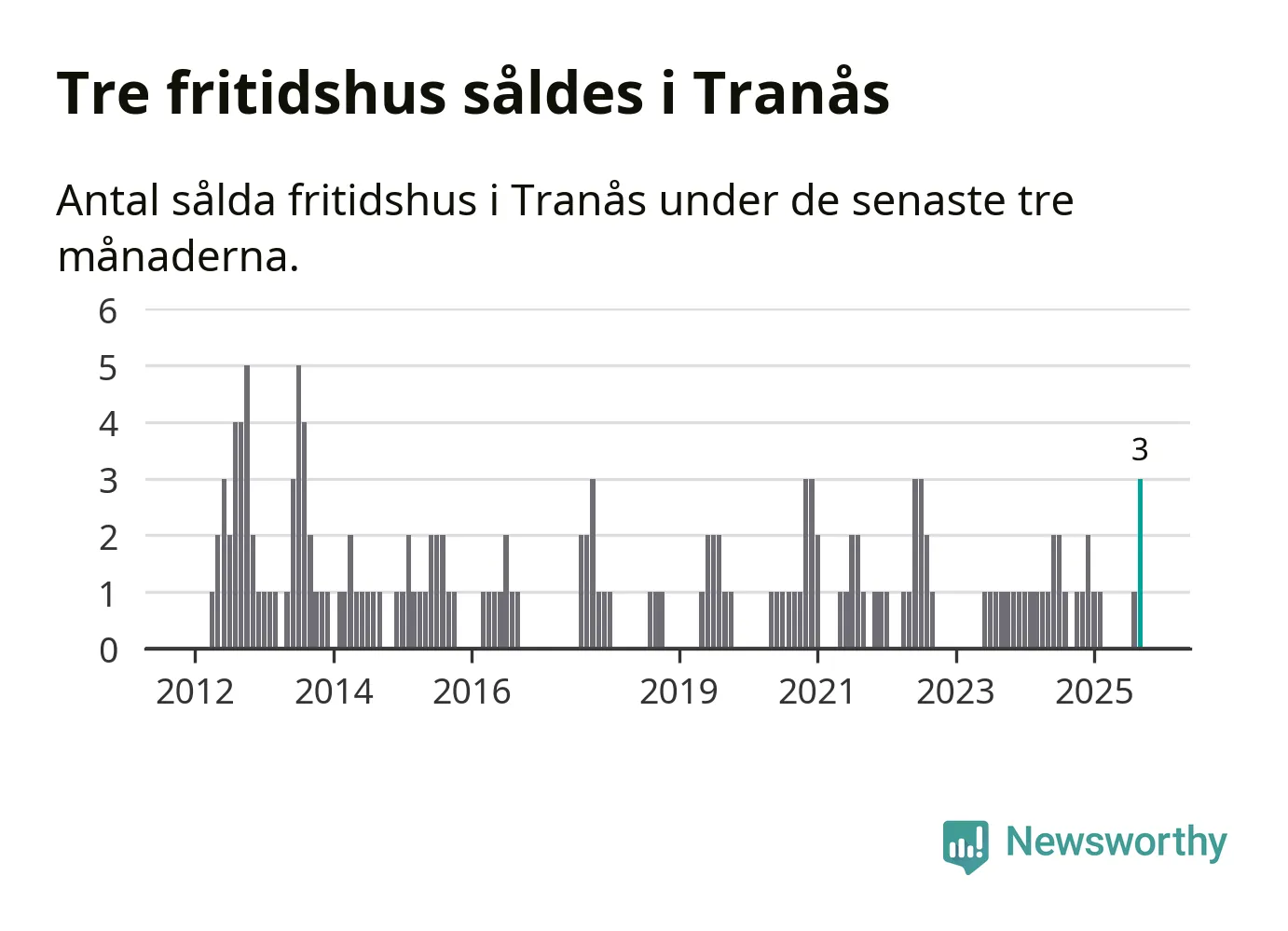 Mellan juli och september gjordes sammanlagt tre affärer med fritidshus i Tranås kommun.