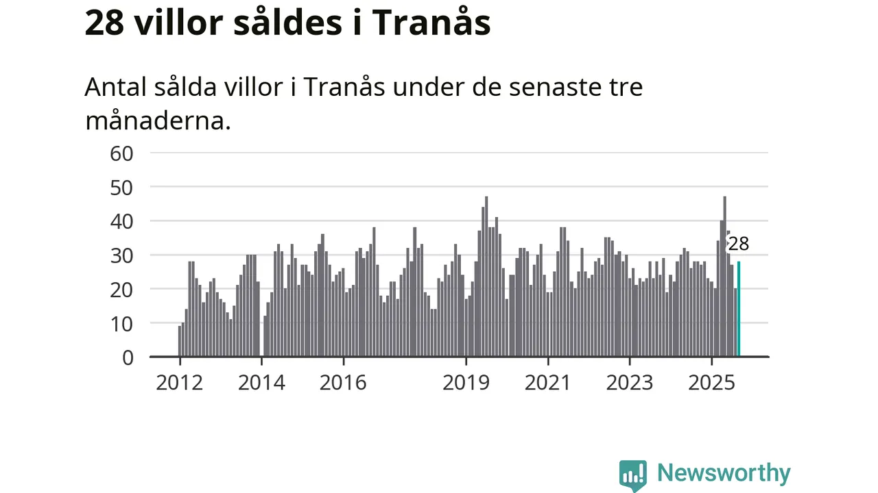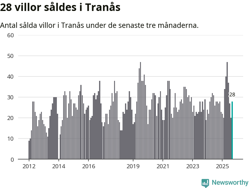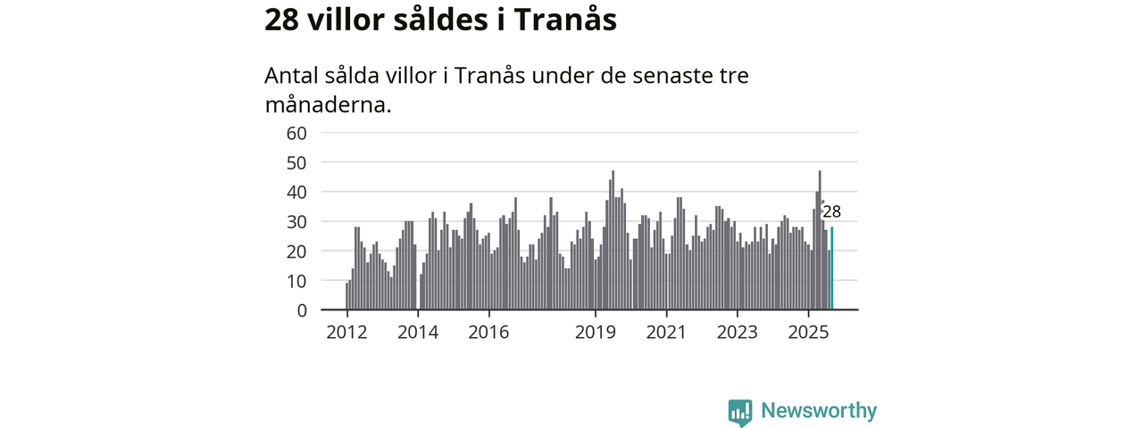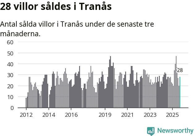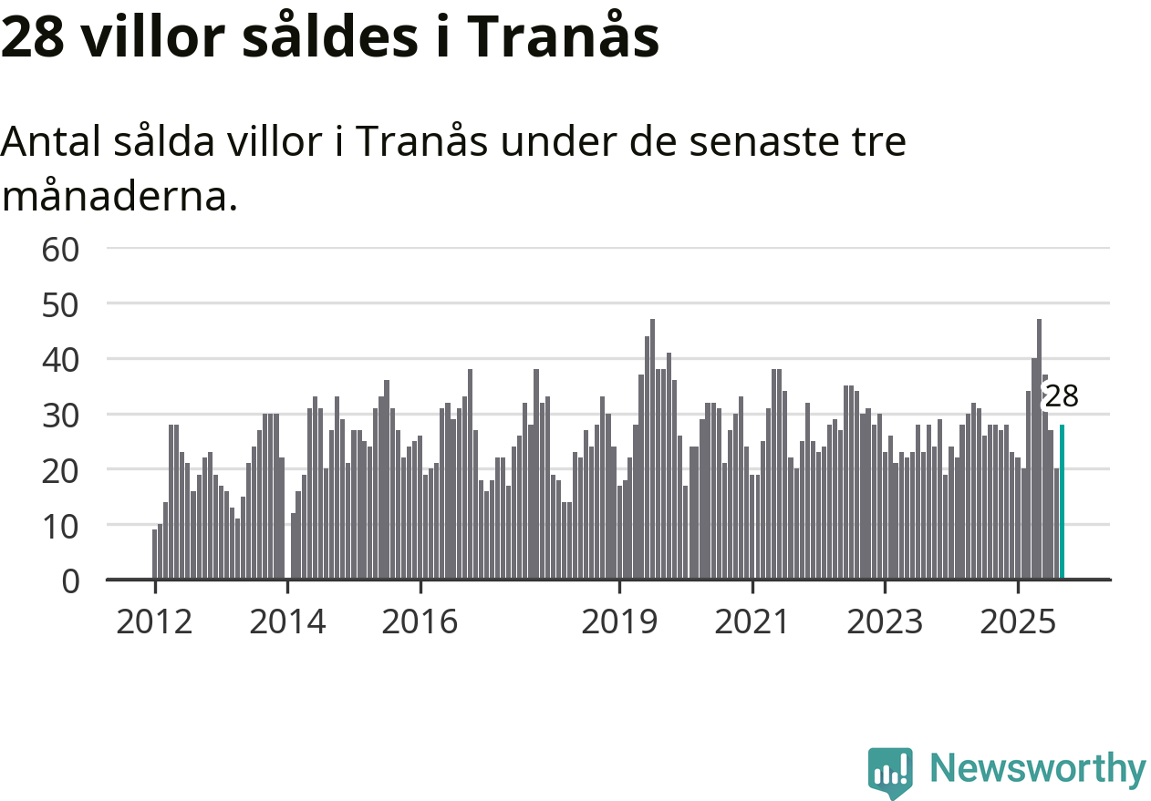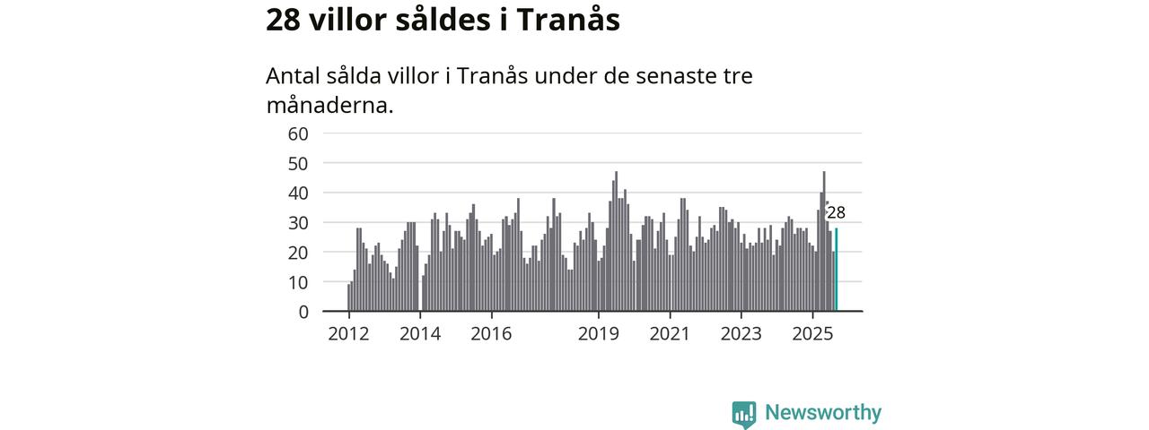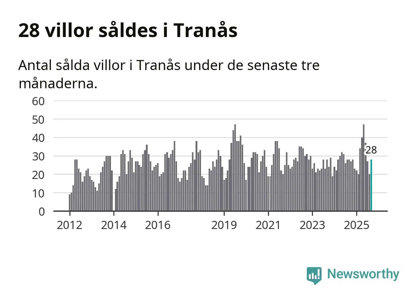Mellan juli och september gjordes sammanlagt 28 affärer med villor i Tranås kommun. Det är lika många affärer som vid motsvarande tid i fjol.