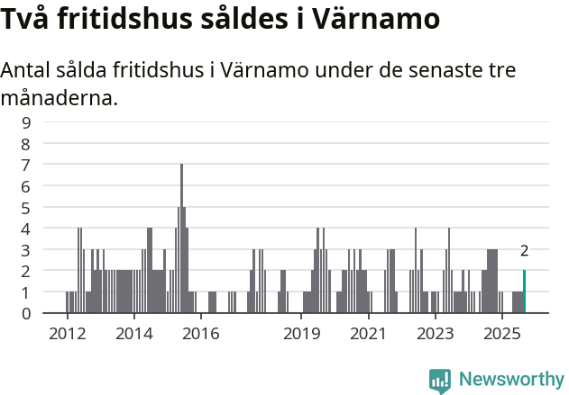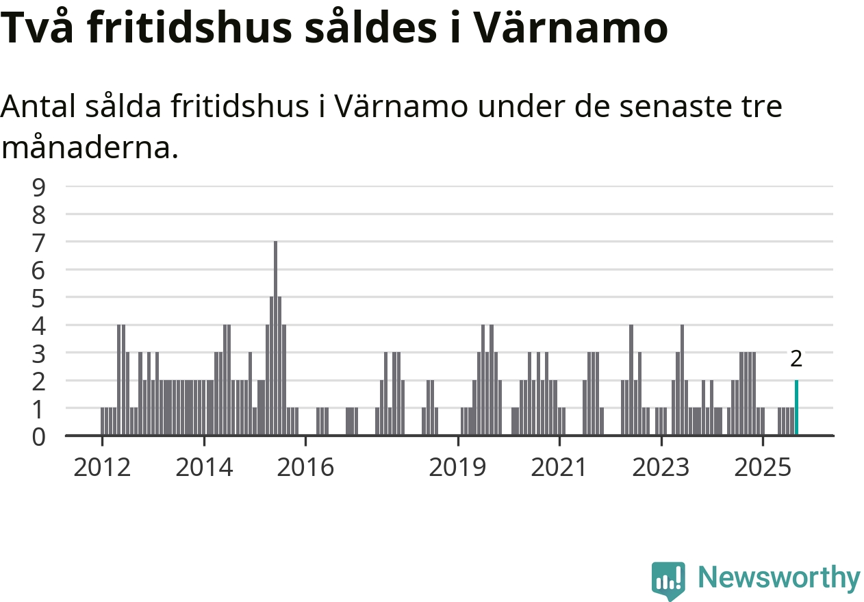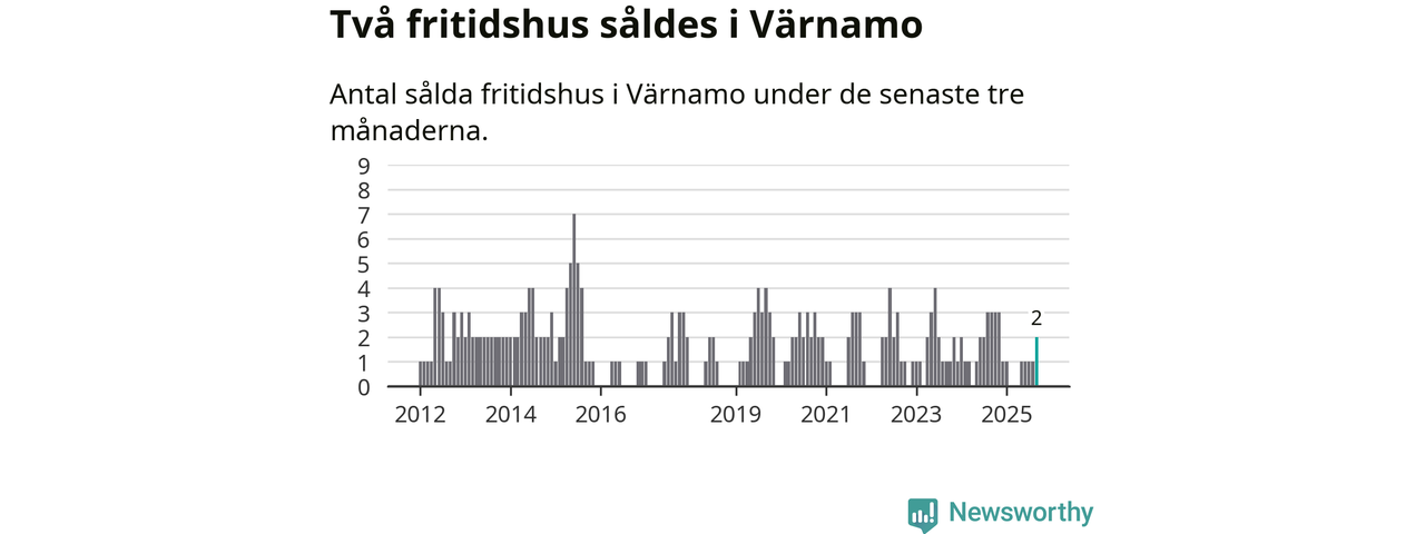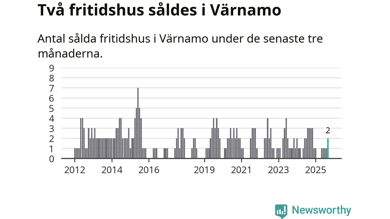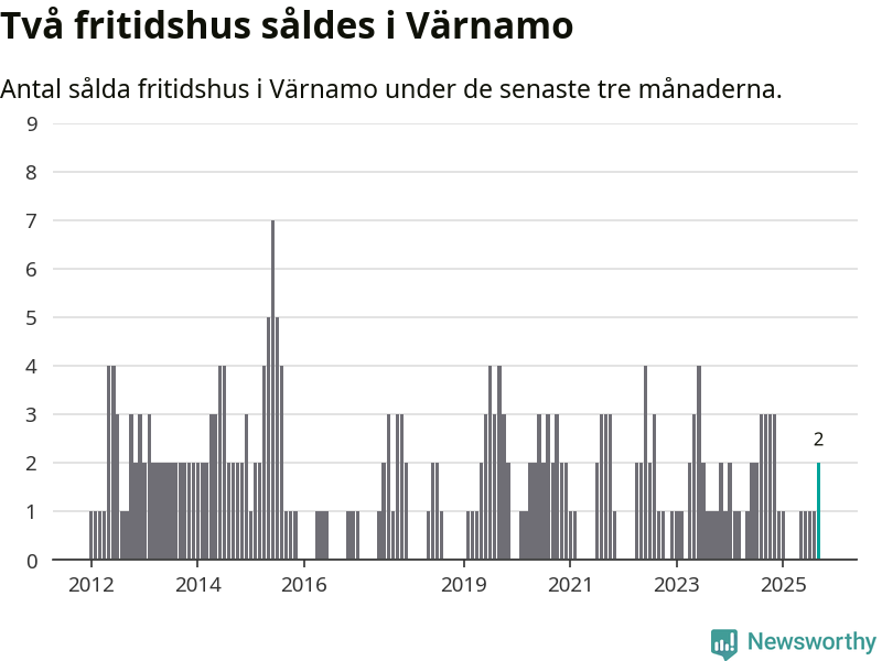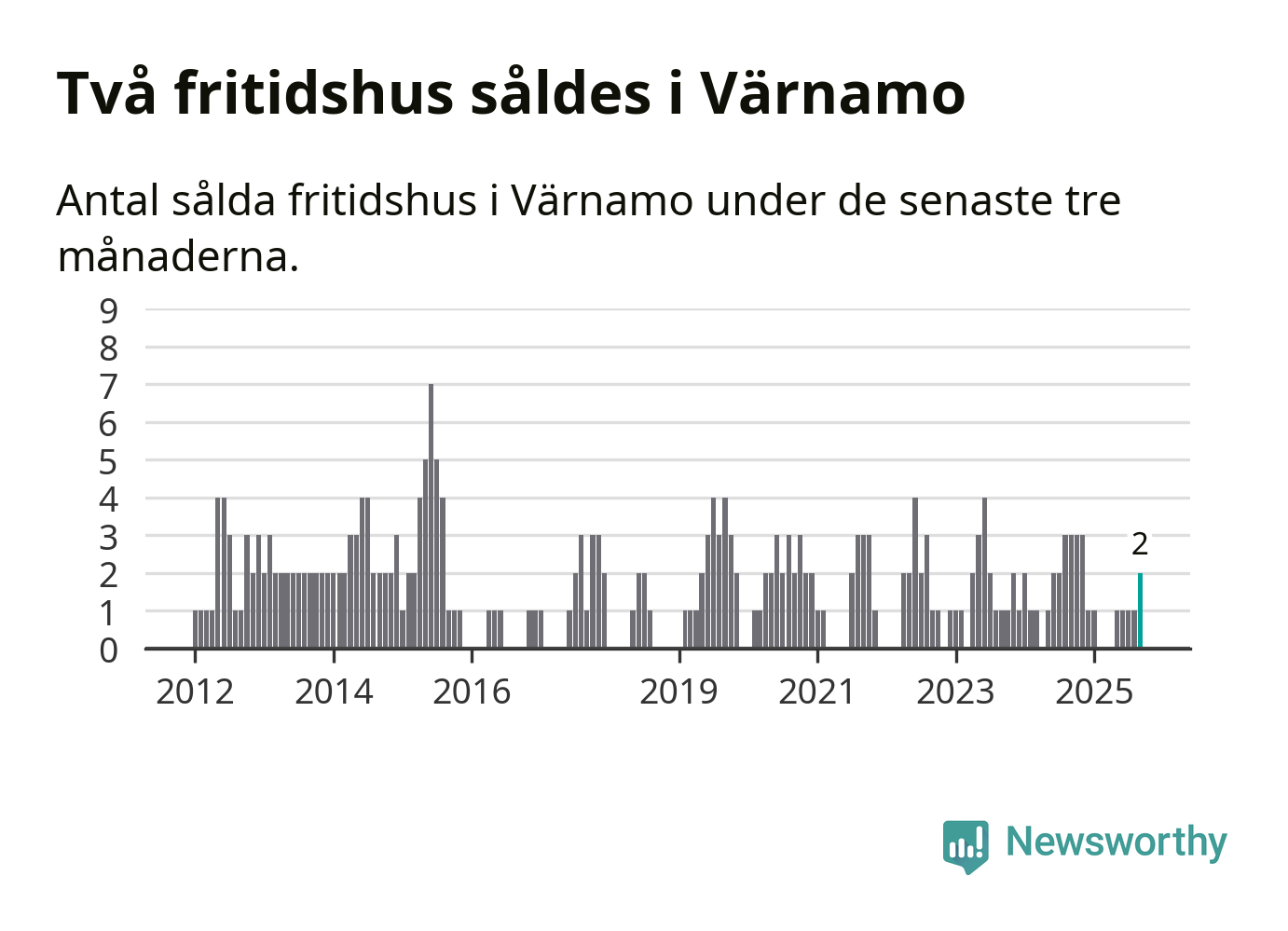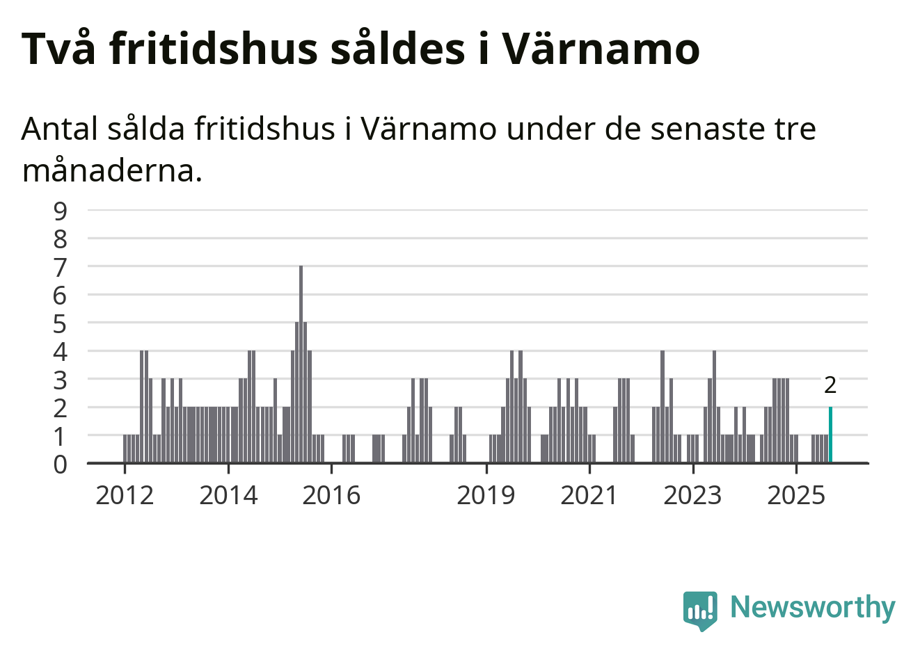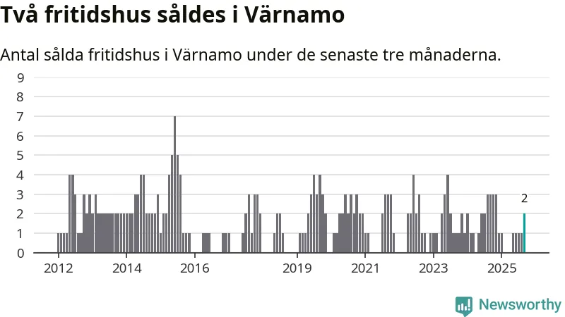 Mellan juli och september gjordes sammanlagt två affärer med fritidshus i Värnamo kommun. Det kan jämföras med tre vid motsvarande tid i fjol.