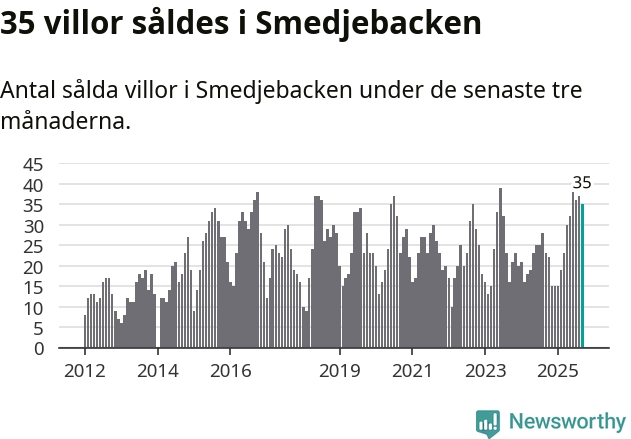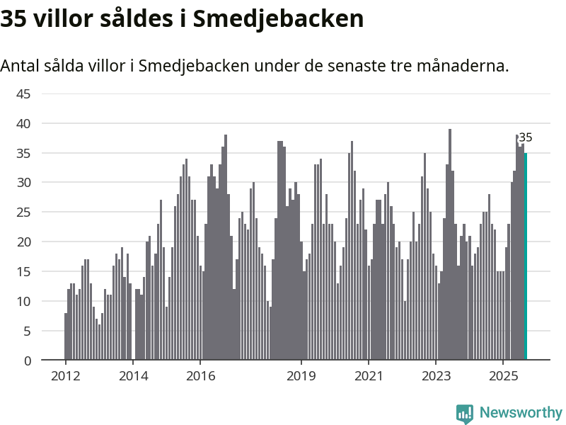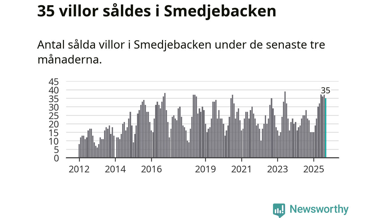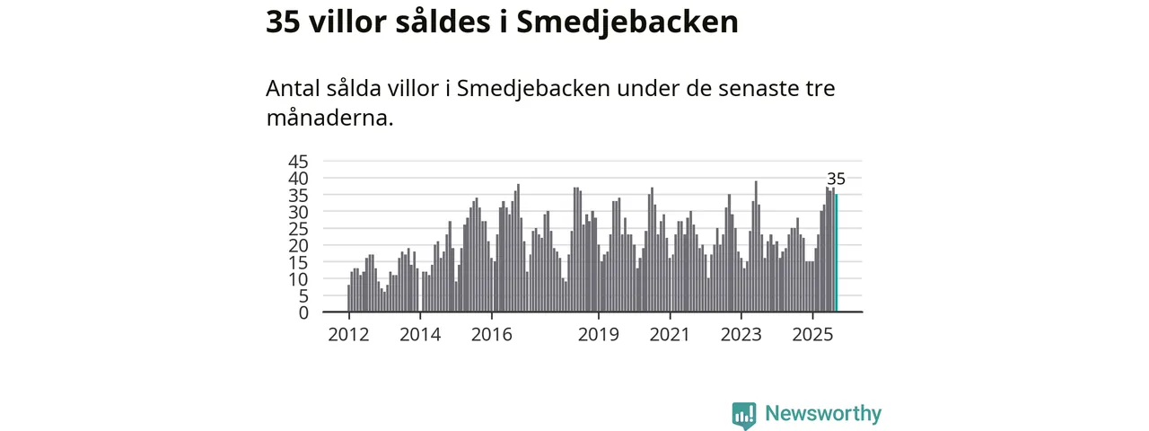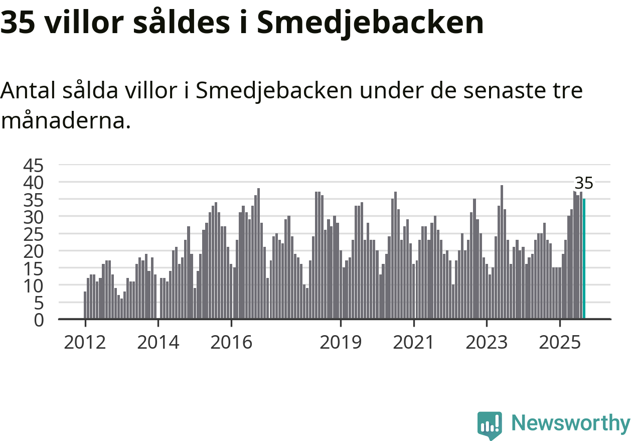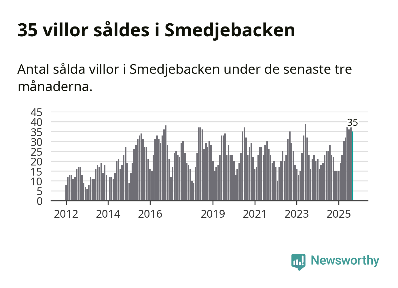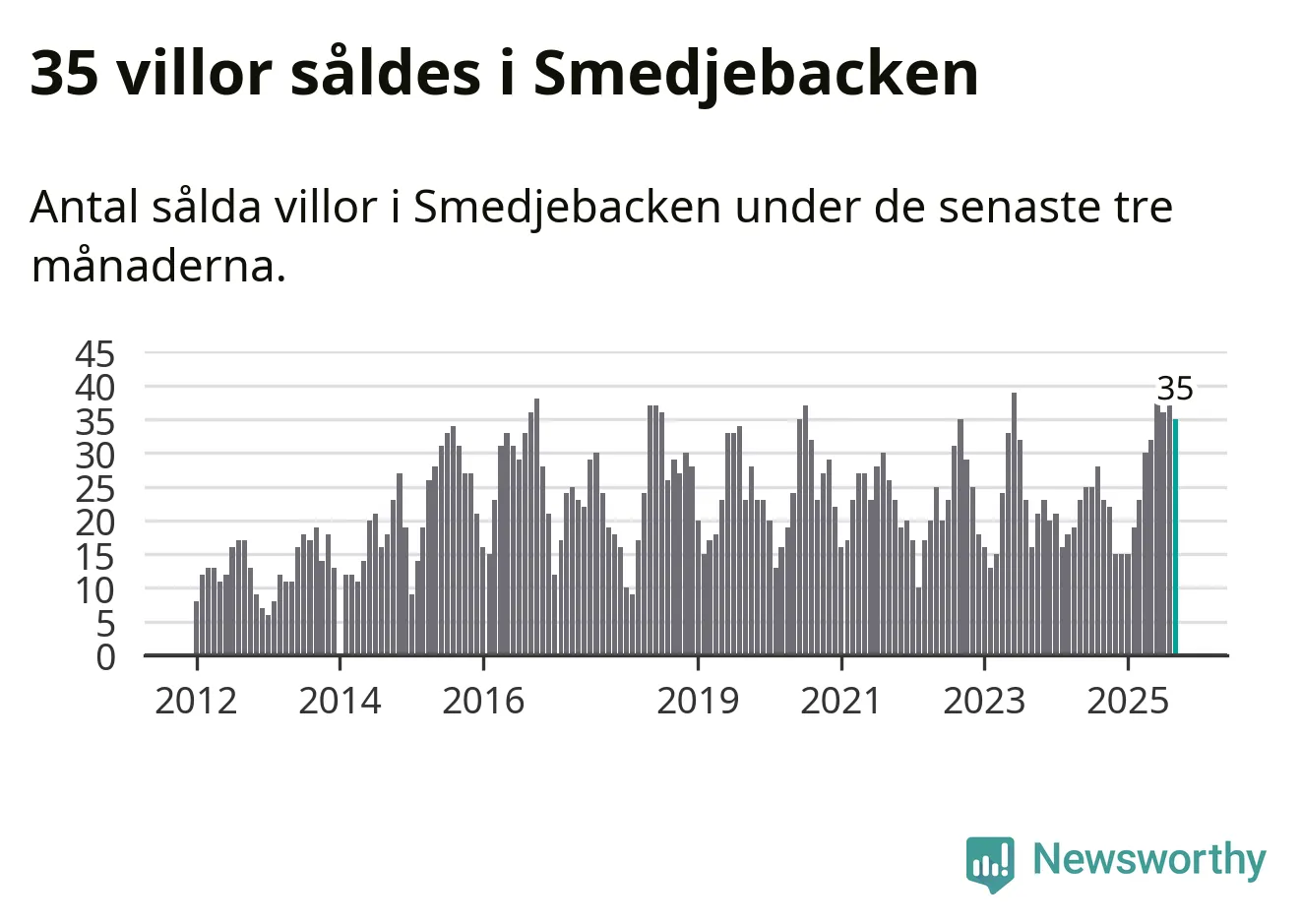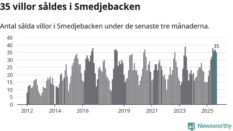 Mellan juli och september gjordes sammanlagt 35 affärer med villor i Smedjebackens kommun. Det kan jämföras med 23 vid motsvarande tid i fjol.