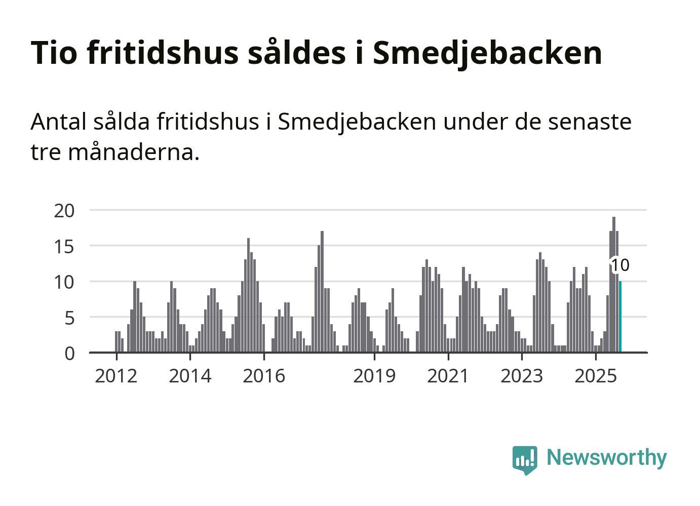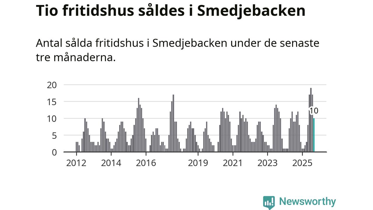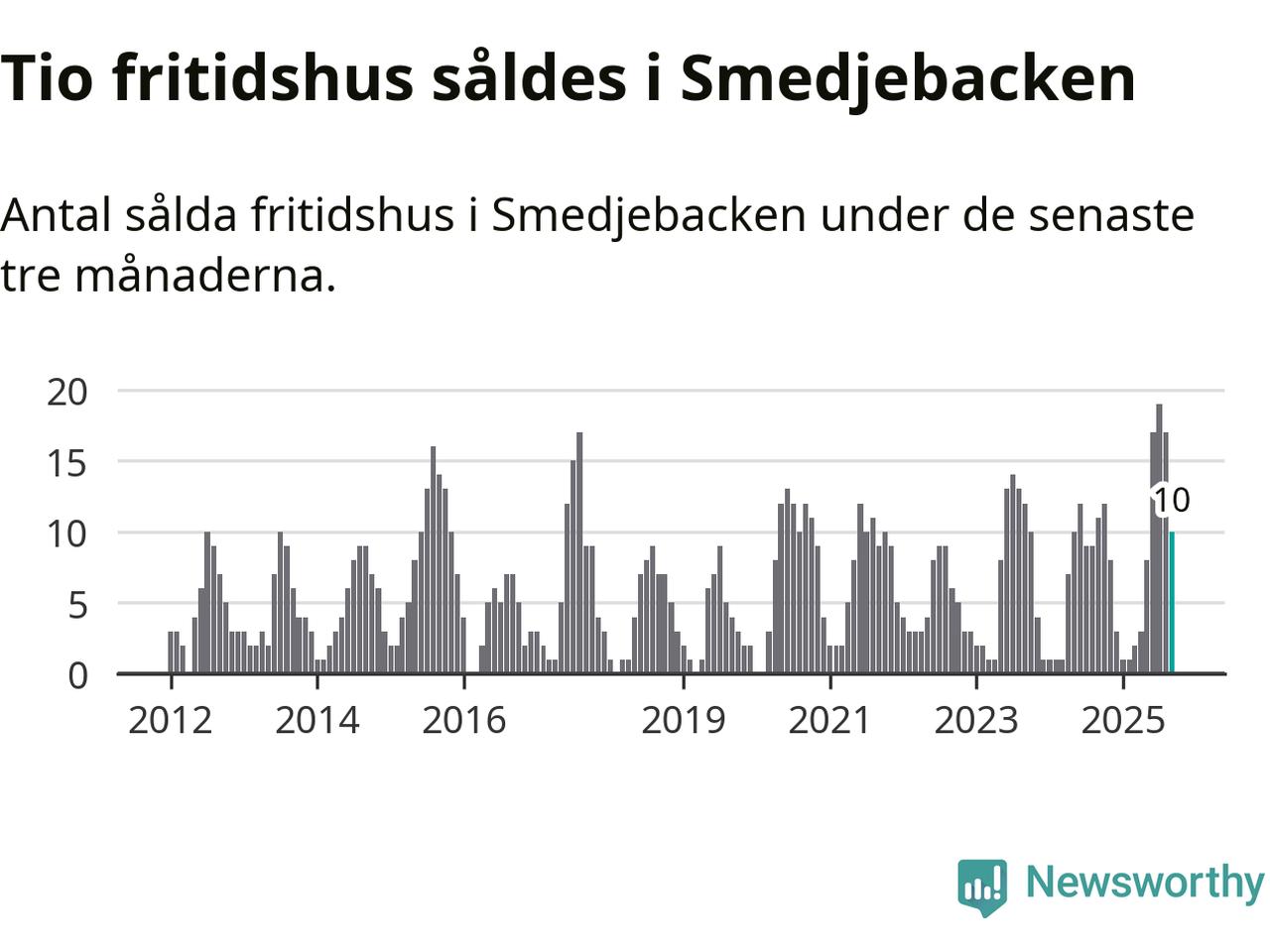 Mellan juli och september gjordes sammanlagt tio affärer med fritidshus i Smedjebackens kommun. Det kan jämföras med elva vid motsvarande tid i fjol.