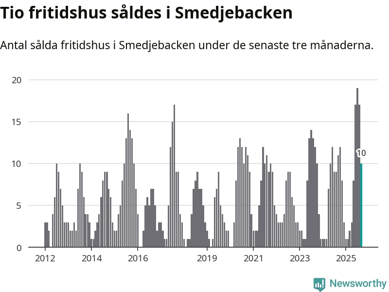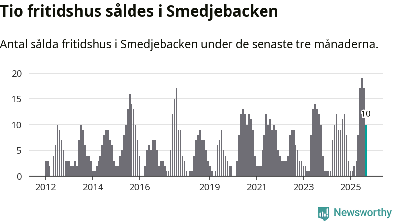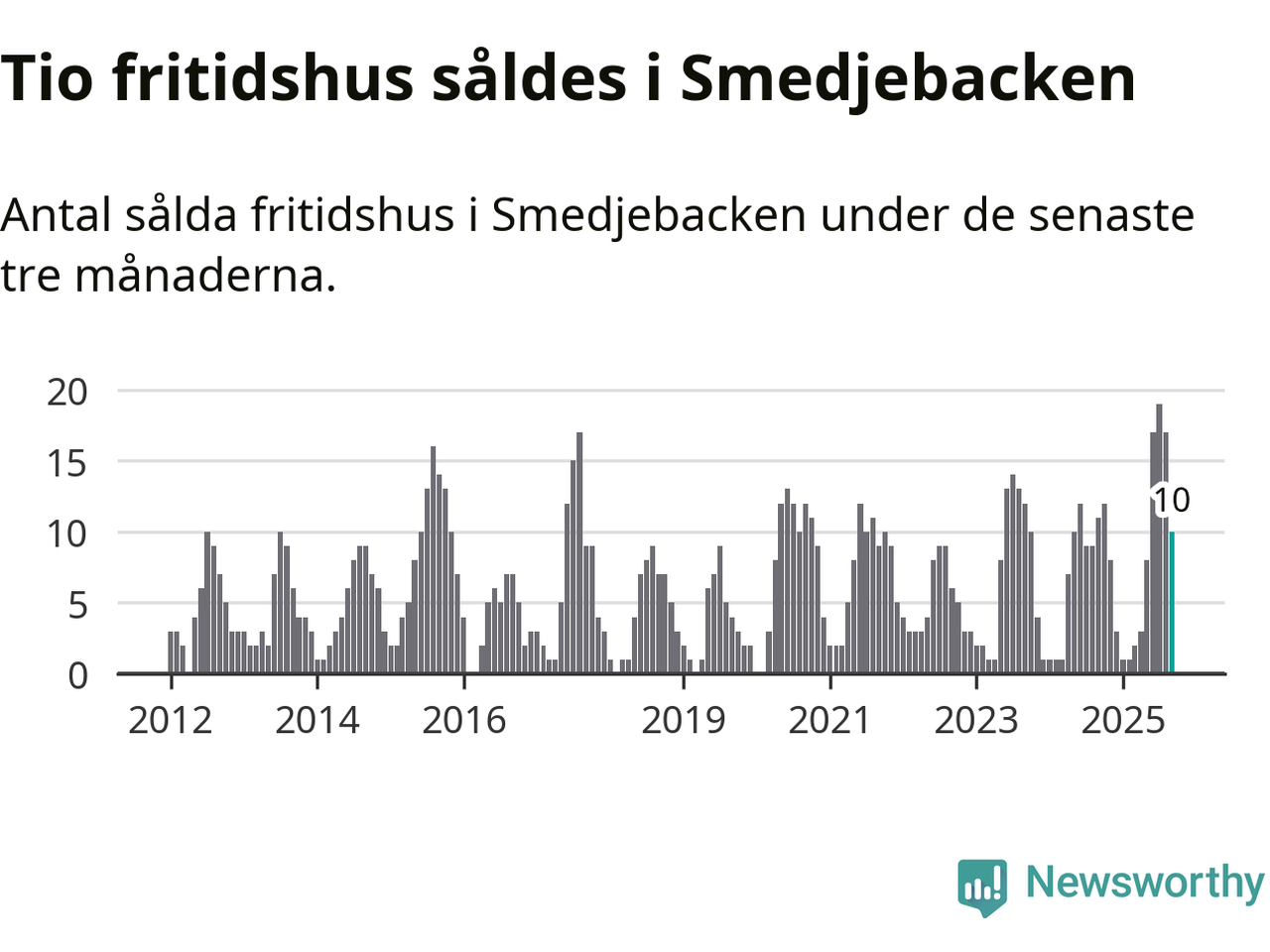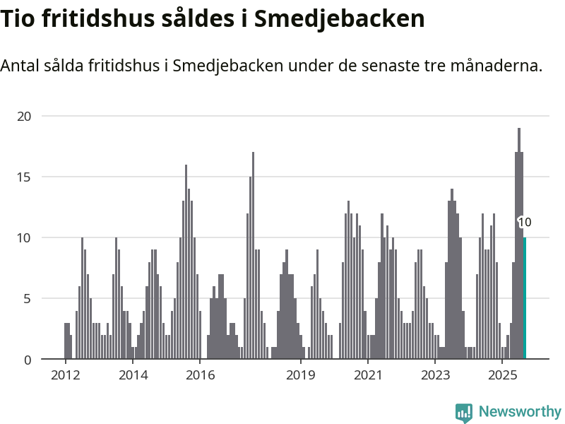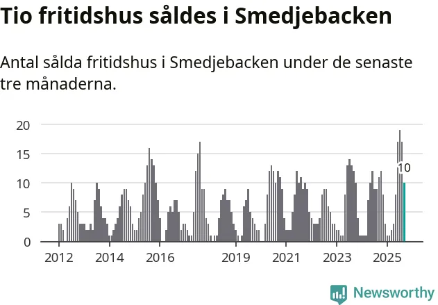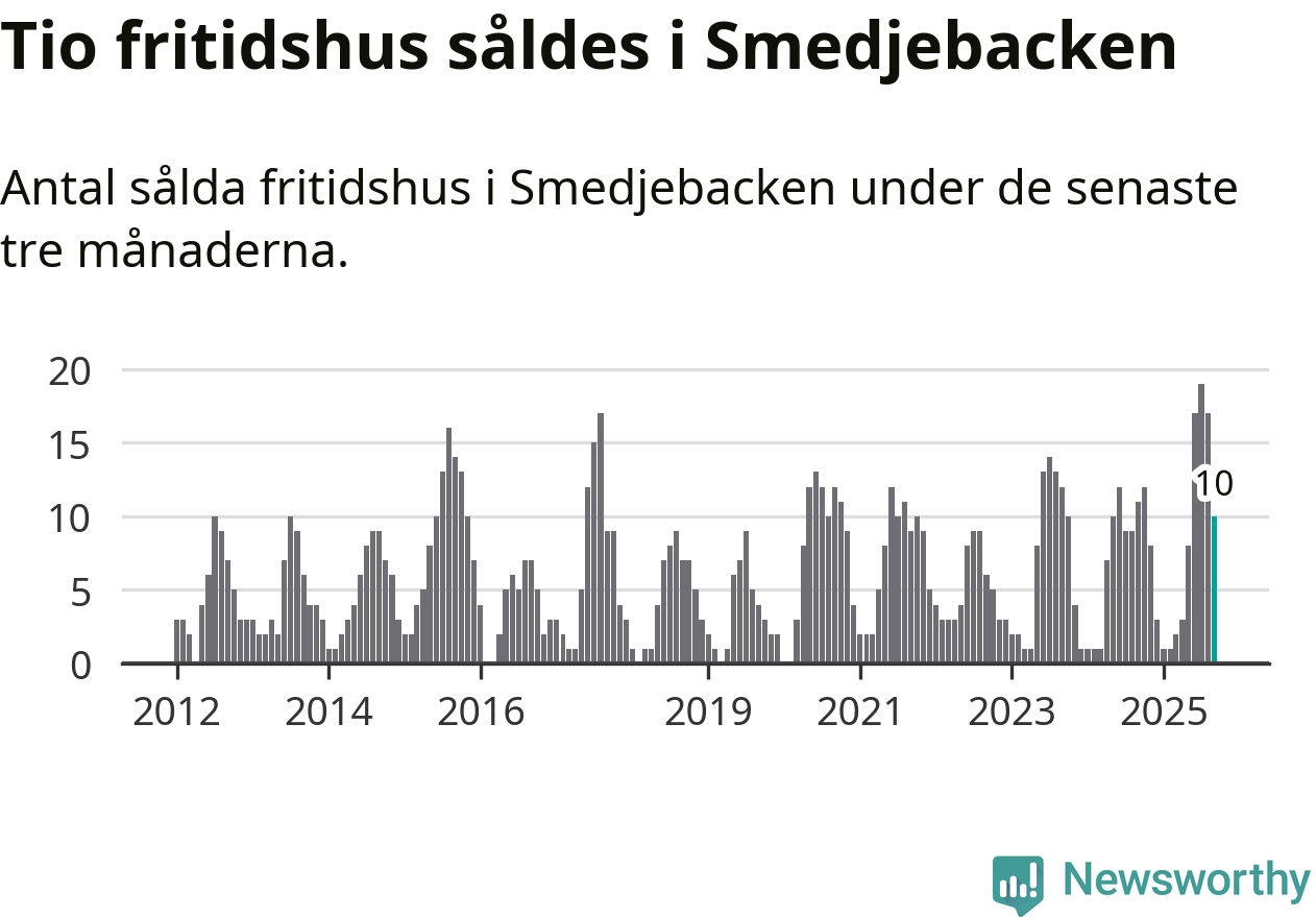 Mellan juli och september gjordes sammanlagt tio affärer med fritidshus i Smedjebackens kommun. Det kan jämföras med elva vid motsvarande tid i fjol.