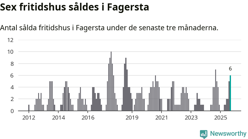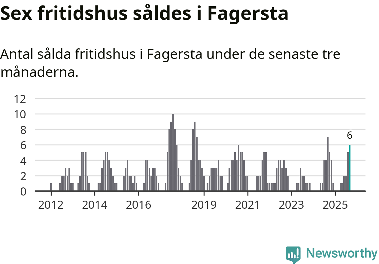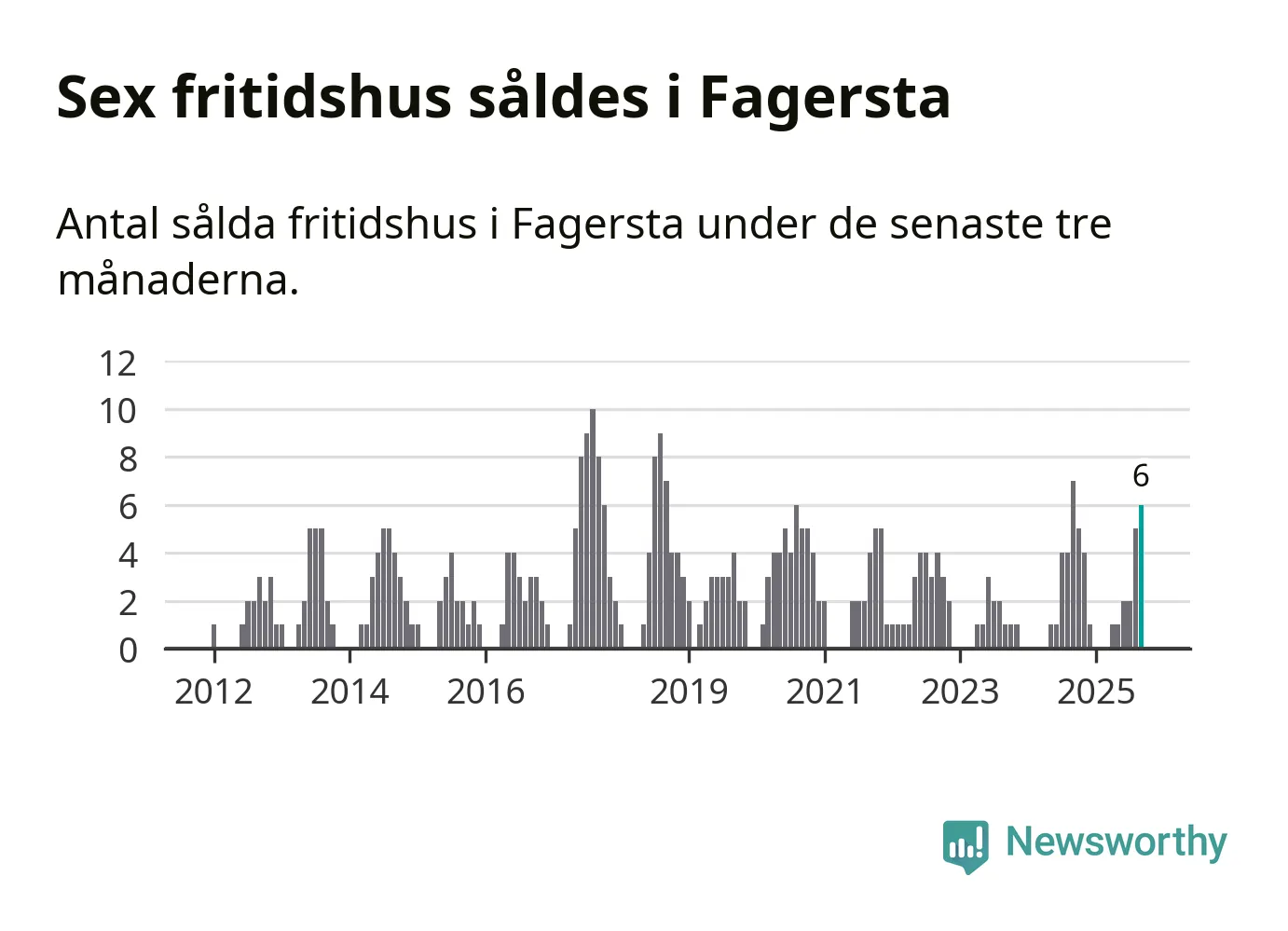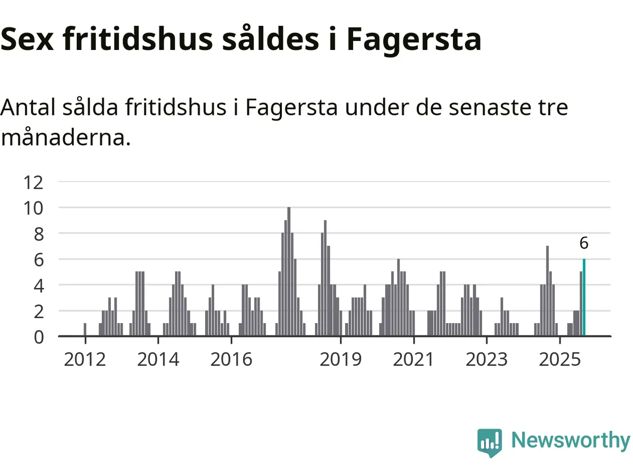 Mellan juli och september gjordes sammanlagt sex affärer med fritidshus i Fagersta kommun. Det kan jämföras med sju vid motsvarande tid i fjol.
