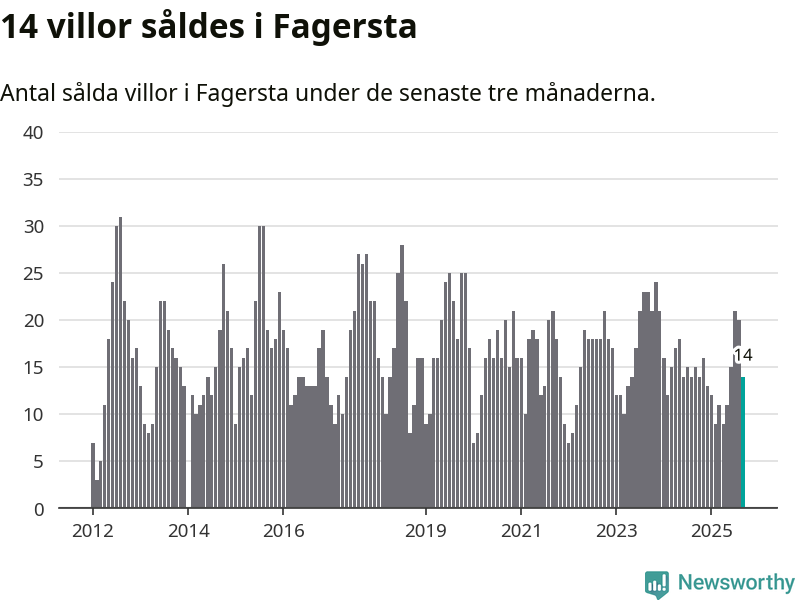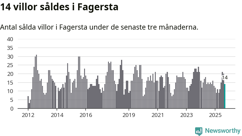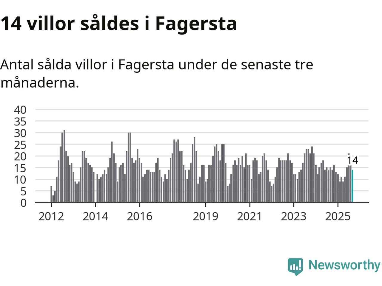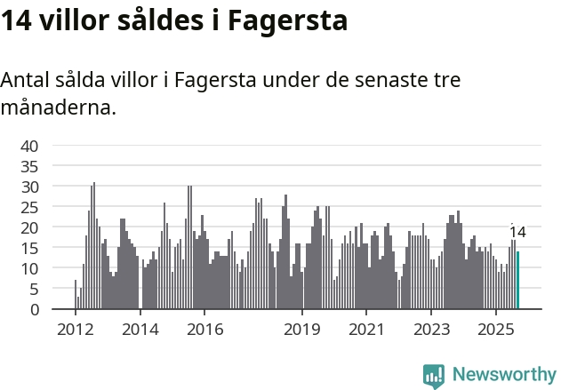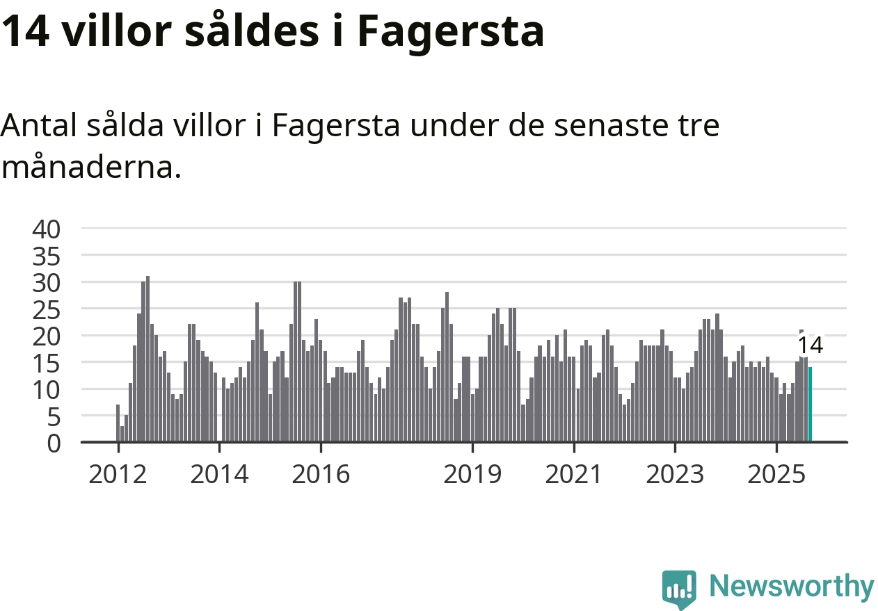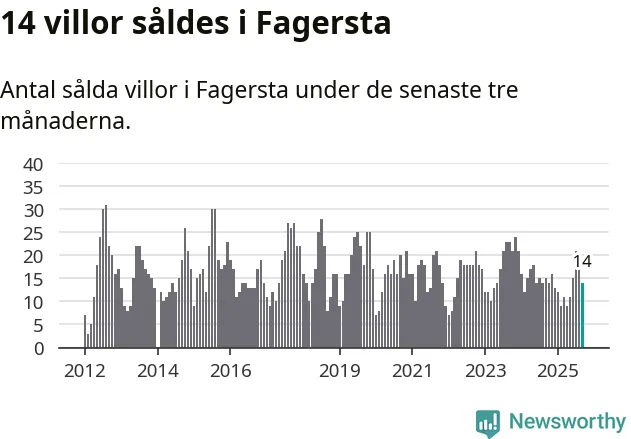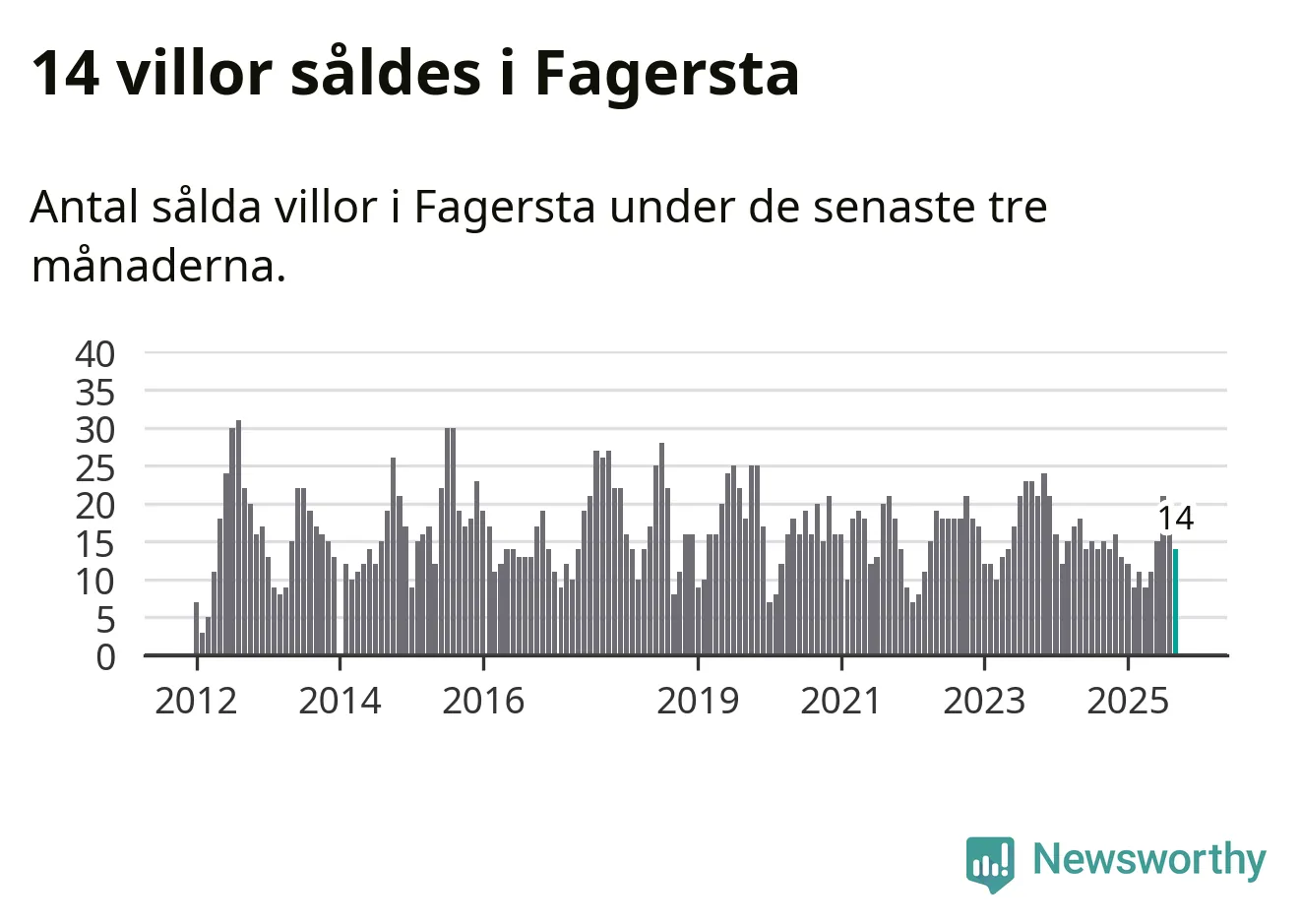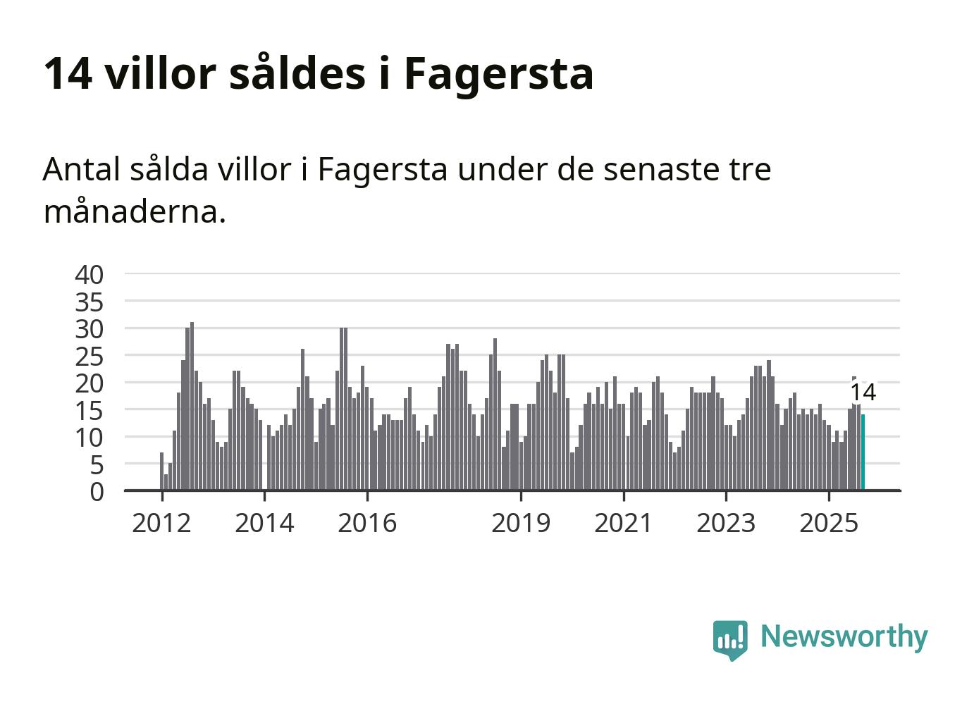 Mellan juli och september gjordes sammanlagt 14 affärer med villor i Fagersta kommun. Det kan jämföras med 15 vid motsvarande tid i fjol.