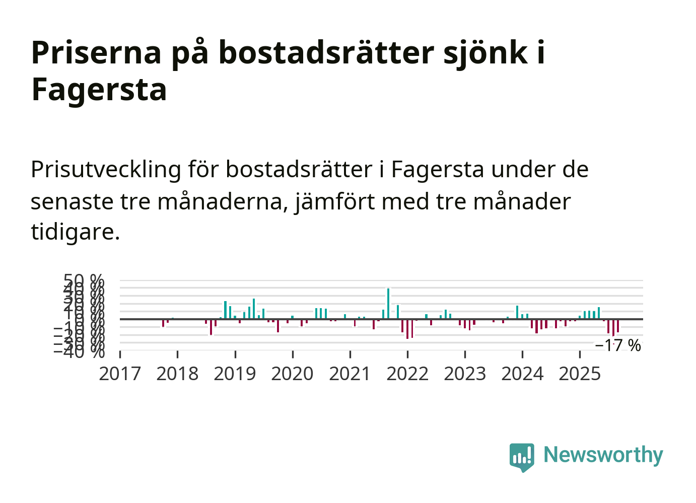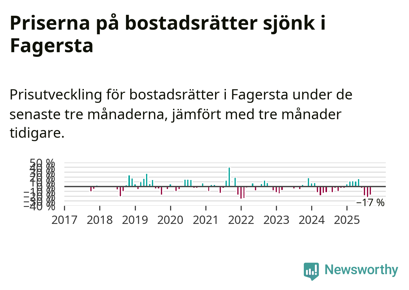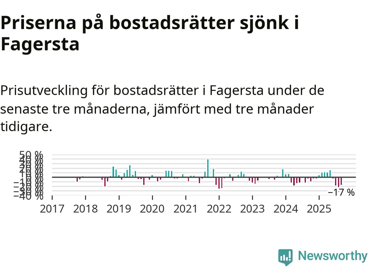 Priserna på bostadsrätter har gått ner i Fagersta kommun. Medelpriset på försäljningarna under de senaste tre månaderna visar på en nedgång med 17 procent.