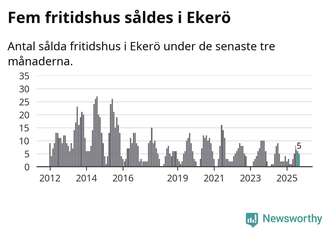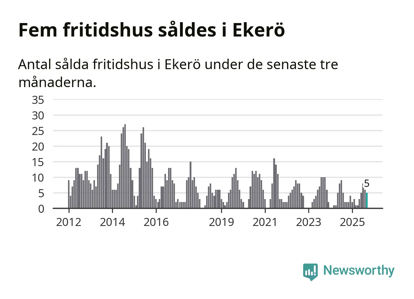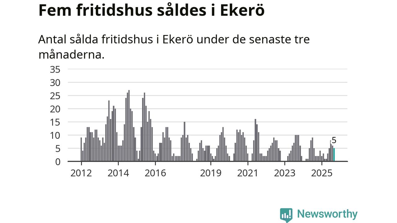 Mellan juli och september gjordes sammanlagt fem affärer med fritidshus i Ekerö kommun. Det kan jämföras med två vid motsvarande tid i fjol.