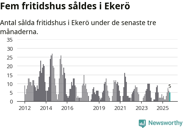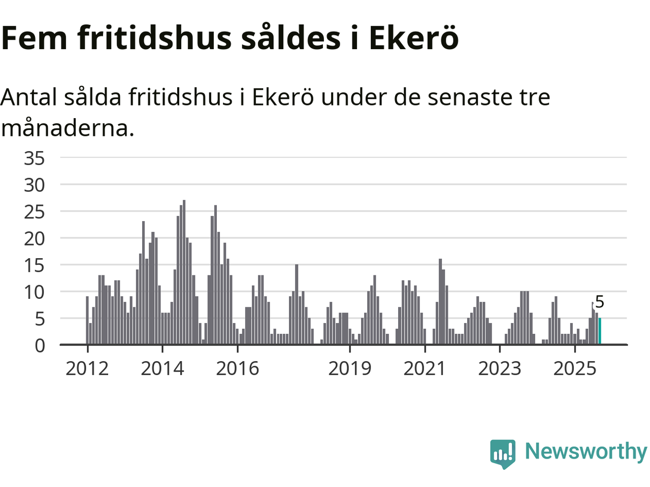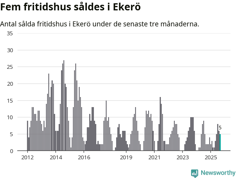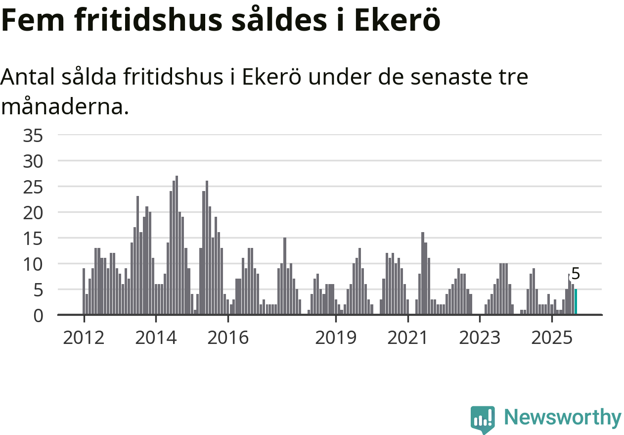 Mellan juli och september gjordes sammanlagt fem affärer med fritidshus i Ekerö kommun. Det kan jämföras med två vid motsvarande tid i fjol.