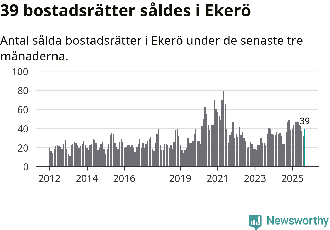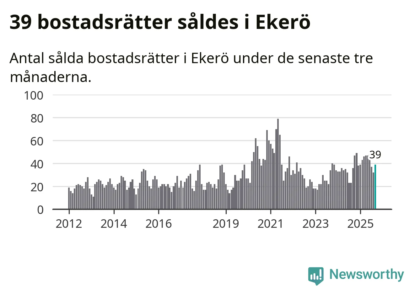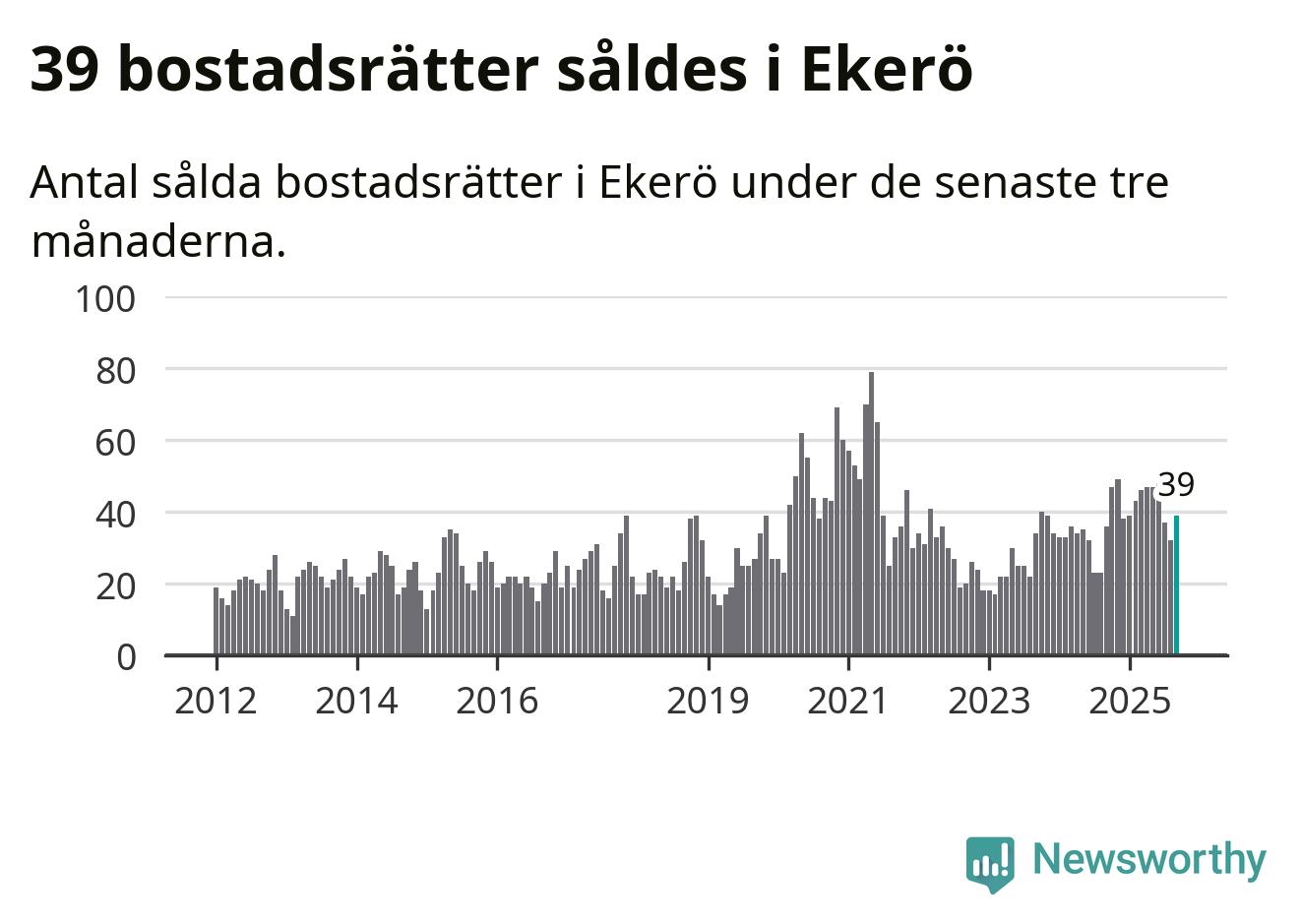 Mellan juli och september gjordes sammanlagt 39 affärer med bostadsrätter i Ekerö kommun. Det kan jämföras med 36 vid motsvarande tid i fjol.