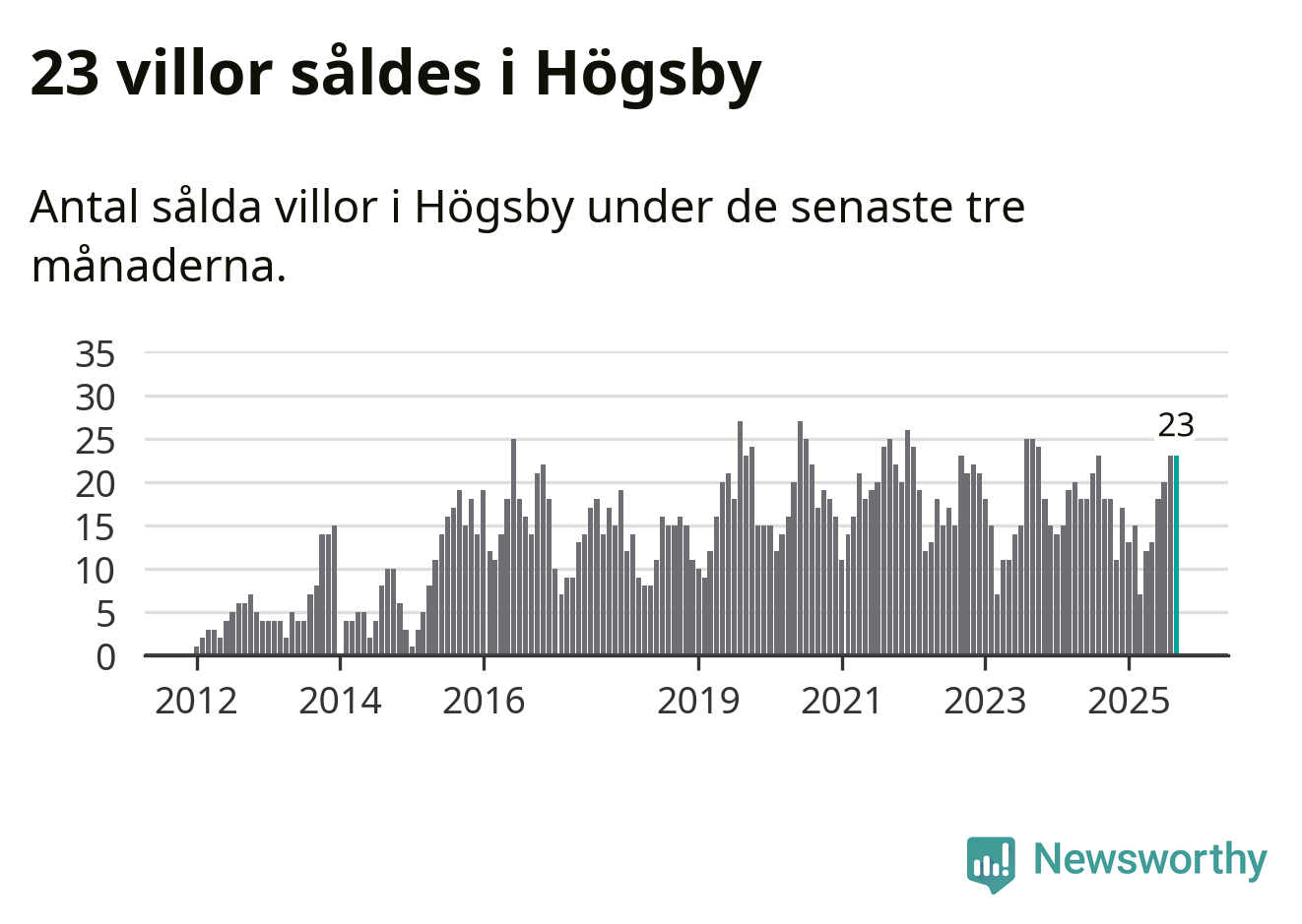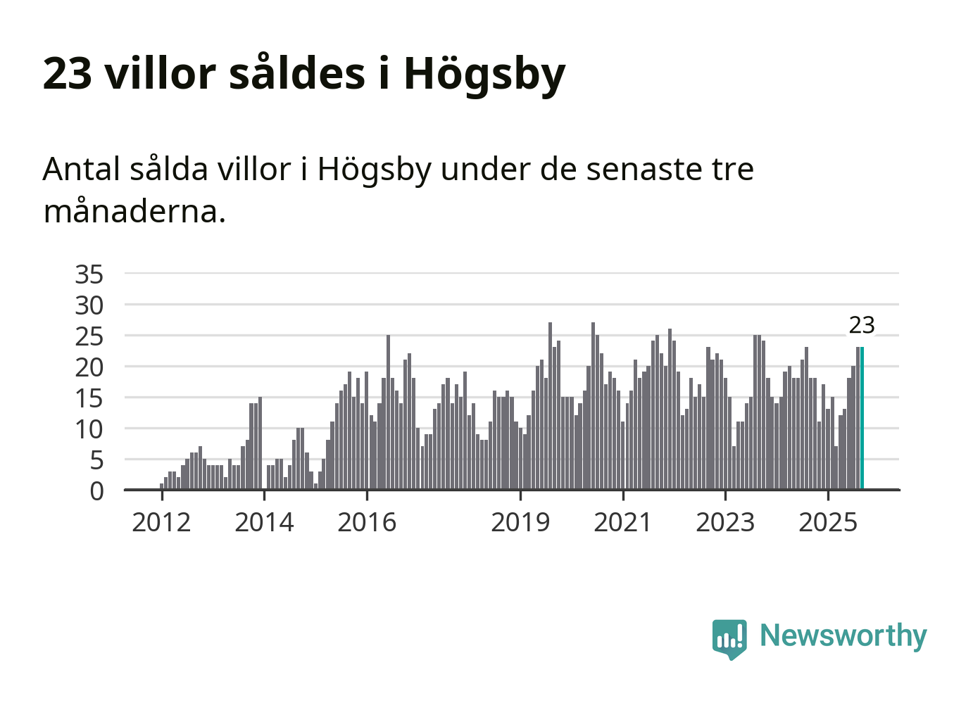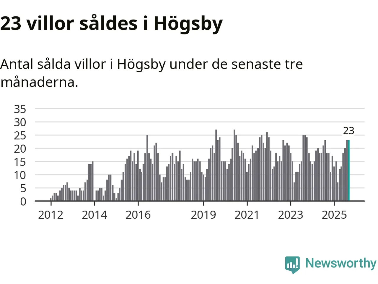Mellan juli och september gjordes sammanlagt 23 affärer med villor i Högsby kommun. Det kan jämföras med 18 vid motsvarande tid i fjol.