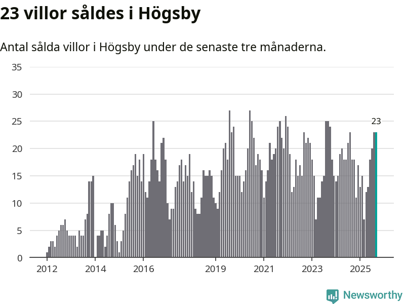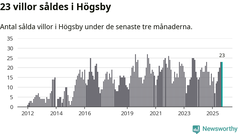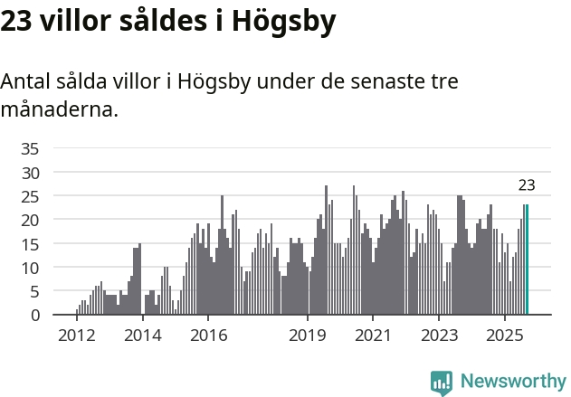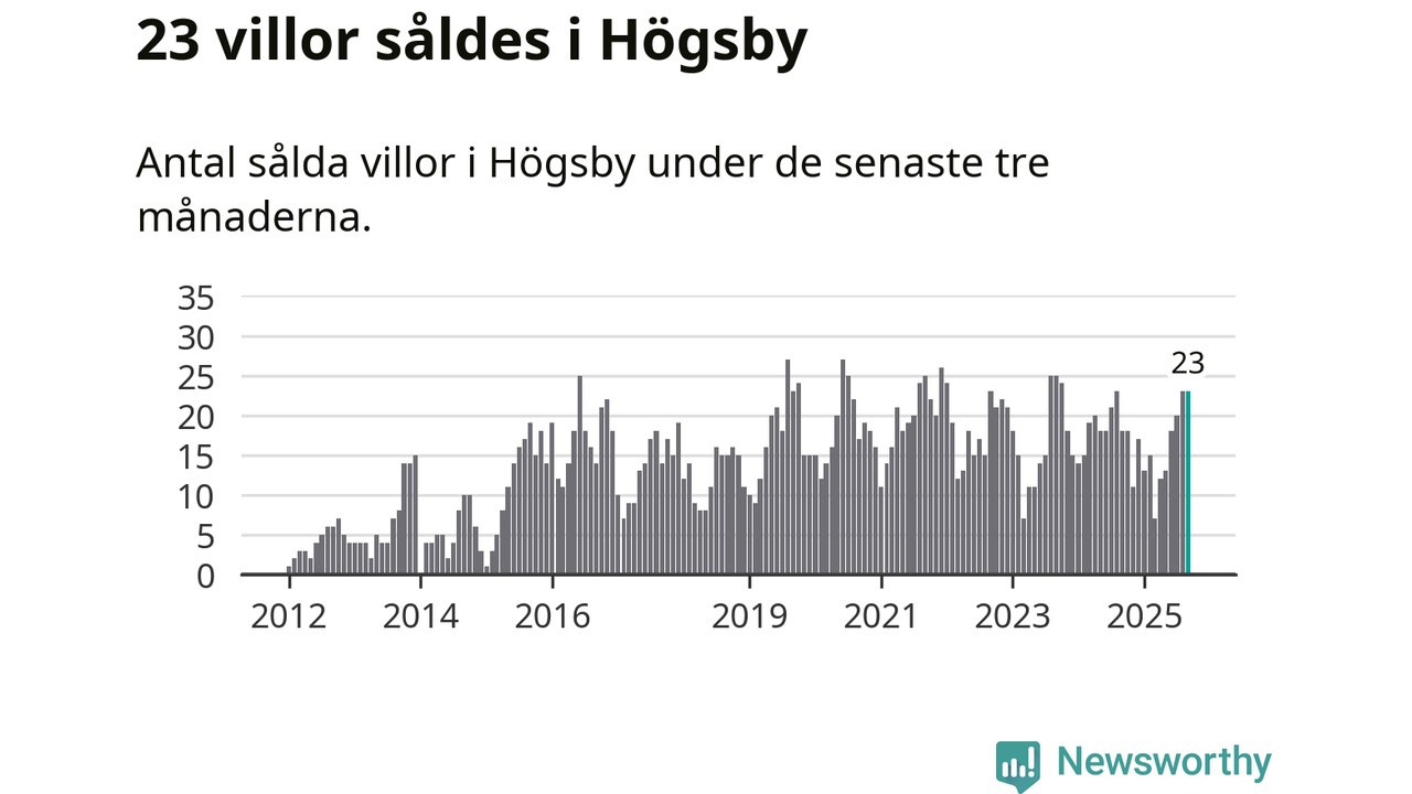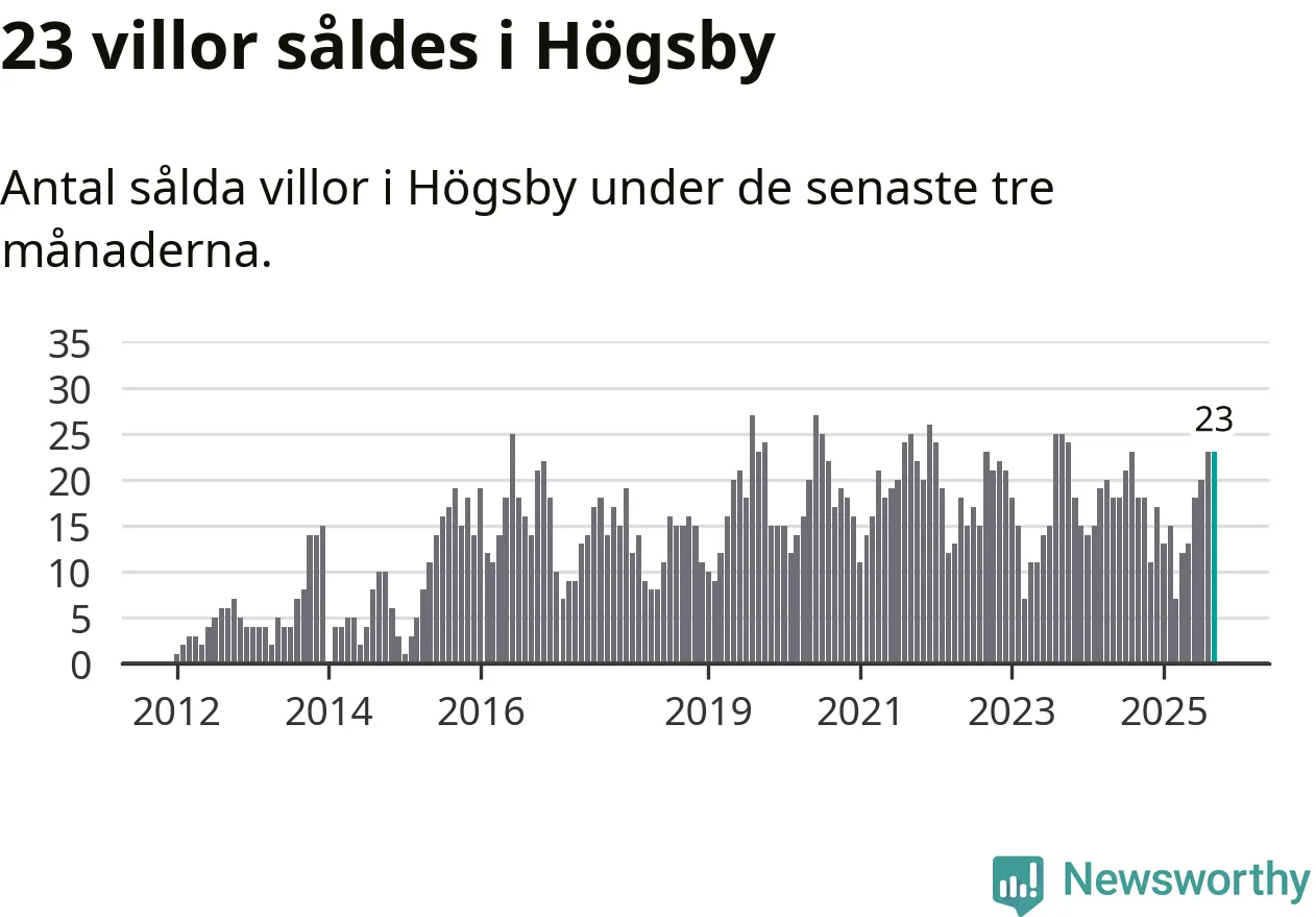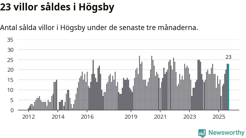 Mellan juli och september gjordes sammanlagt 23 affärer med villor i Högsby kommun. Det kan jämföras med 18 vid motsvarande tid i fjol.