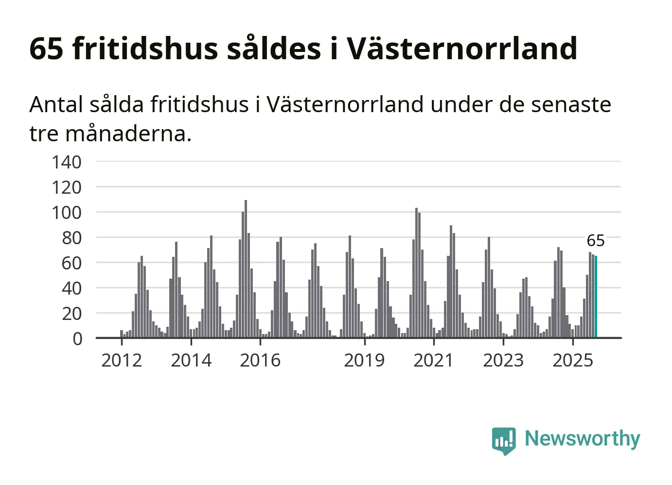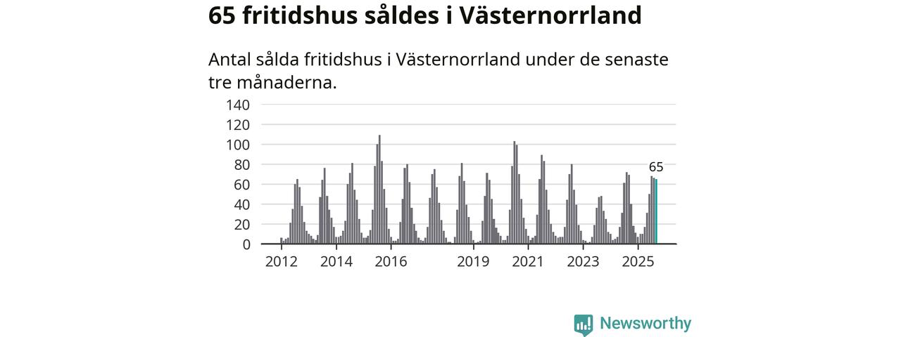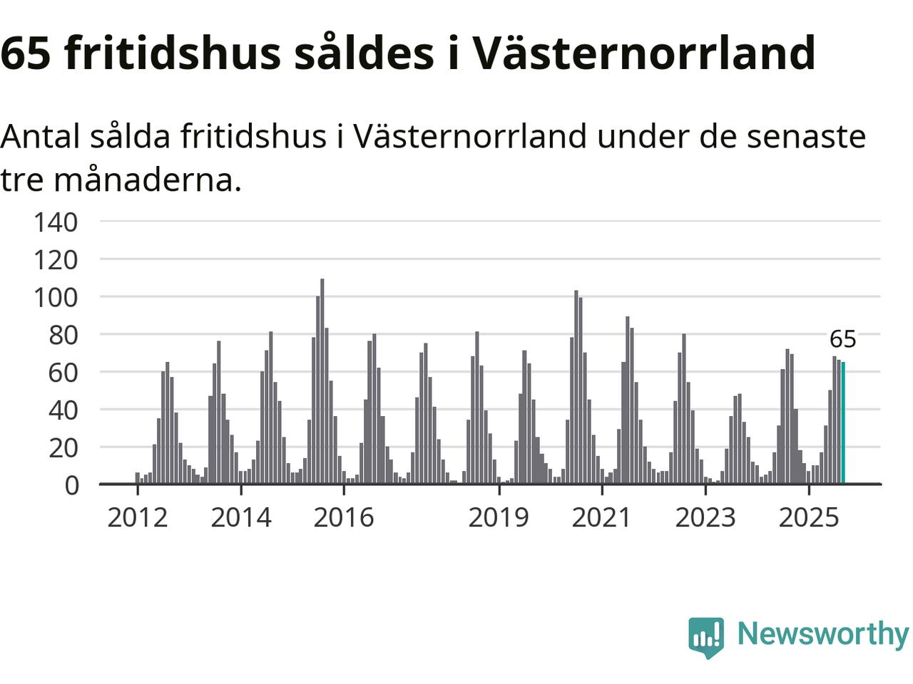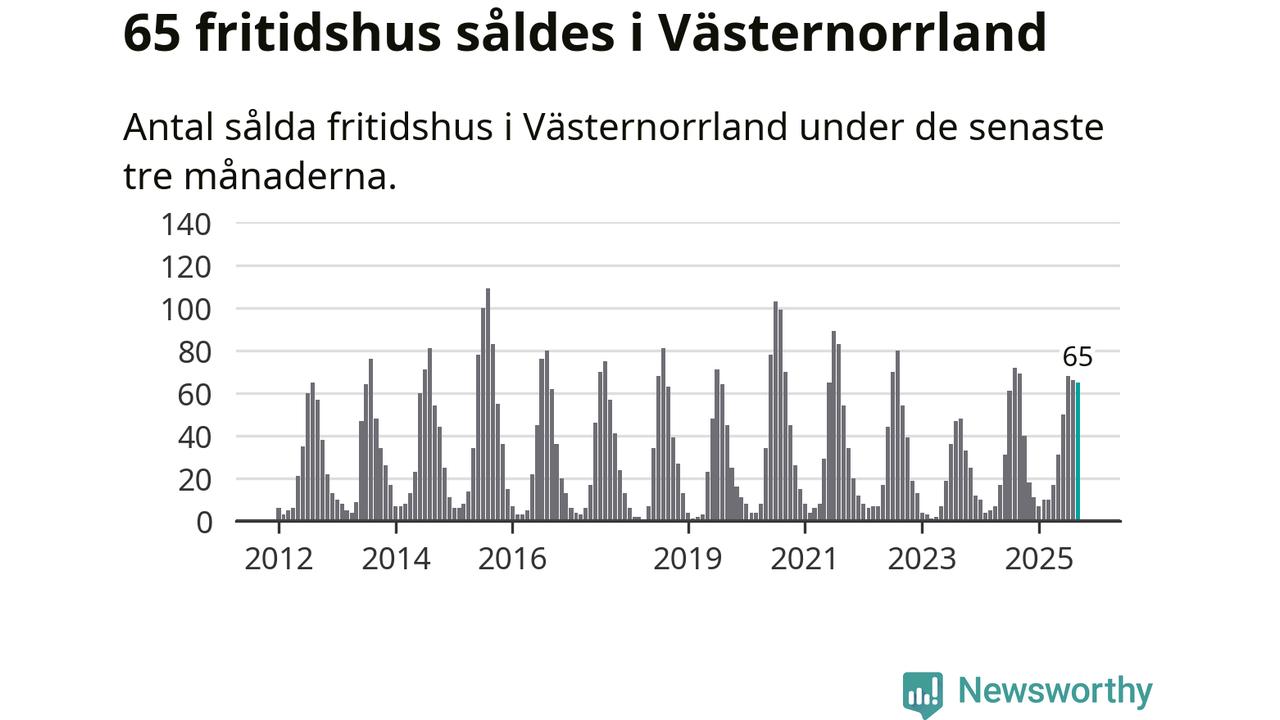 Sammanlagt såldes 65 fritidshus i Västernorrlands län mellan juli och september till ett genomsnittligt pris på 1,4 miljoner kronor. I fjol gjordes 69 affärer vid den här tiden på året.