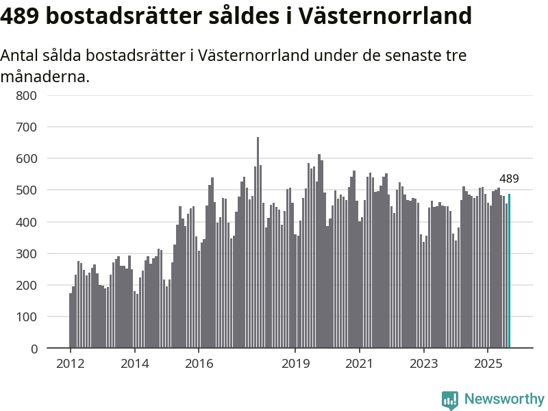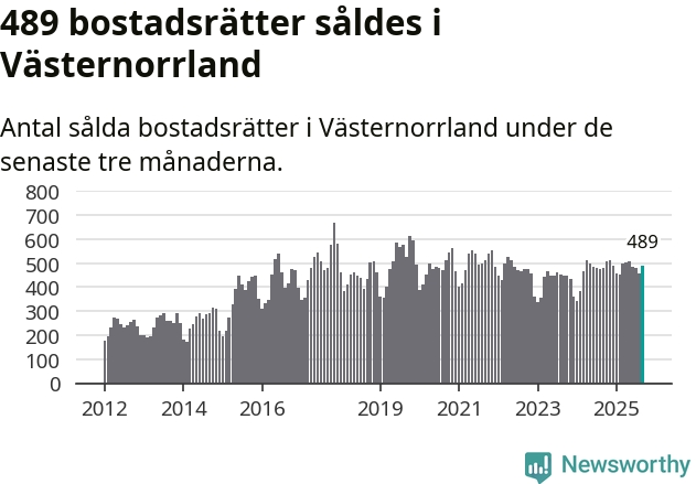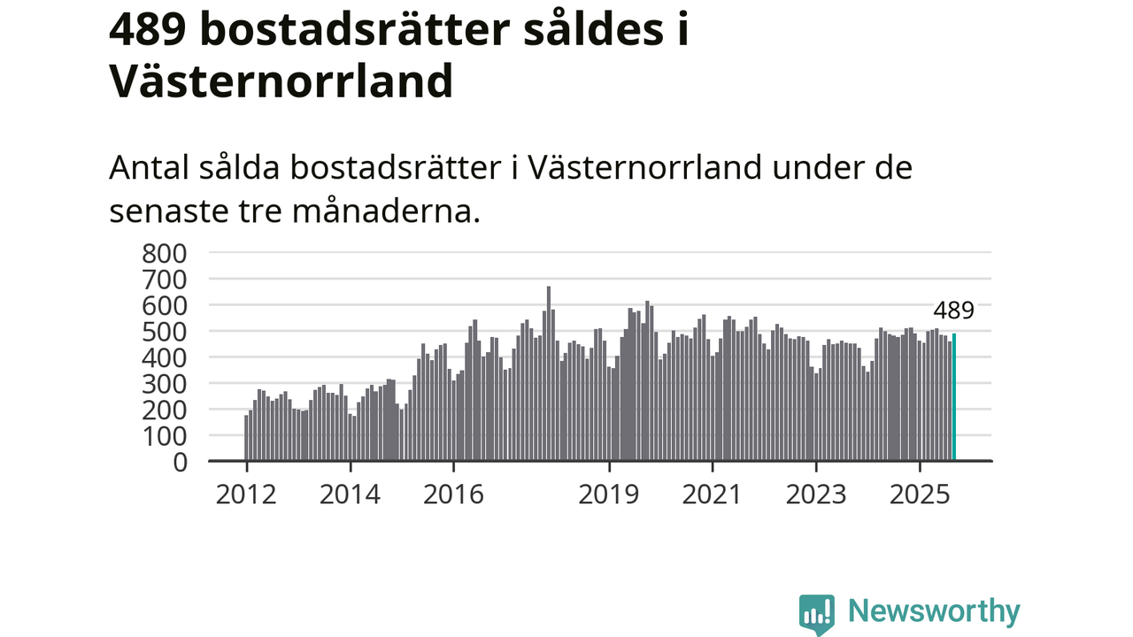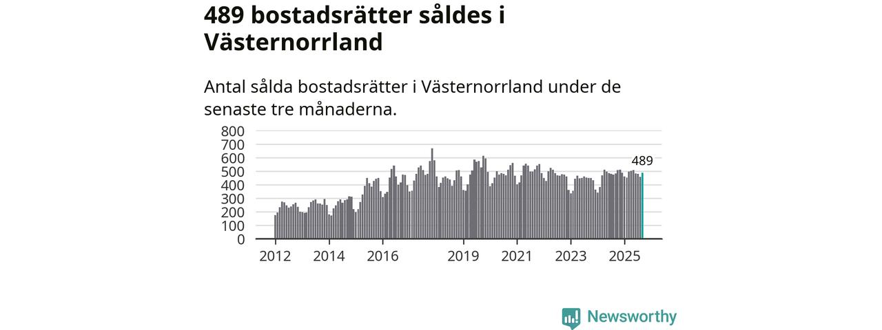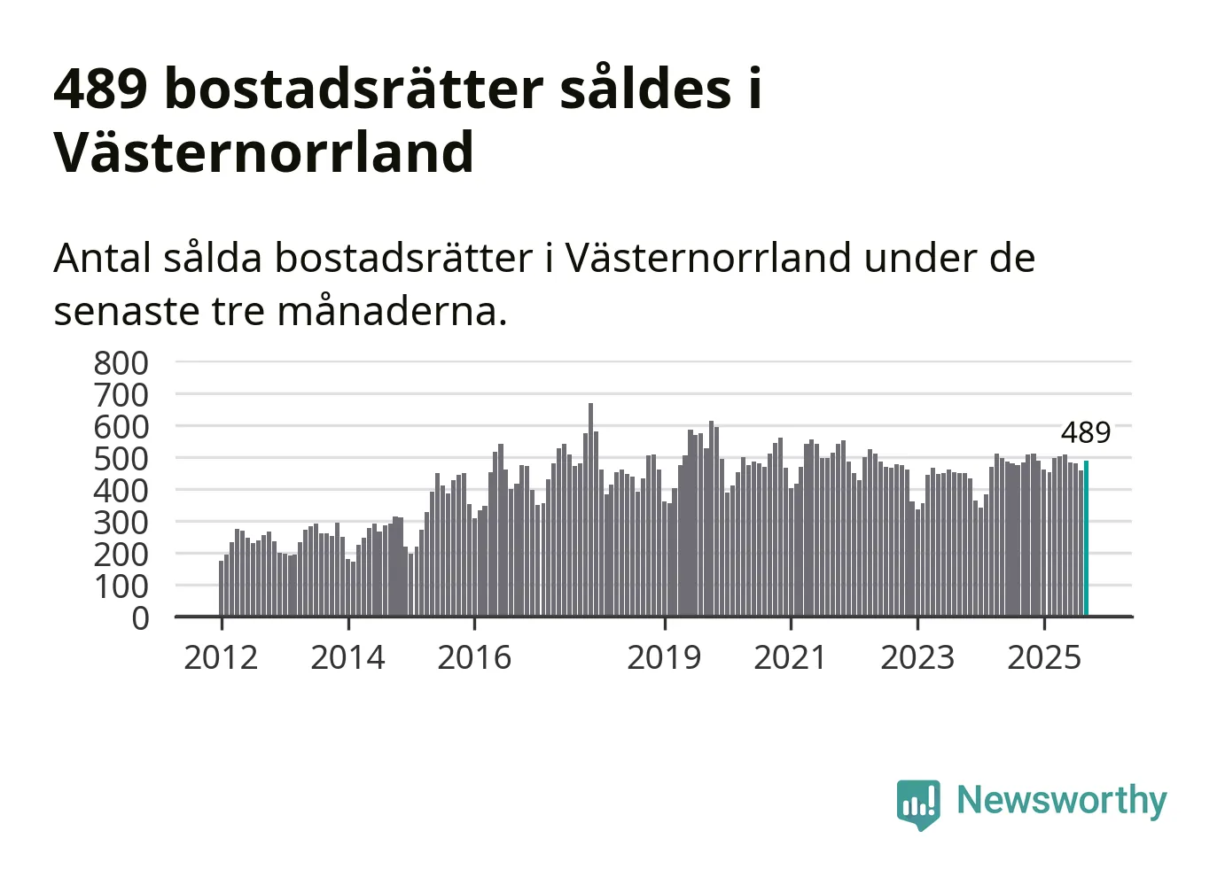 Sammanlagt såldes 489 bostadsrätter i Västernorrlands län mellan juli och september till ett genomsnittligt pris på 1,0 miljon kronor. I fjol gjordes 482 affärer vid den här tiden på året.