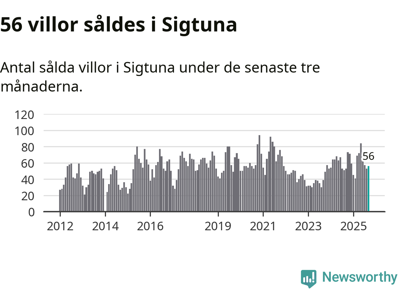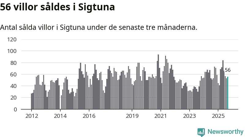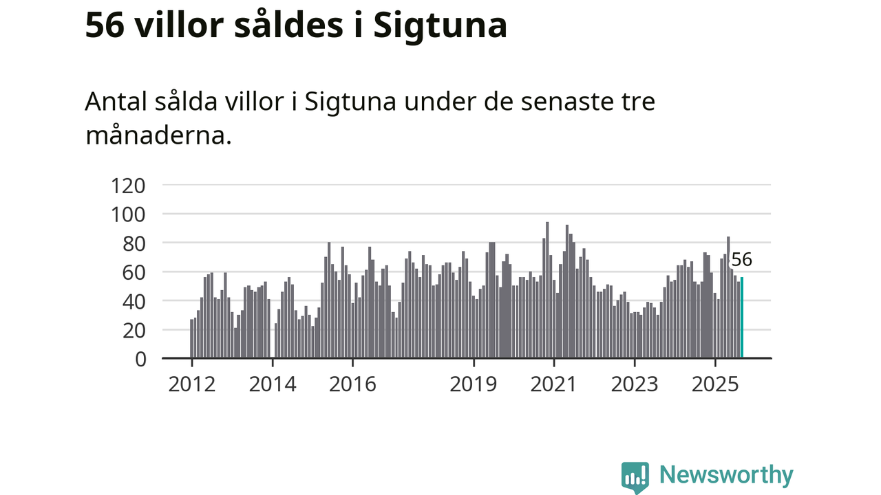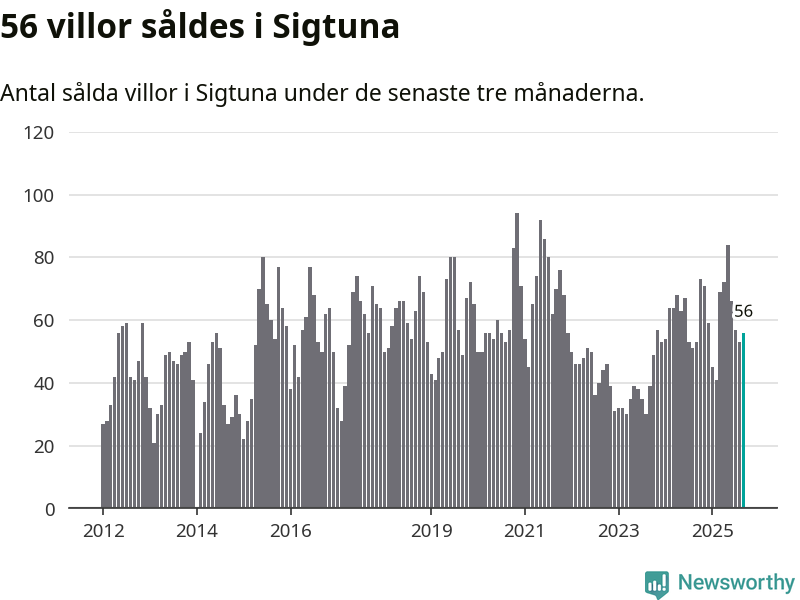 Sammanlagt såldes 56 villor i Sigtuna kommun mellan juli och september till ett genomsnittligt pris på 5,1 miljoner kronor. I fjol gjordes 53 affärer vid den här tiden på året.