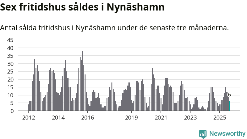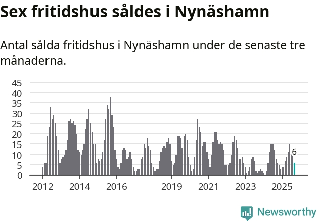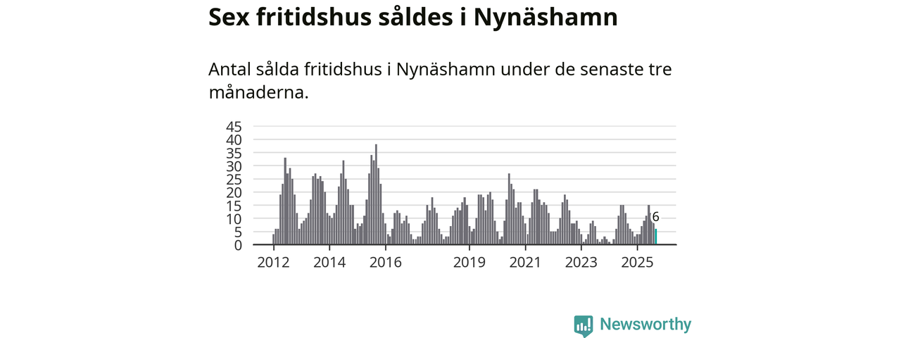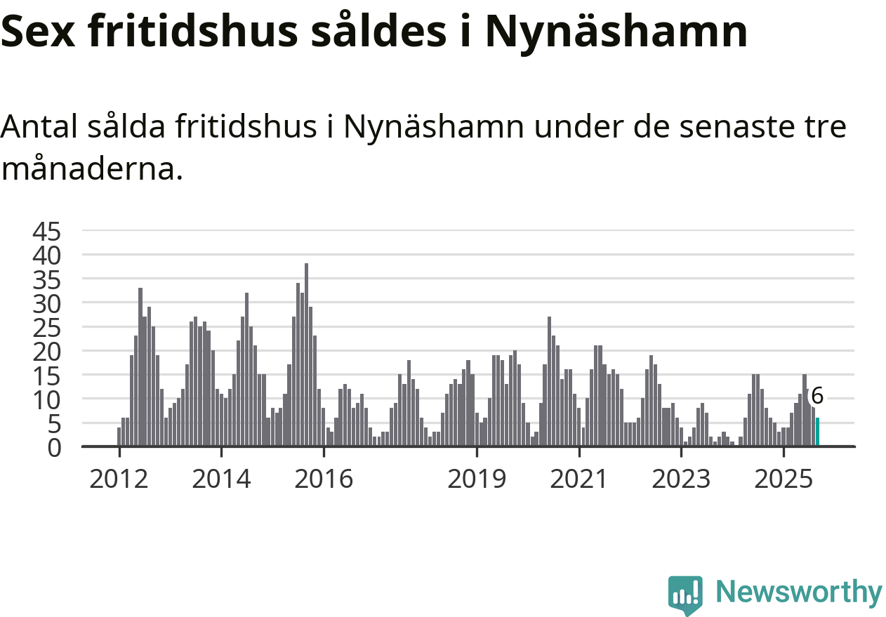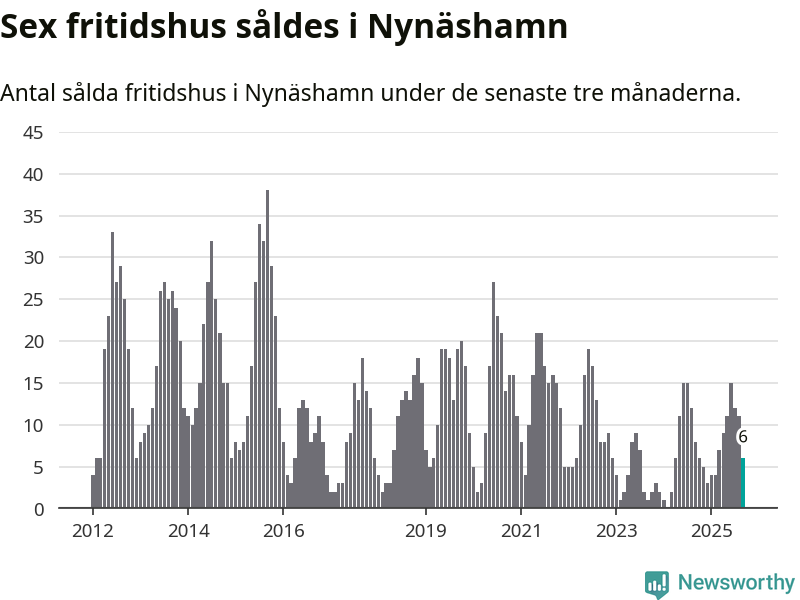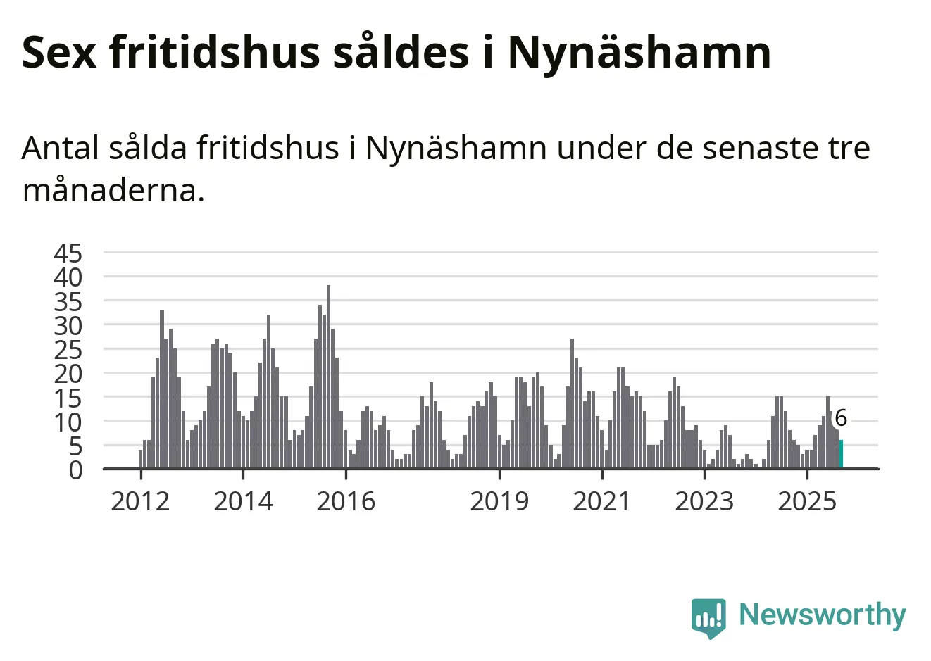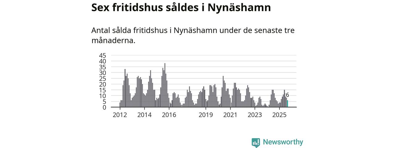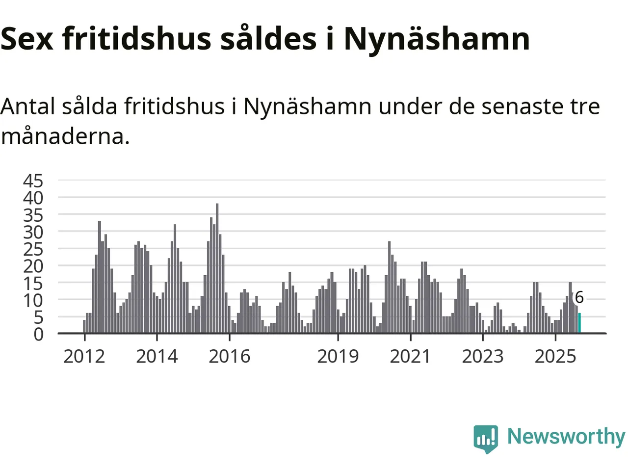 Sammanlagt såldes sex fritidshus i Nynäshamns kommun mellan juli och september till ett genomsnittligt pris på 2,8 miljoner kronor. I fjol gjordes åtta affärer vid den här tiden på året.