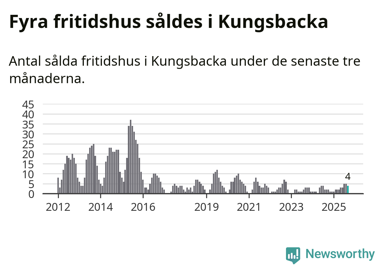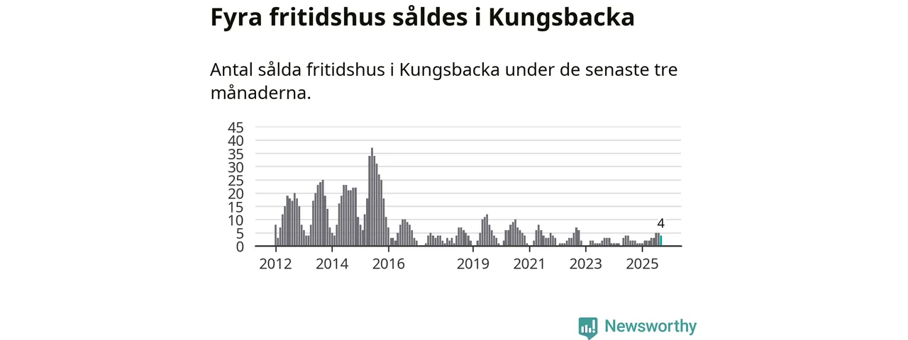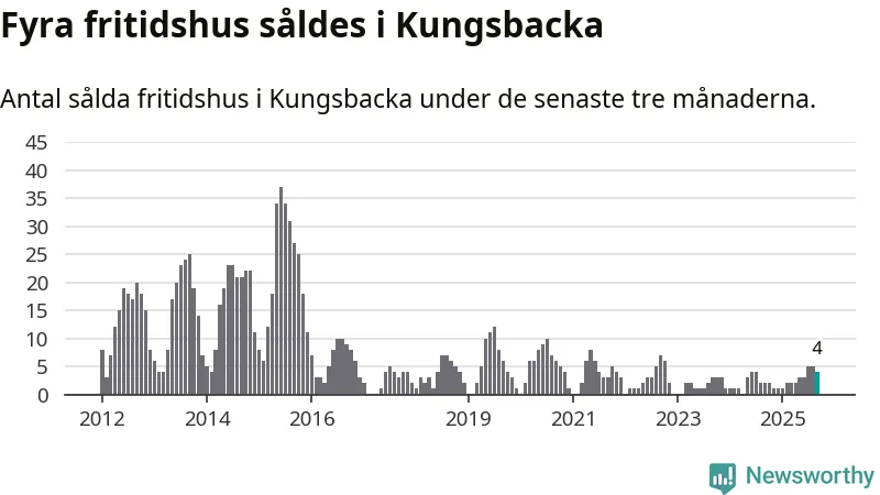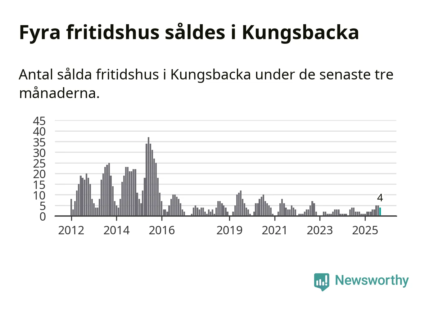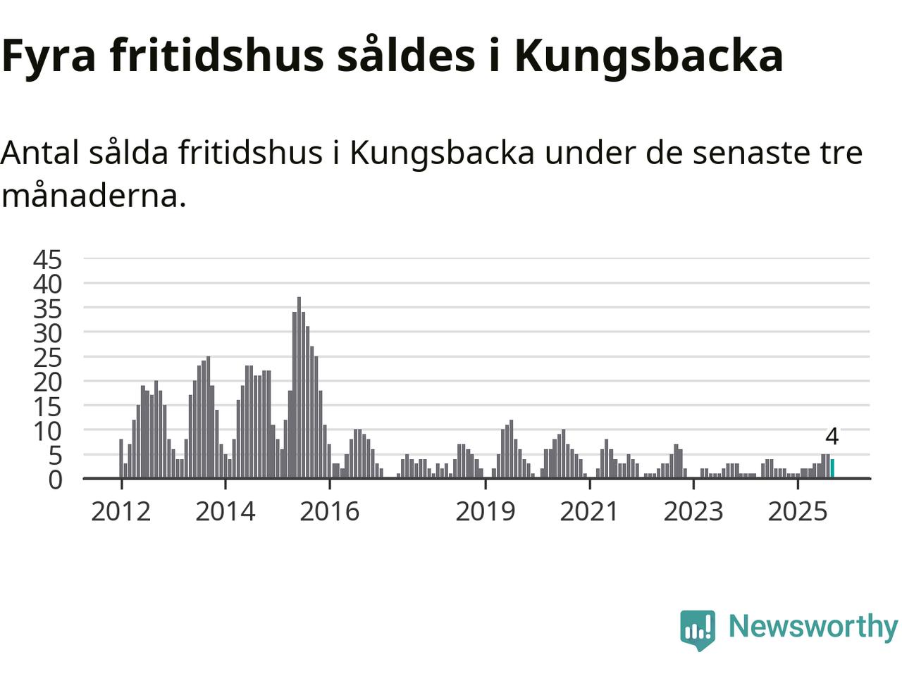 Mellan juli och september gjordes sammanlagt fyra affärer med fritidshus i Kungsbacka kommun. Det kan jämföras med två vid motsvarande tid i fjol.