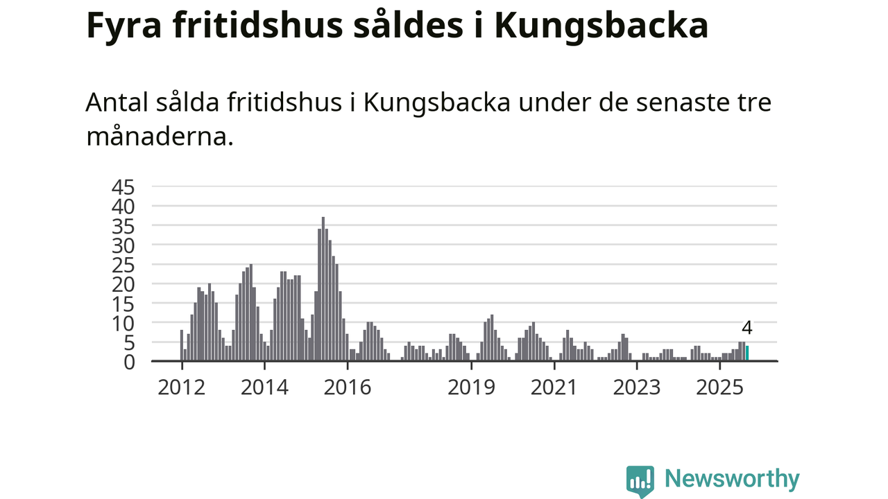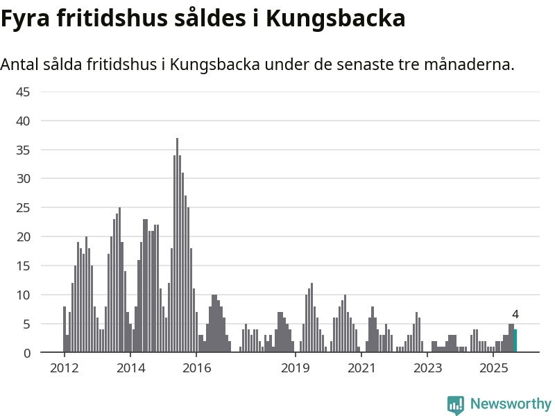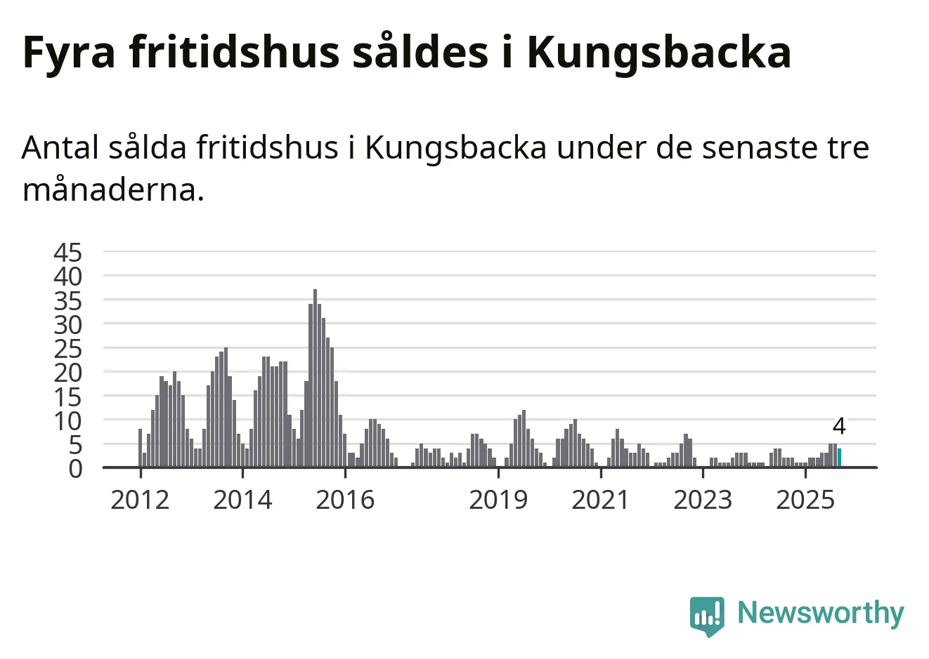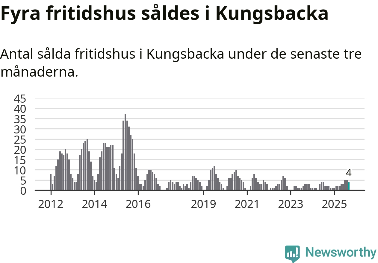 Mellan juli och september gjordes sammanlagt fyra affärer med fritidshus i Kungsbacka kommun. Det kan jämföras med två vid motsvarande tid i fjol.