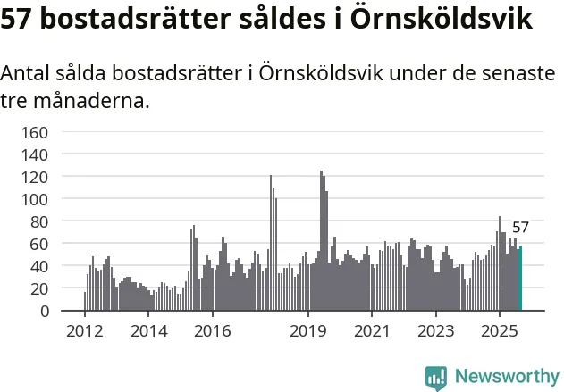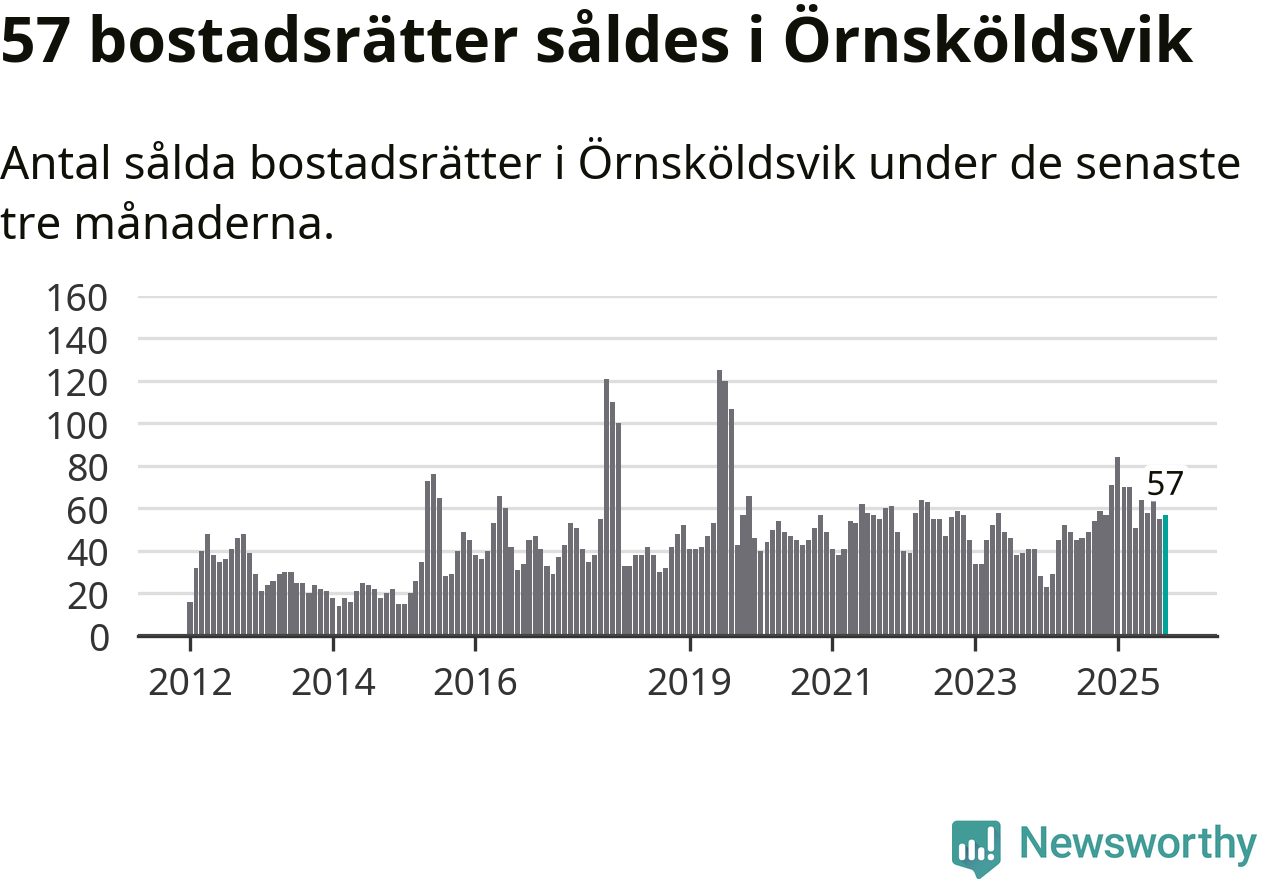 Sammanlagt såldes 57 bostadsrätter i Örnsköldsviks kommun mellan juli och september till ett genomsnittligt pris på 1,4 miljoner kronor. I fjol gjordes 54 affärer vid den här tiden på året.