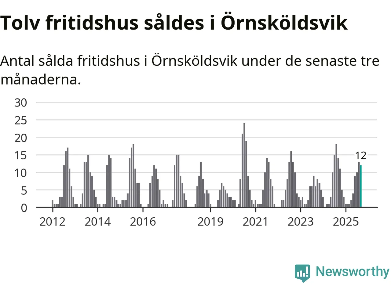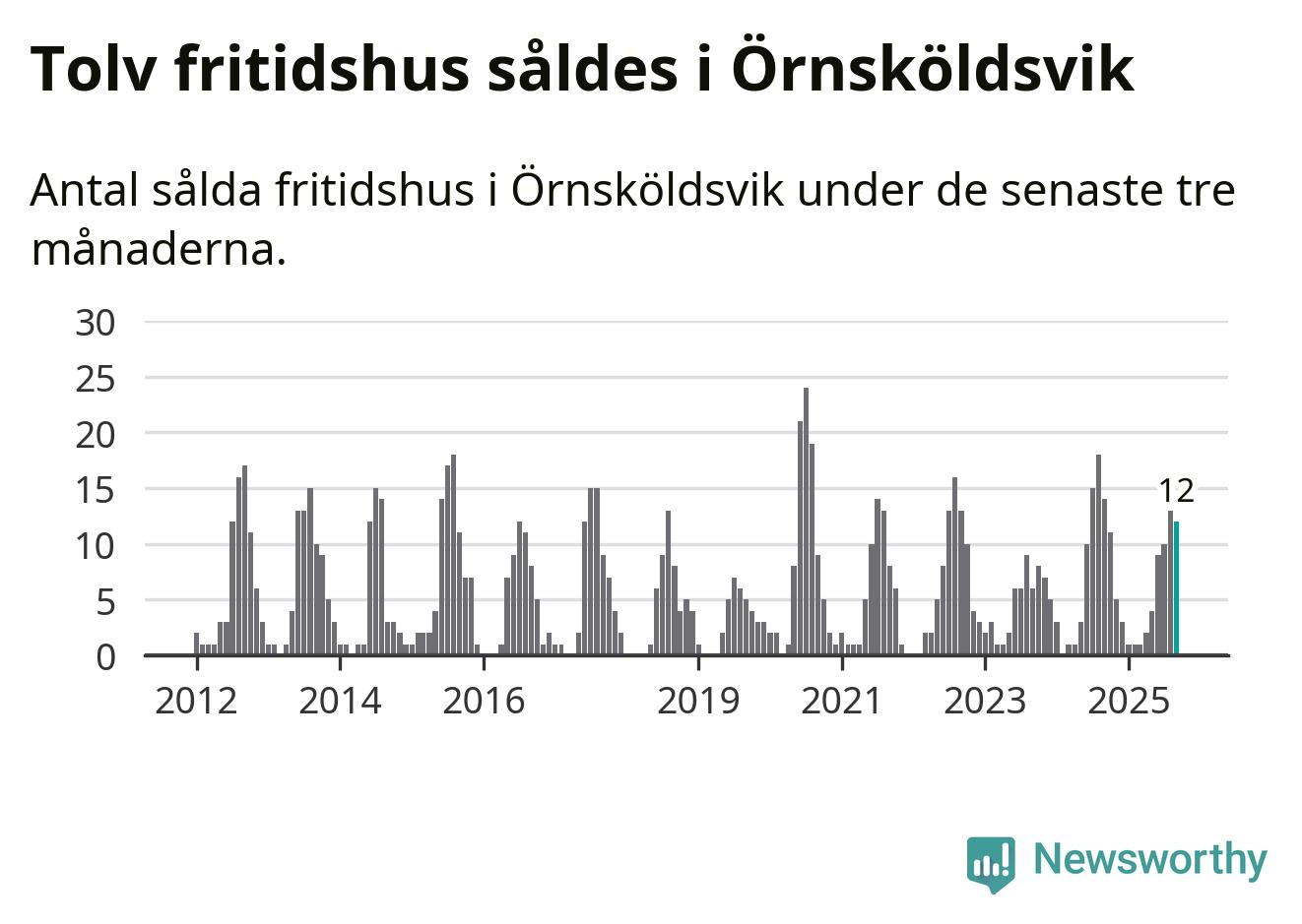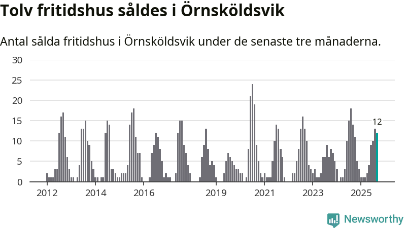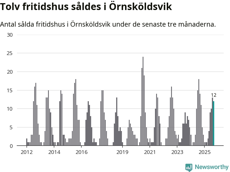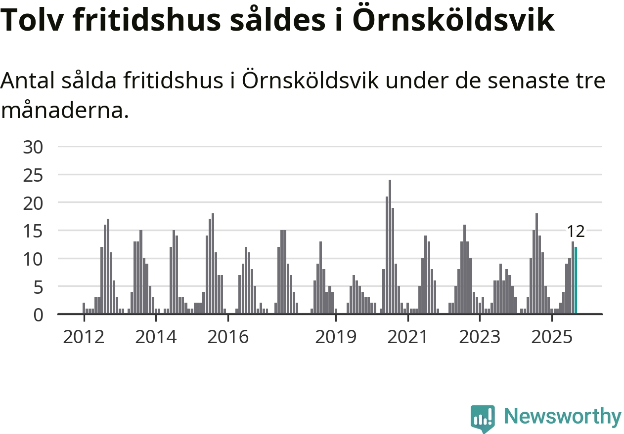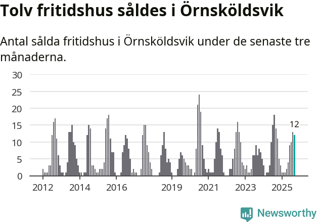Mellan juli och september gjordes sammanlagt tolv affärer med fritidshus i Örnsköldsviks kommun. Det kan jämföras med 14 vid motsvarande tid i fjol.