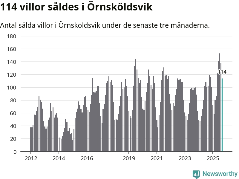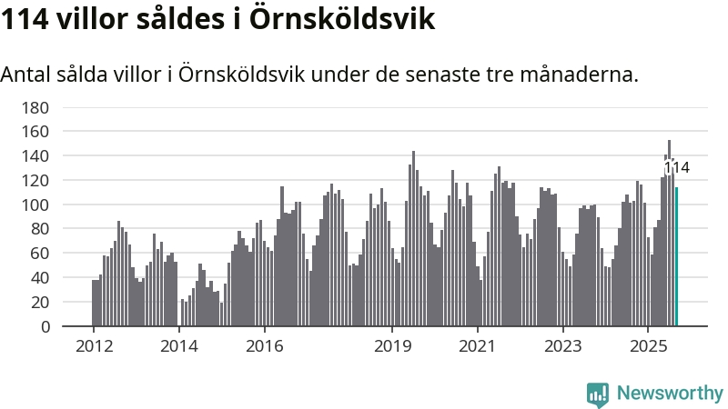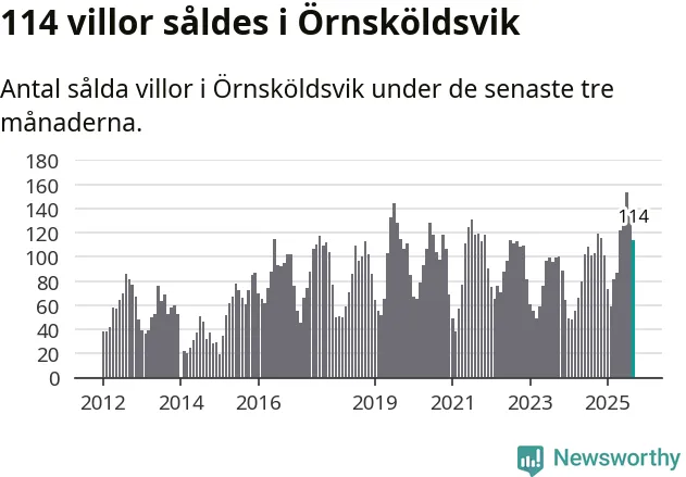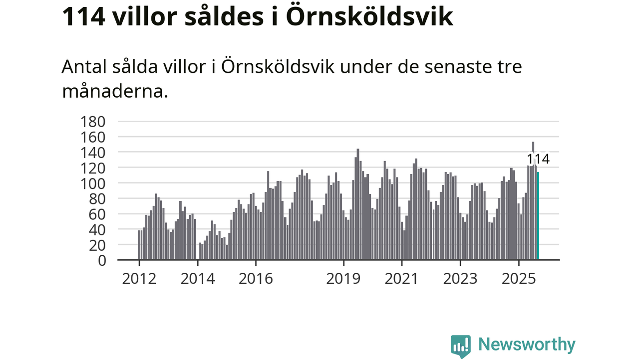 Sammanlagt såldes 114 villor i Örnsköldsviks kommun mellan juli och september till ett genomsnittligt pris på 1,8 miljoner kronor. I fjol gjordes 103 affärer vid den här tiden på året.