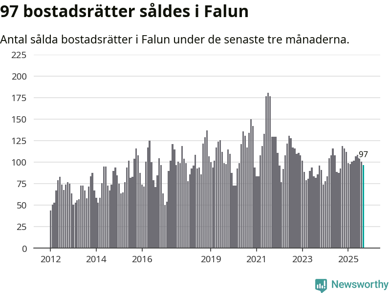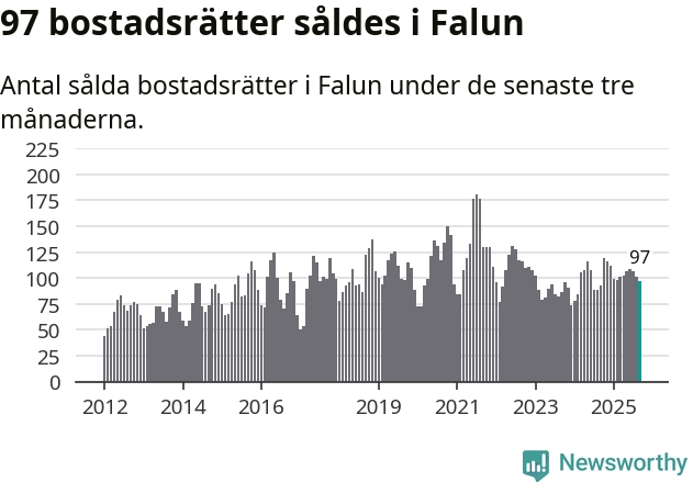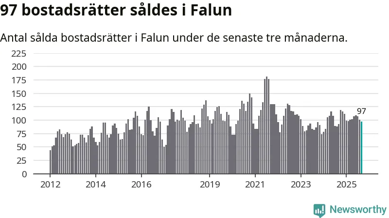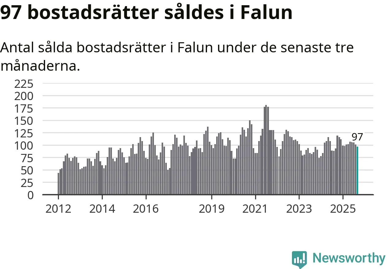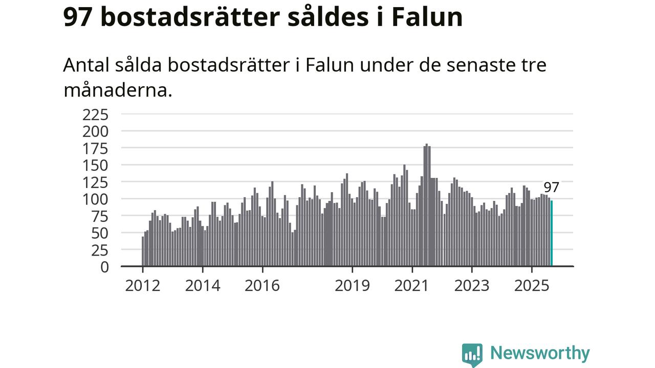 Sammanlagt såldes 97 bostadsrätter i Falu kommun mellan juli och september till ett genomsnittligt pris på 1,7 miljoner kronor. I fjol gjordes 93 affärer vid den här tiden på året.