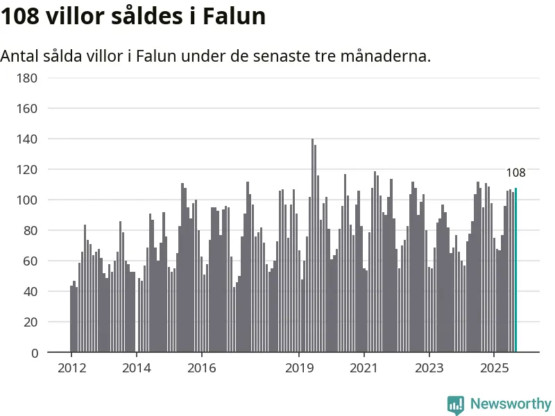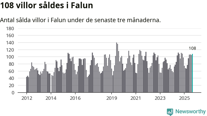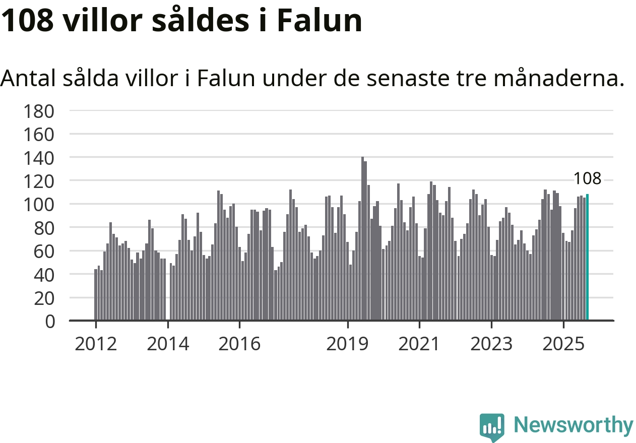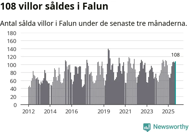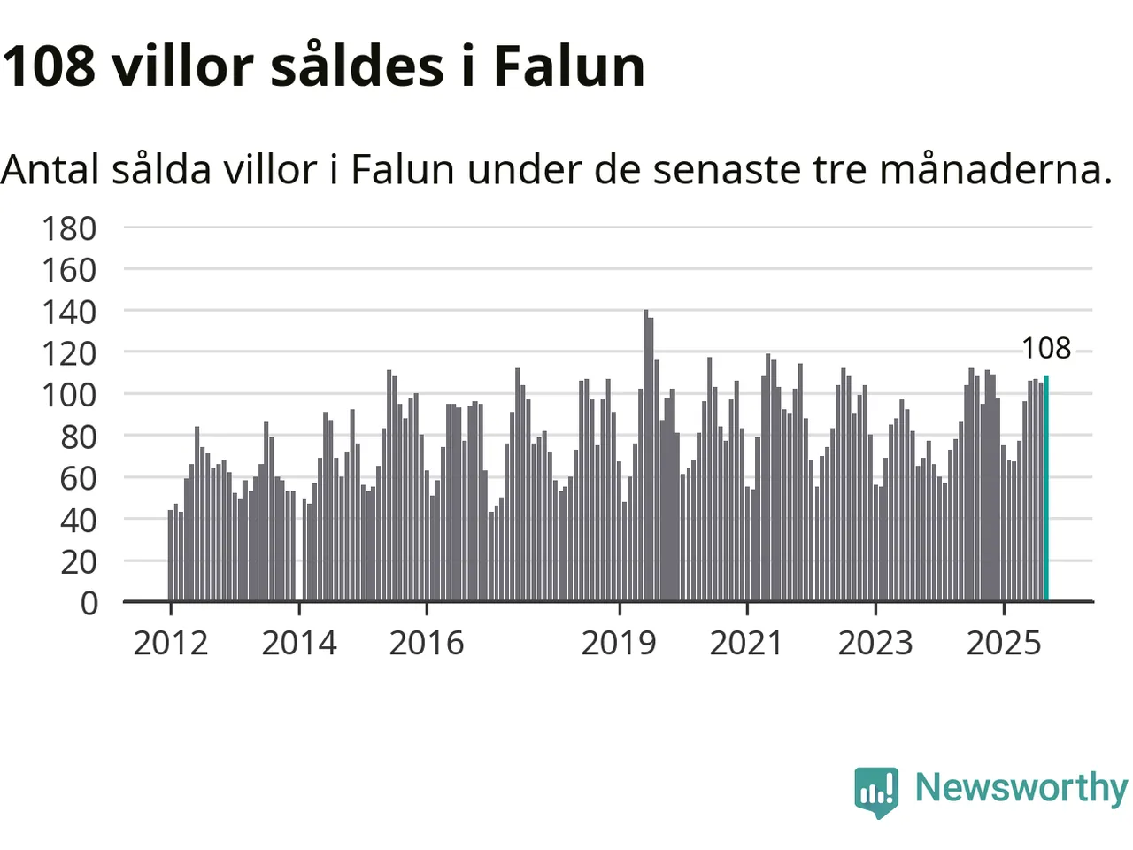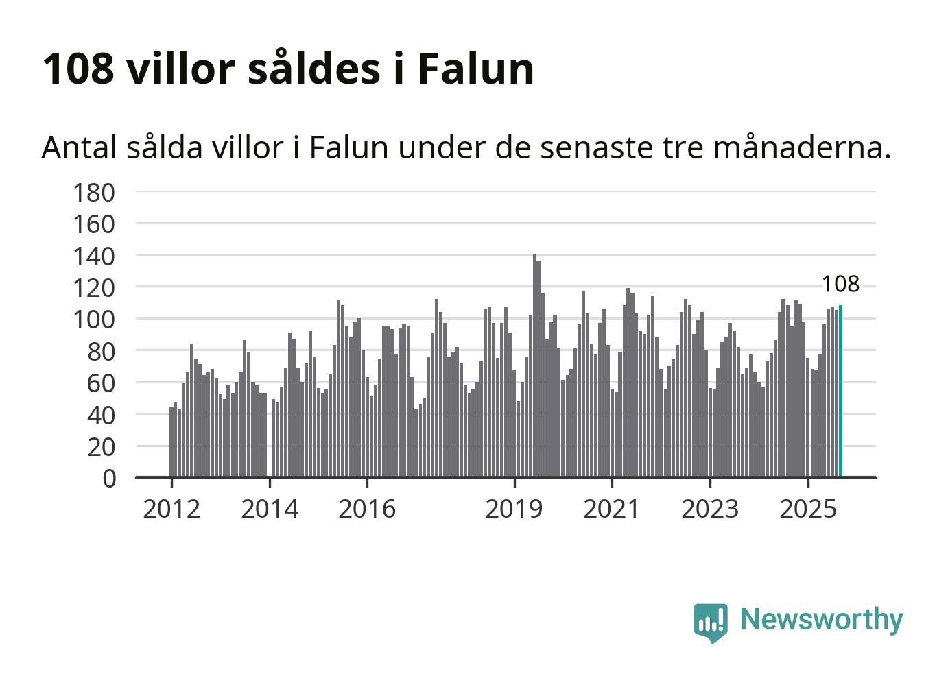 Sammanlagt såldes 108 villor i Falu kommun mellan juli och september till ett genomsnittligt pris på 3,3 miljoner kronor. I fjol gjordes 95 affärer vid den här tiden på året.