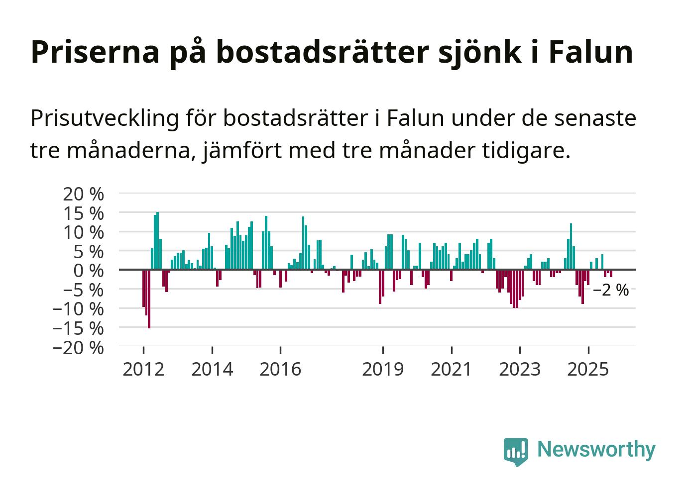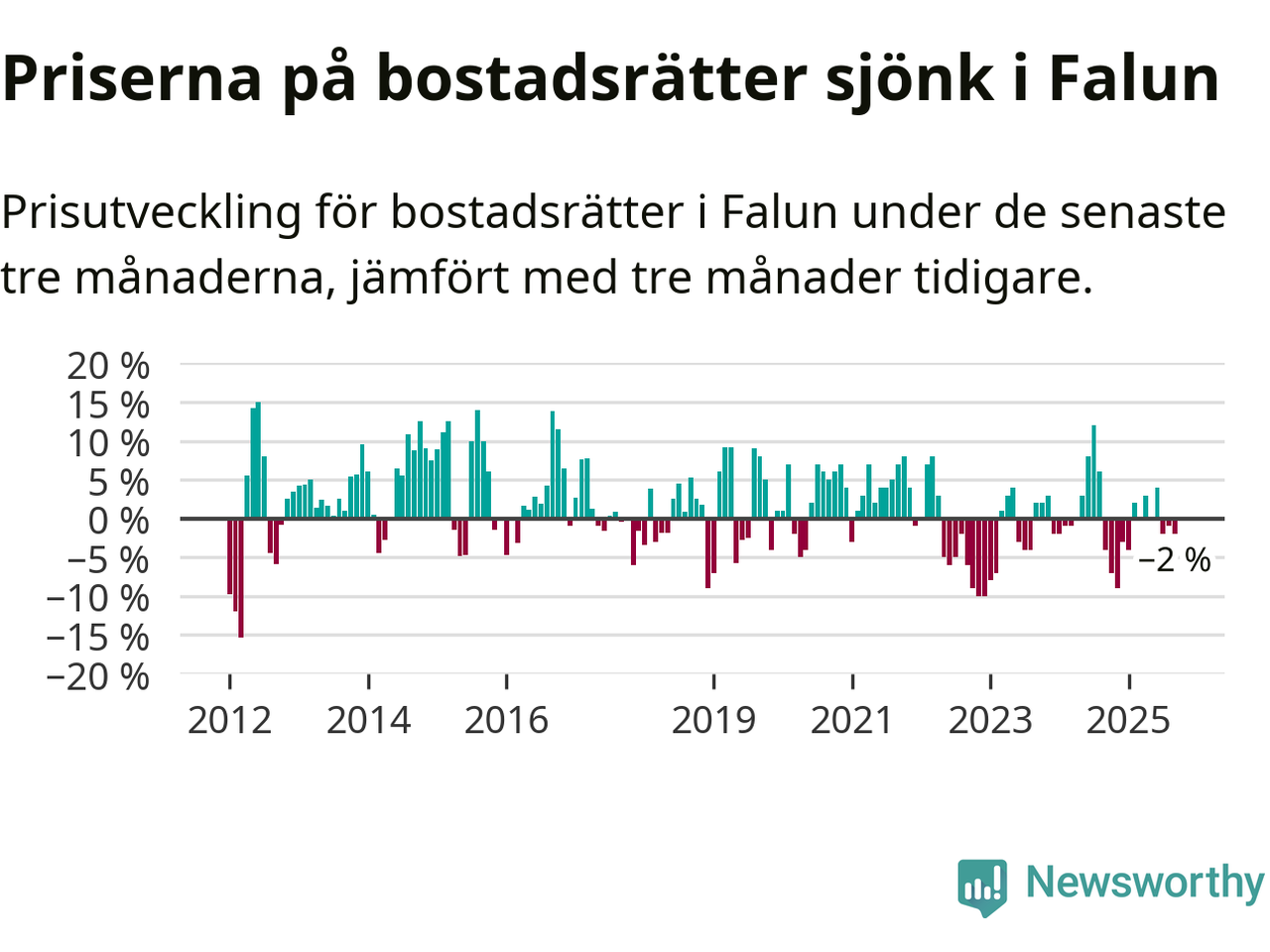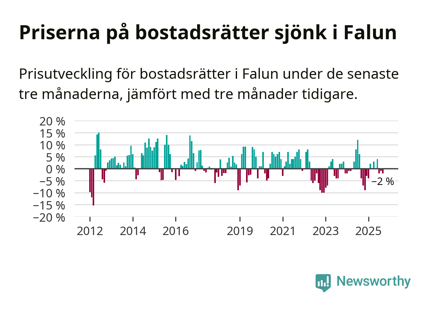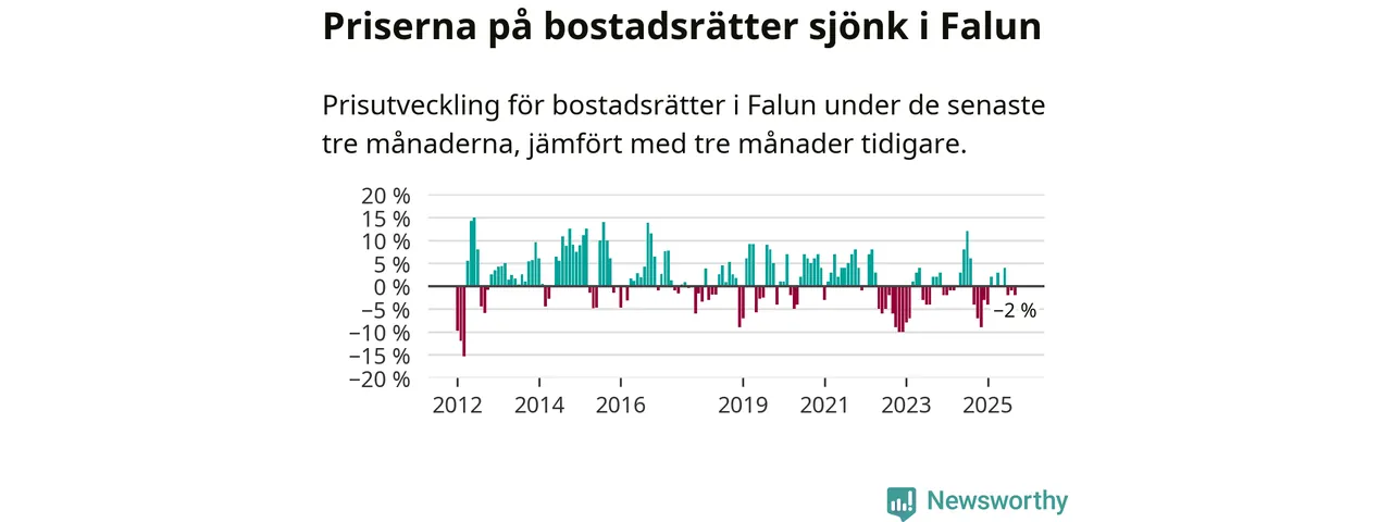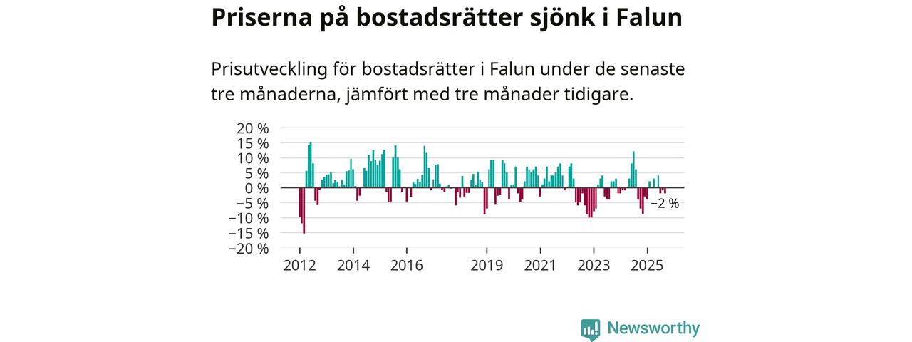 Priserna på bostadsrätter har gått ner i Falu kommun. Medelpriset på försäljningarna under de senaste tre månaderna visar på en nedgång med 2 procent.
