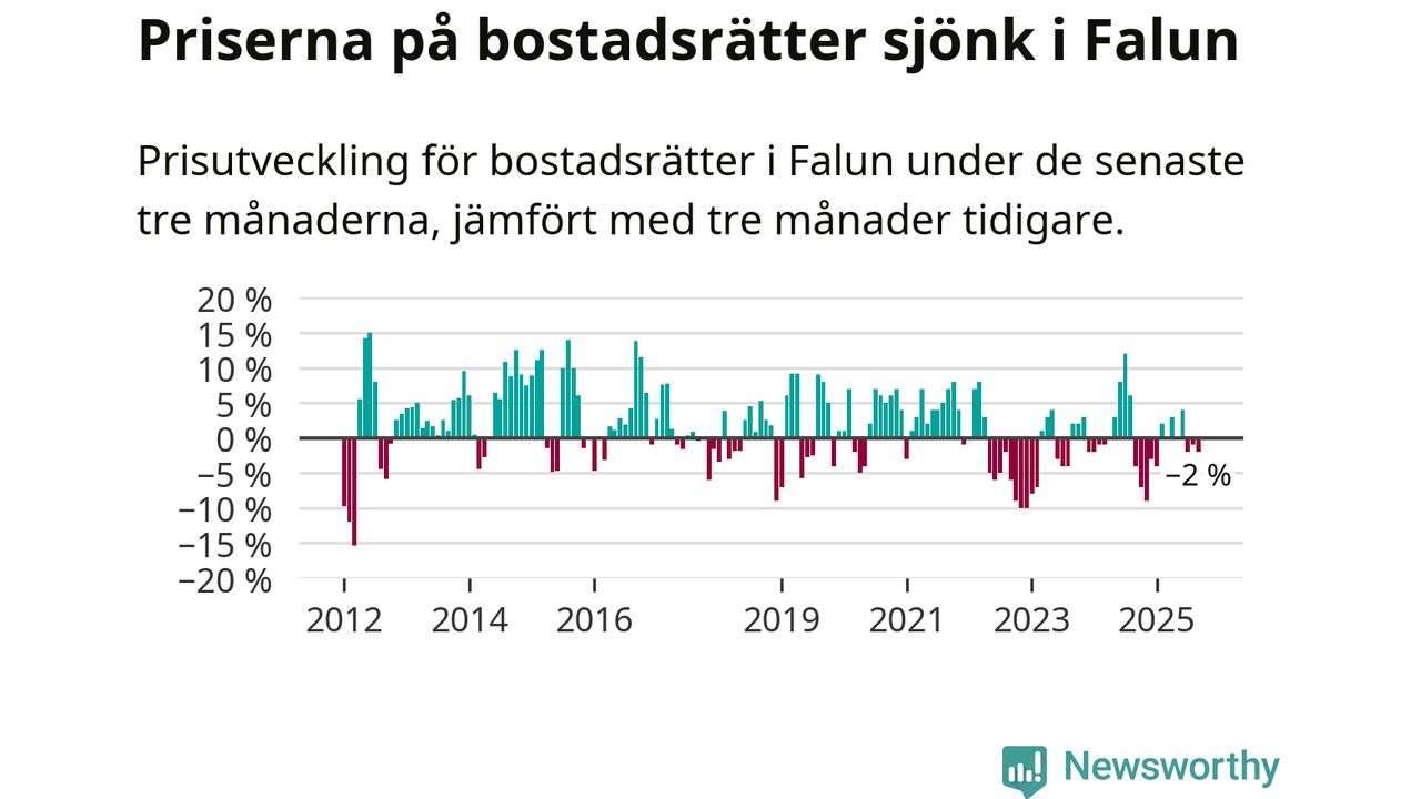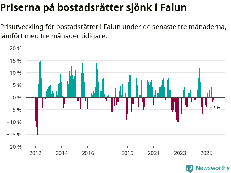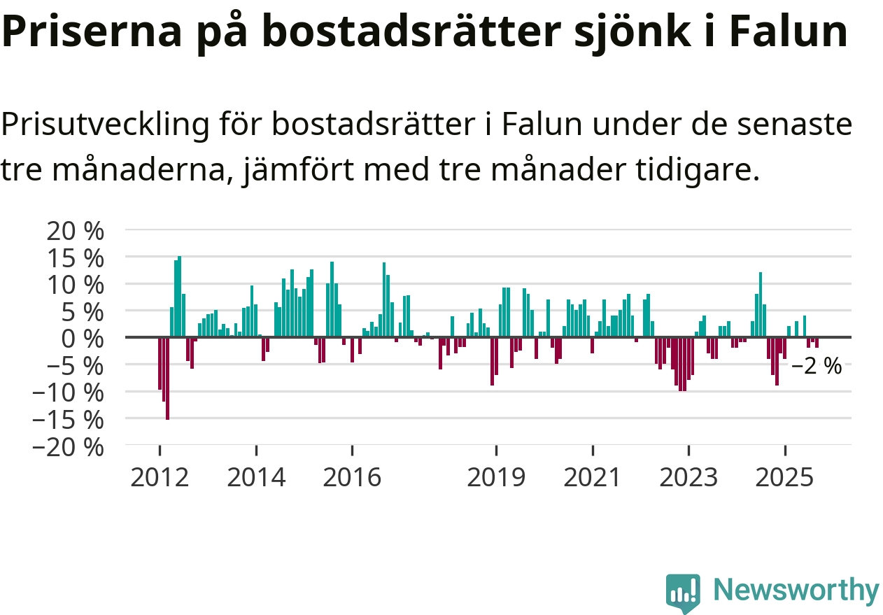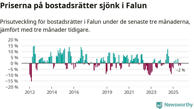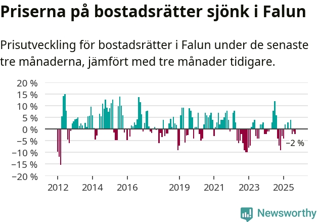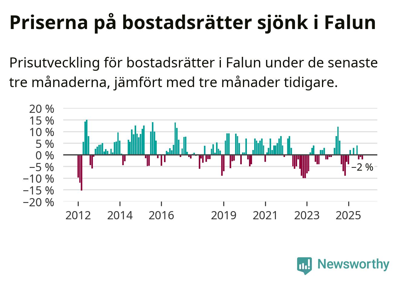 Priserna på bostadsrätter har gått ner i Falu kommun. Medelpriset på försäljningarna under de senaste tre månaderna visar på en nedgång med 2 procent.